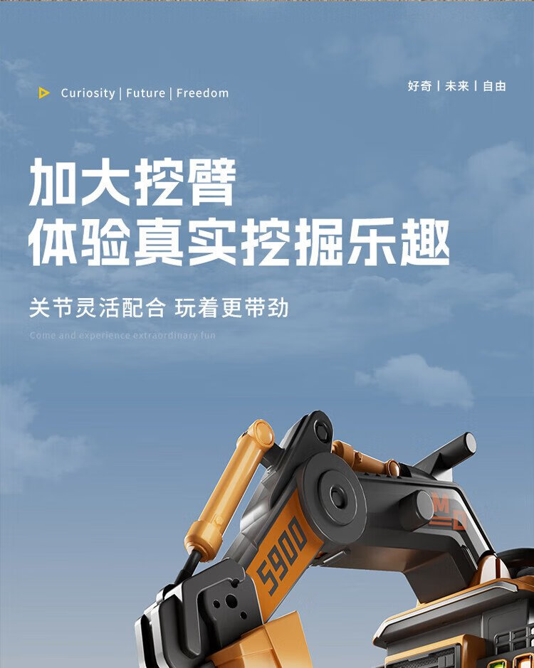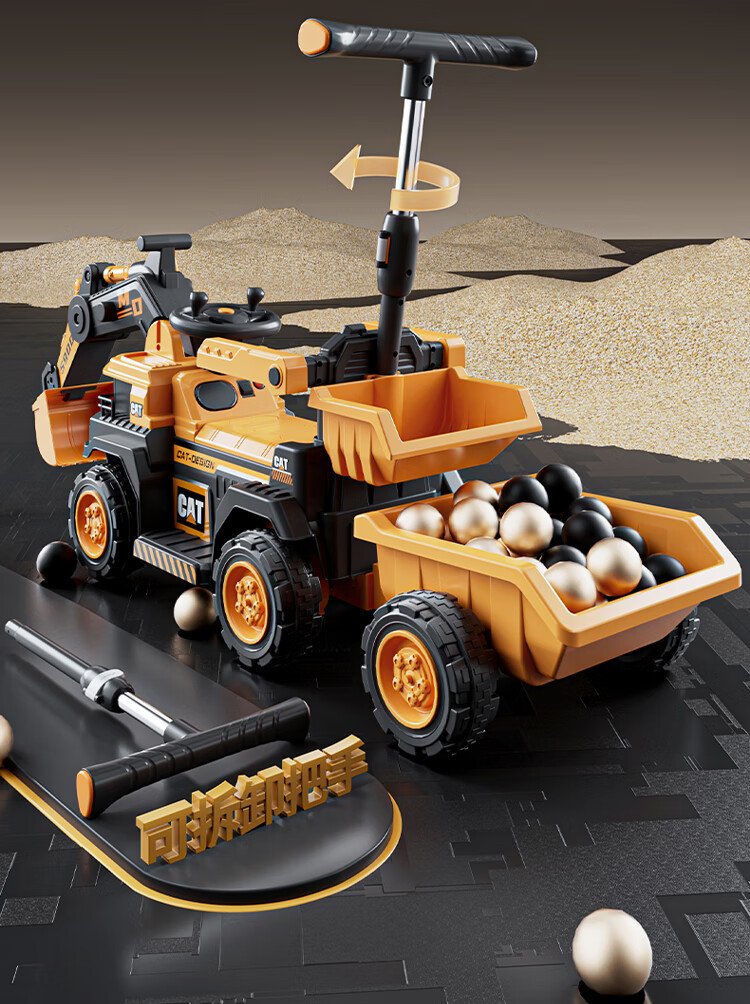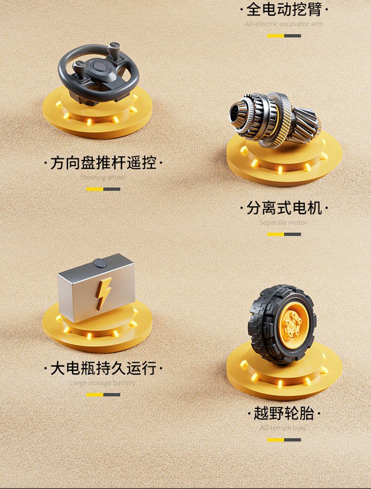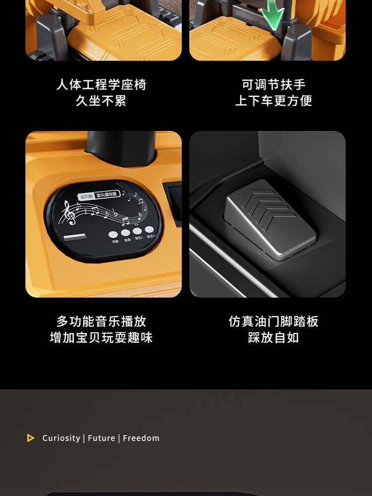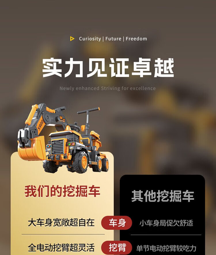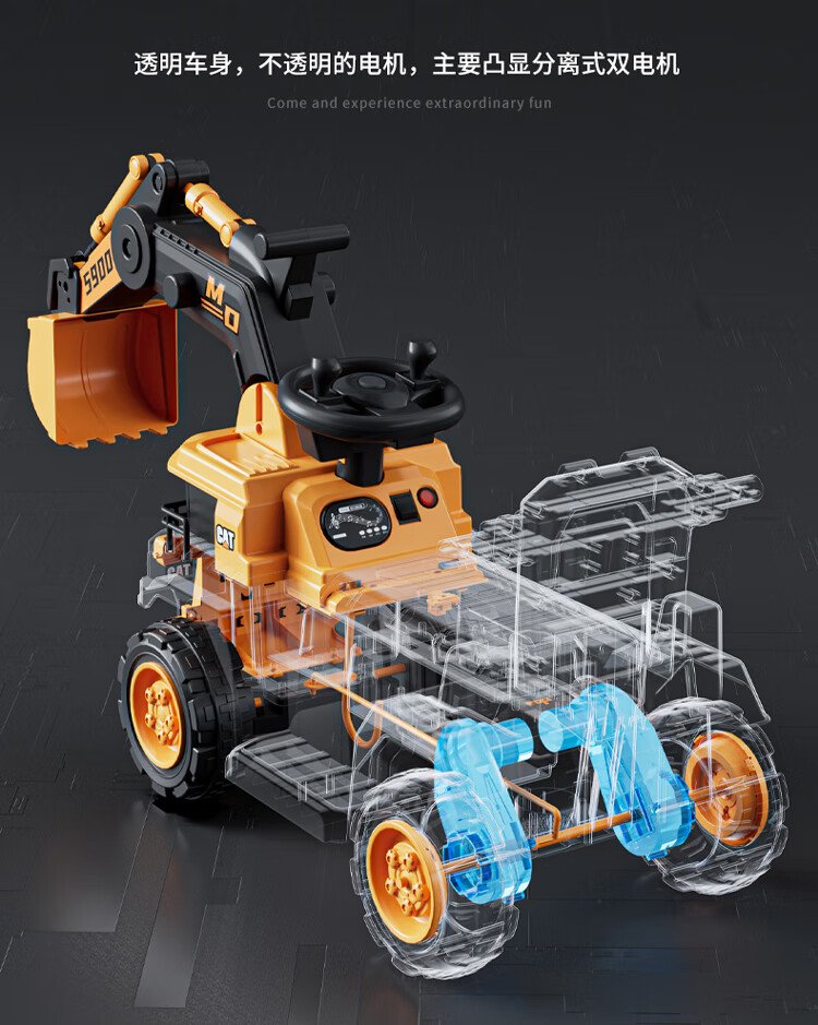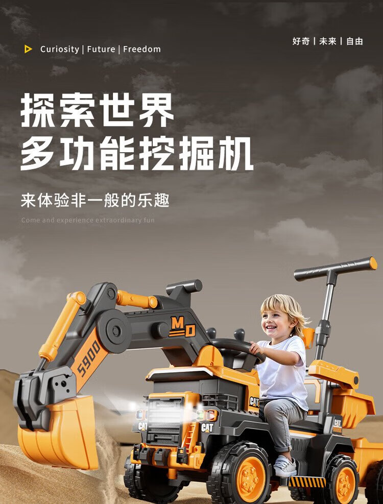 Ledi Beibei children's electric excavator can sit on children's electric car, children's car toy car, large can sit on people digging soil gift, single drive + 6V4A battery + electric digging arm + push handle + car pocket + remote control