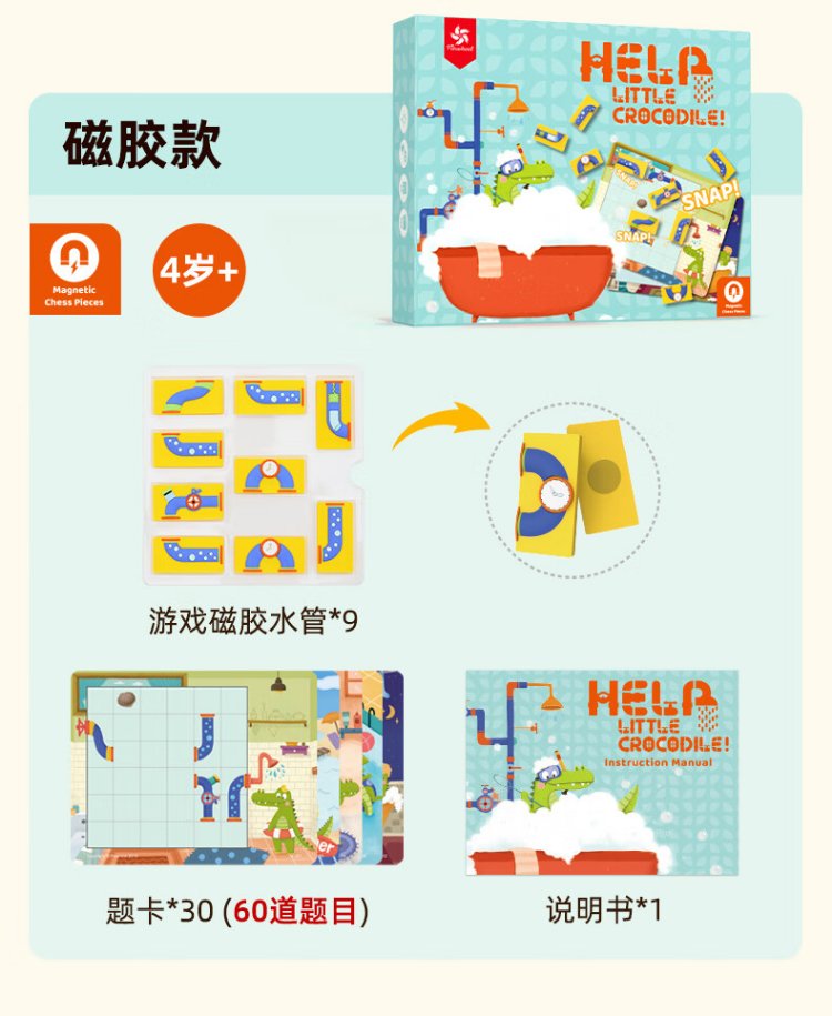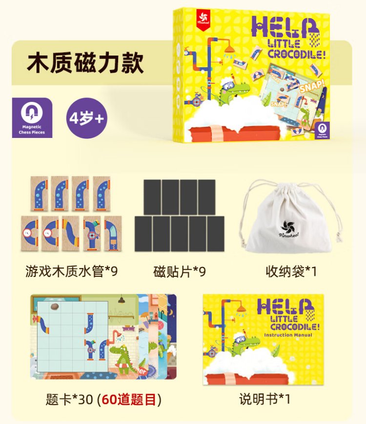 Pinwheel children's board game 3-6 years old logical thinking toy magnetic attraction for boys and girls baby crocodile bath-soft glue magnet
