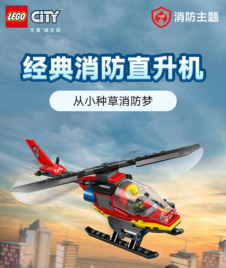 LEGO building block city series 60411 fire helicopter boy children's toy birthday gift