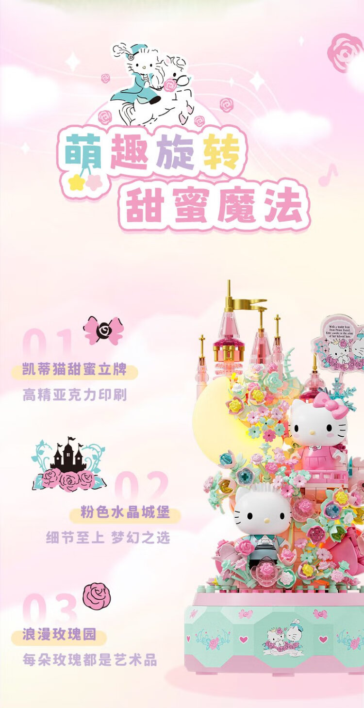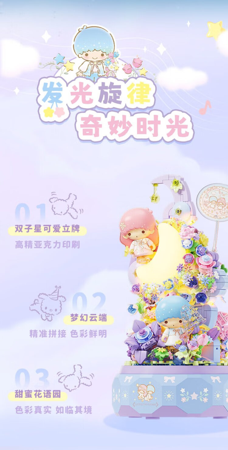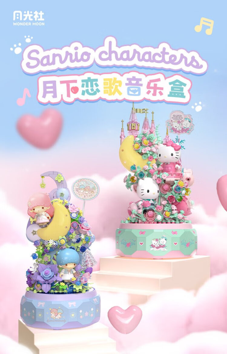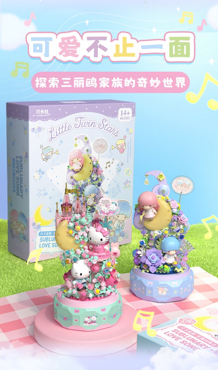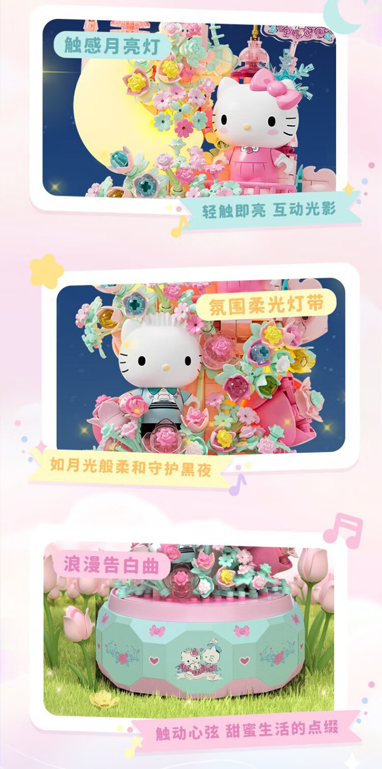 Moonlight Society Sanrio Building Blocks Music Box HelloKitty Flower Music Box Toys Trendy Ornaments Birthday Gifts for Women