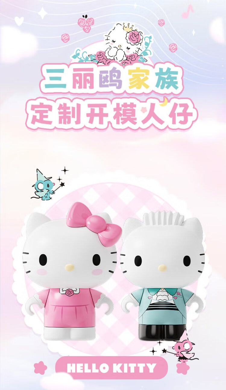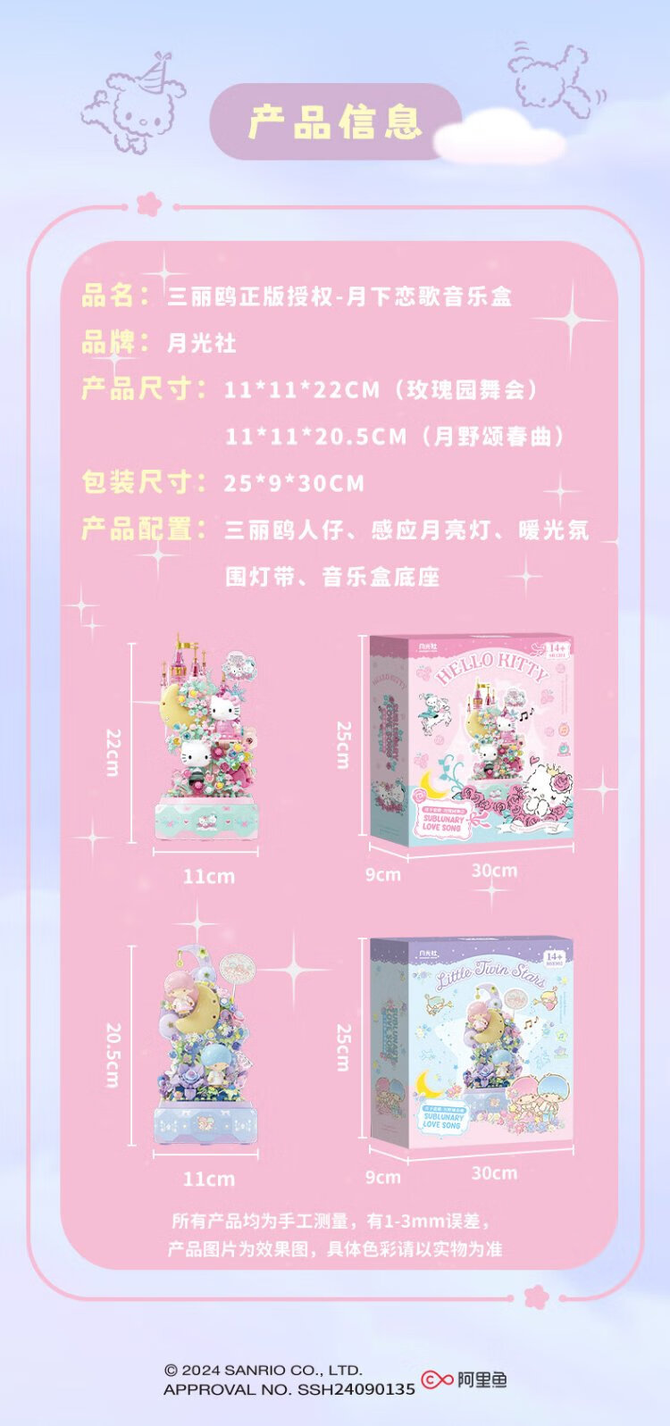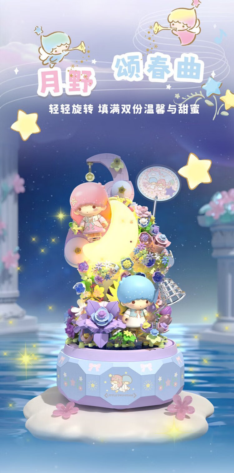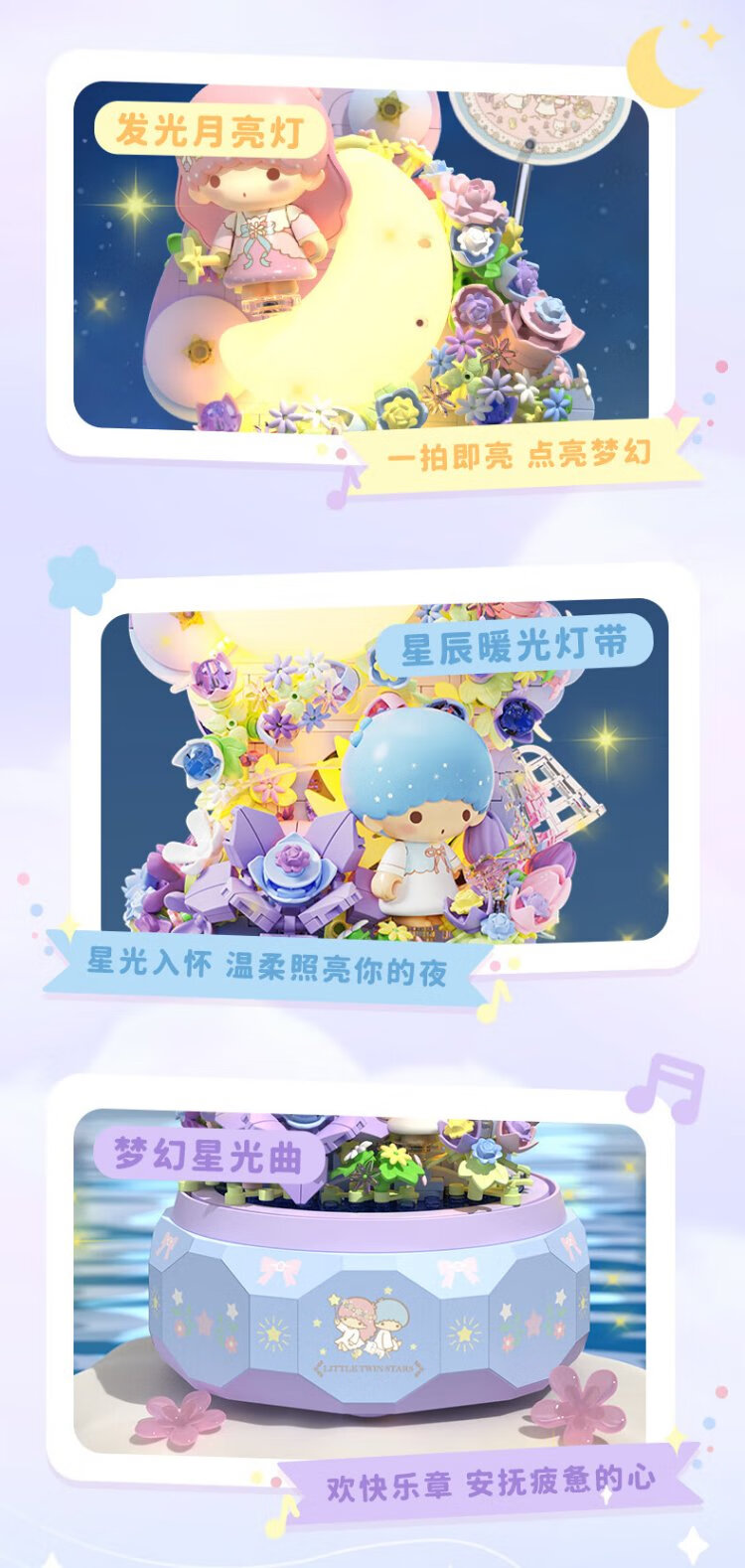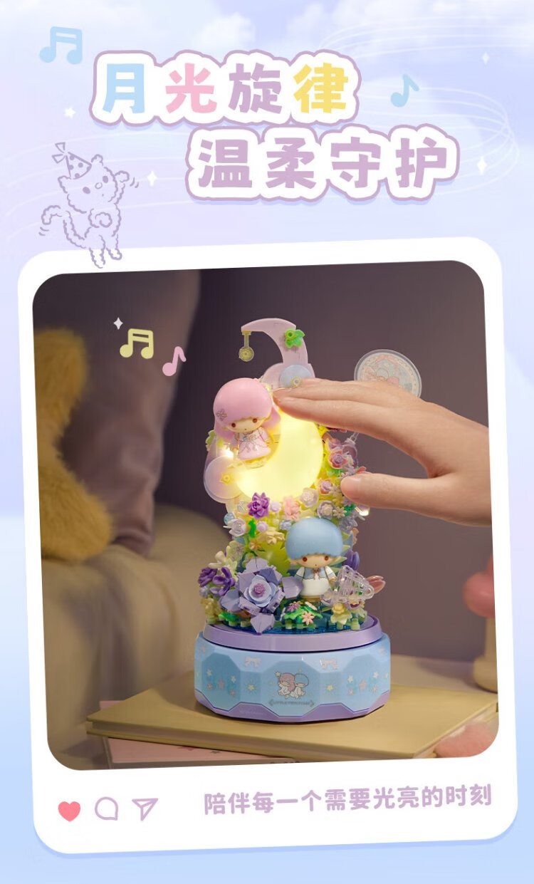 Moonlight Society Sanrio Building Blocks Music Box HelloKitty Flower Music Box Toys Trendy Ornaments Birthday Gifts for Women