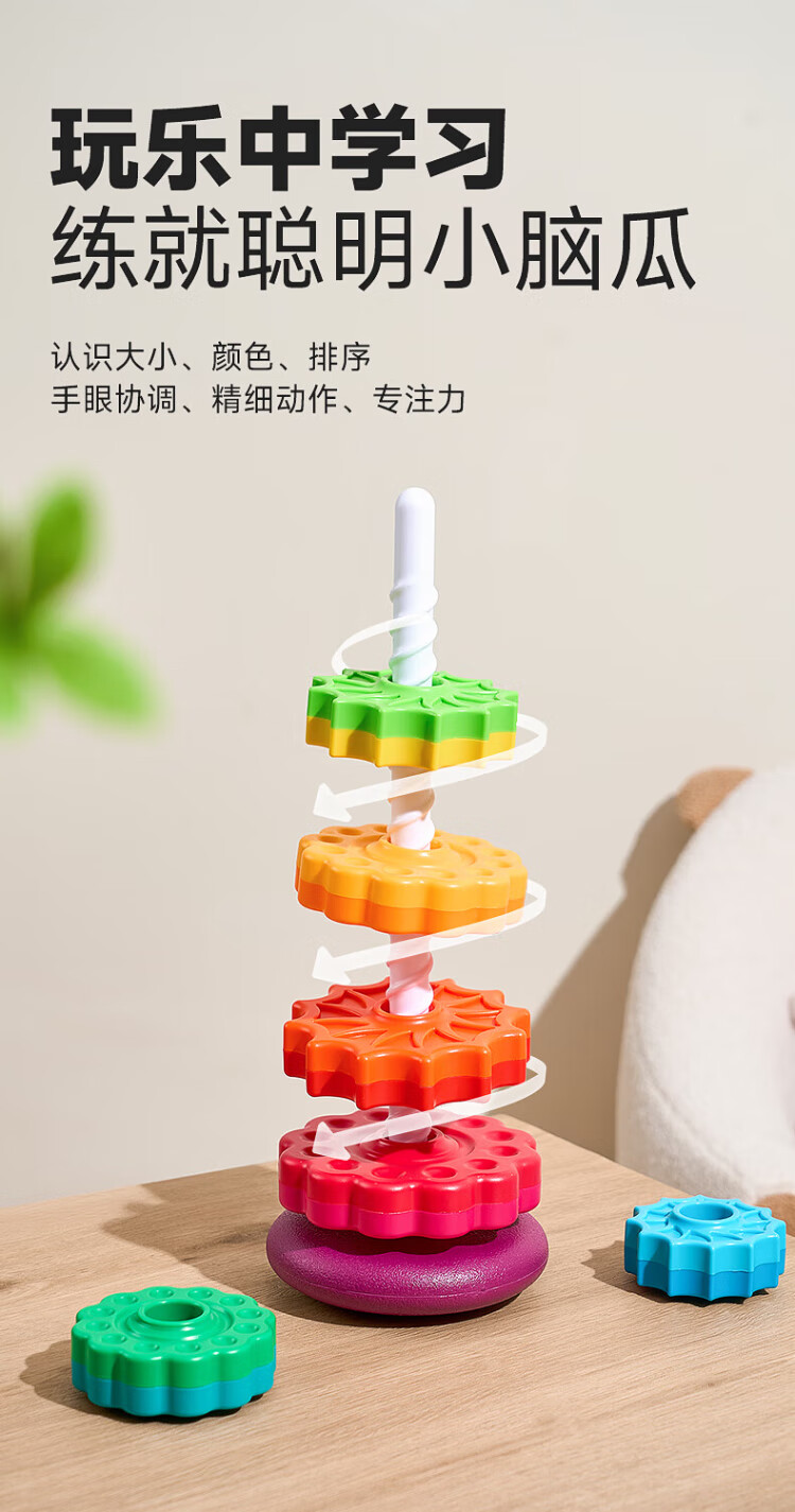 Leleyu (leleyu) early education children's toy rainbow stacking circle 1-3 years old baby educational boy and girl birthday gift
