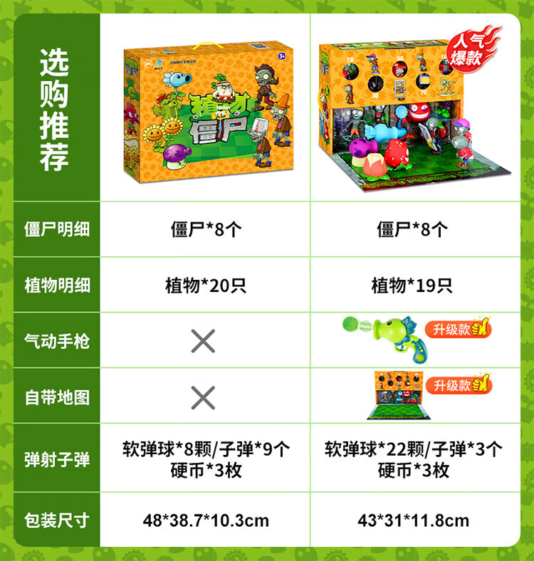 PLANTS VS ZOMBIES toys complete set can launch pea shooter zombie doll doll children's toys birthday gift for boys 6-10 years old