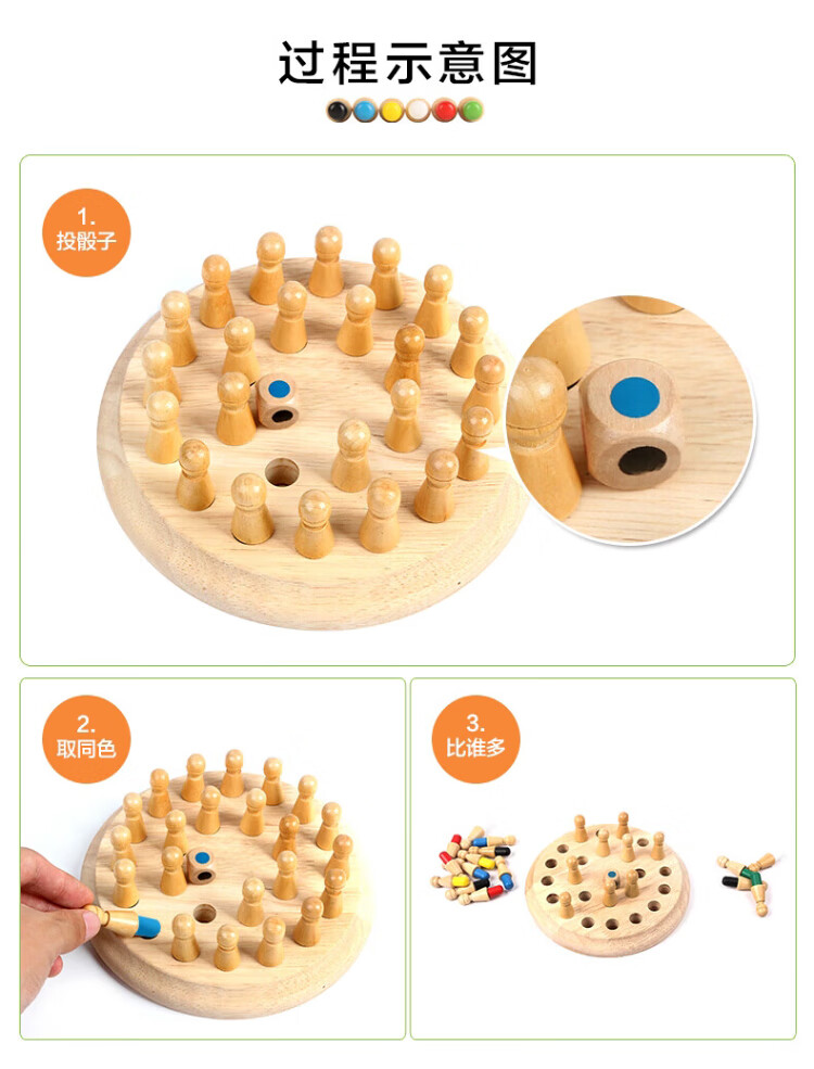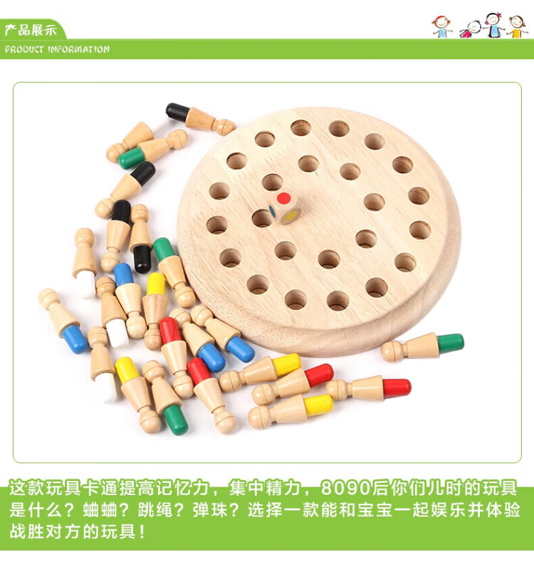 SANGTY children's memory chess concentration training logical thinking memory parent-child interactive game solid wood intellectual toy color memory chess (large solid wood) with color box