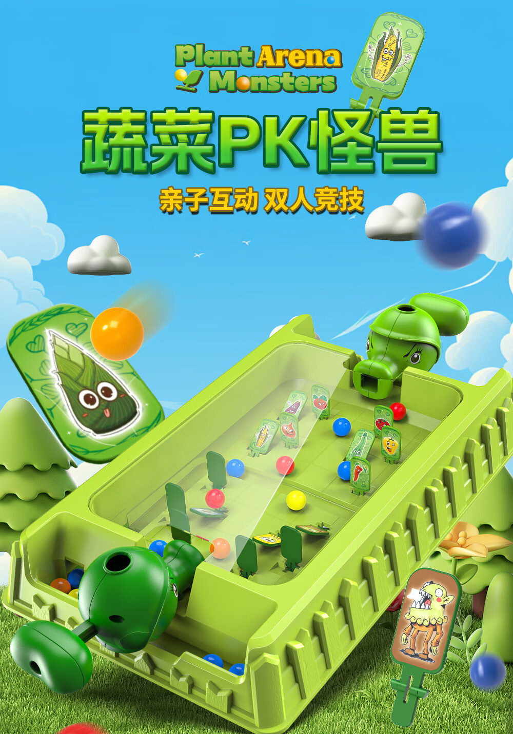 Two-person battle interactive boy's birthday gift Pea Plants vs. Zombies Game Console Toy Pinball Machine Board Game Pinball Game Machine Two-Player Battle 62 Marbles