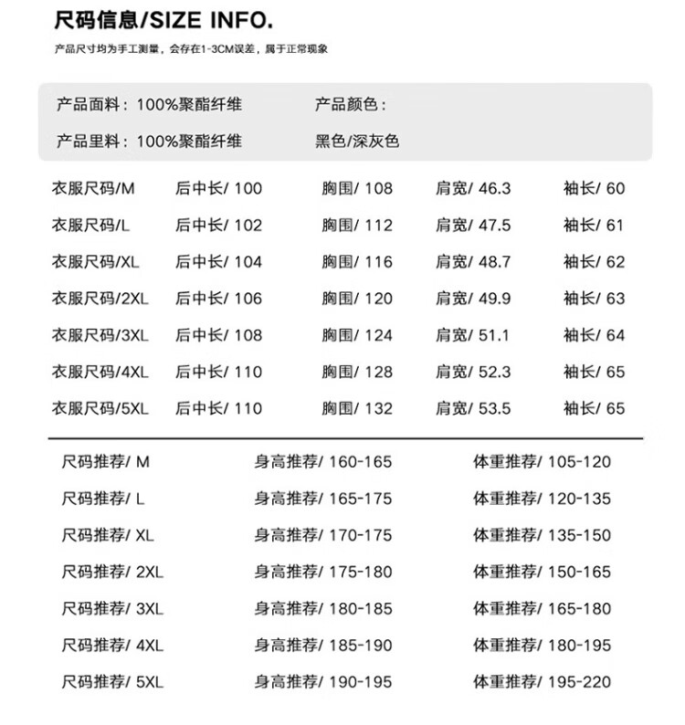 China (cm) 165 / 88-90 170 / 96-98 175 / 108-110 180 / 118-122 185 / 126-130