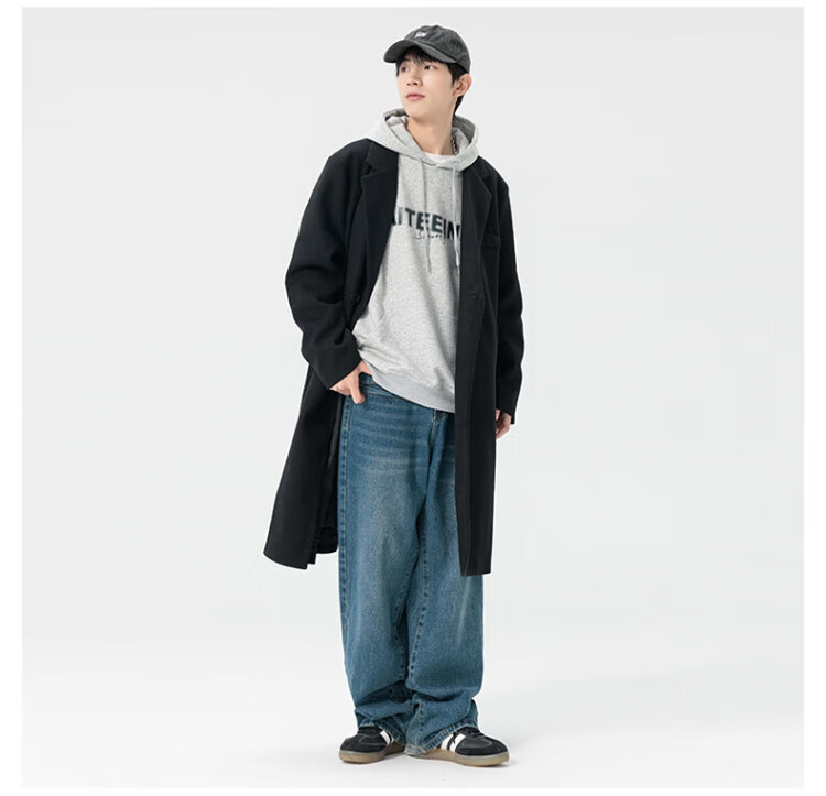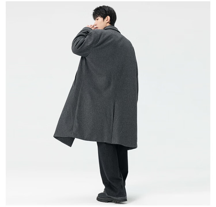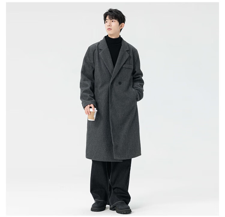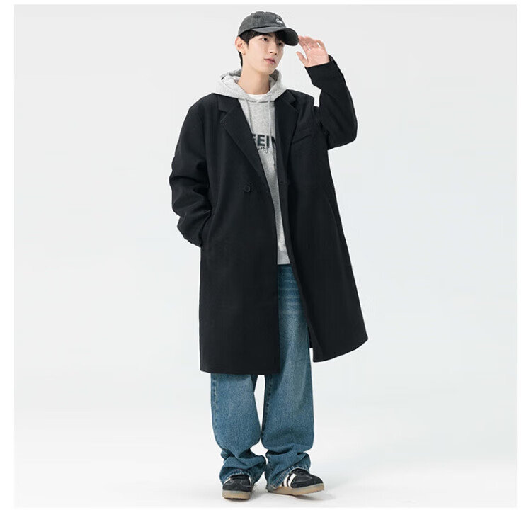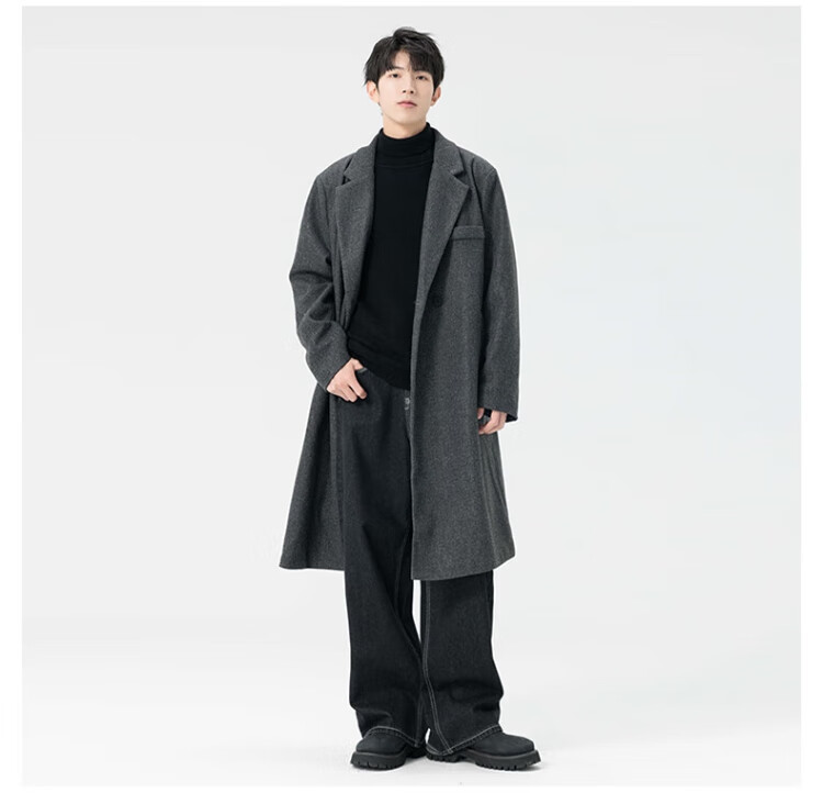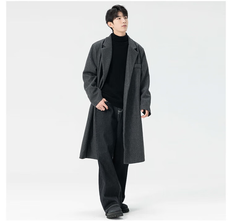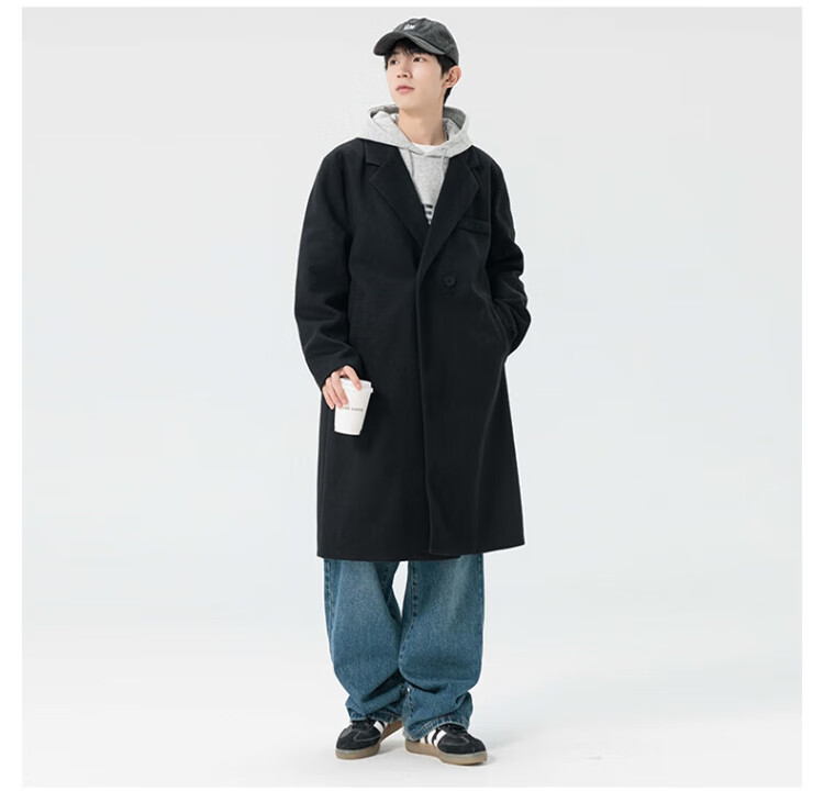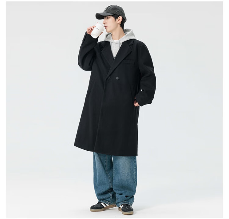 顶峰保罗(Dingfengbaoluo)毛呢大衣外套男秋冬中长款韩版高级宽松过膝呢子风衣HT88黑色5XL