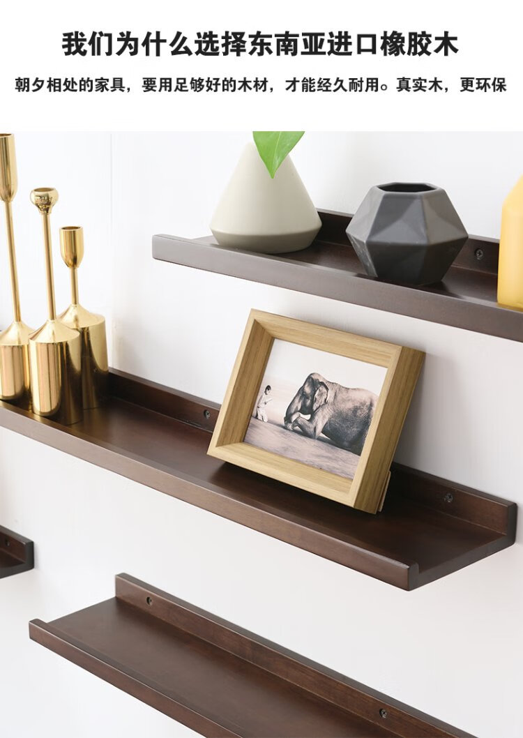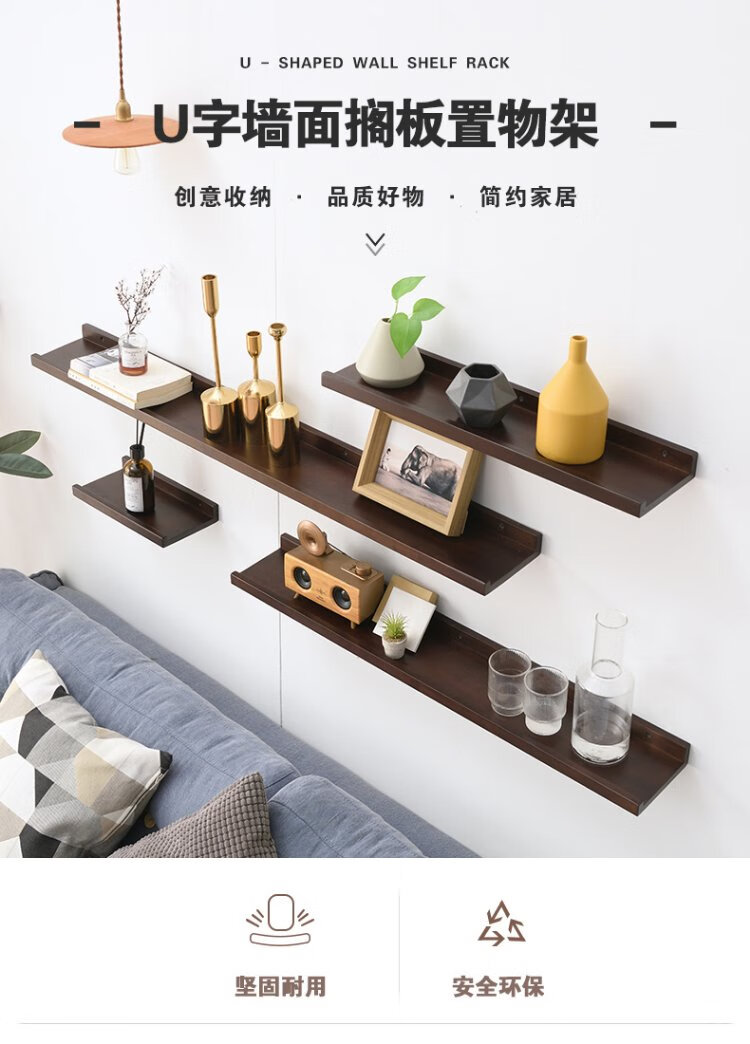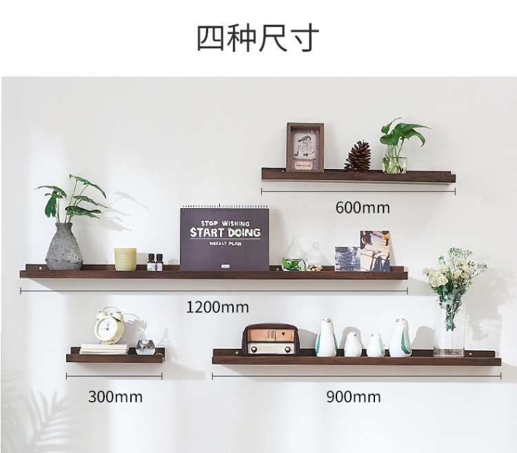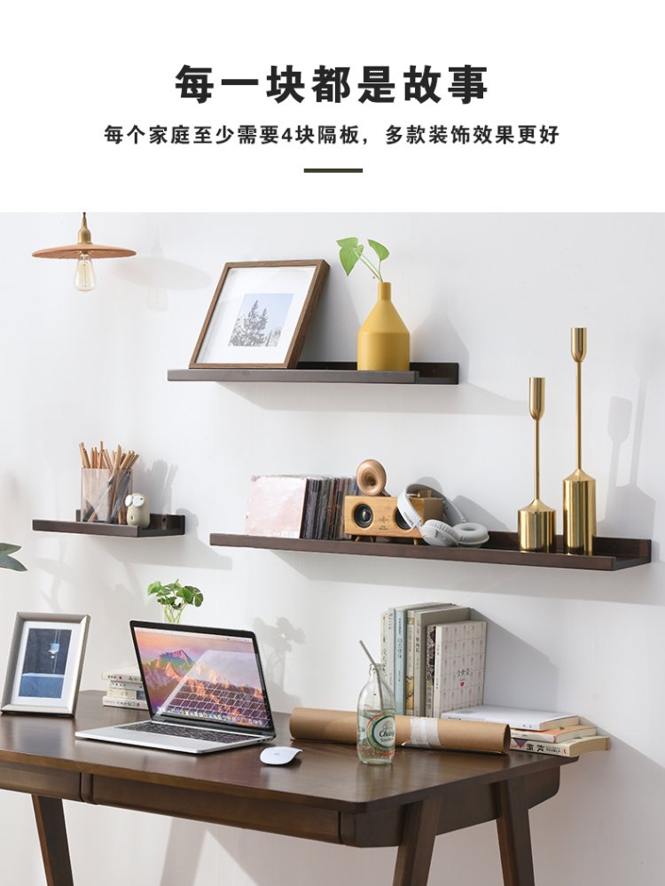 Aibiju solid wood partition wall storage rack wall punch-free one-word shelf storage rack 30*15CM