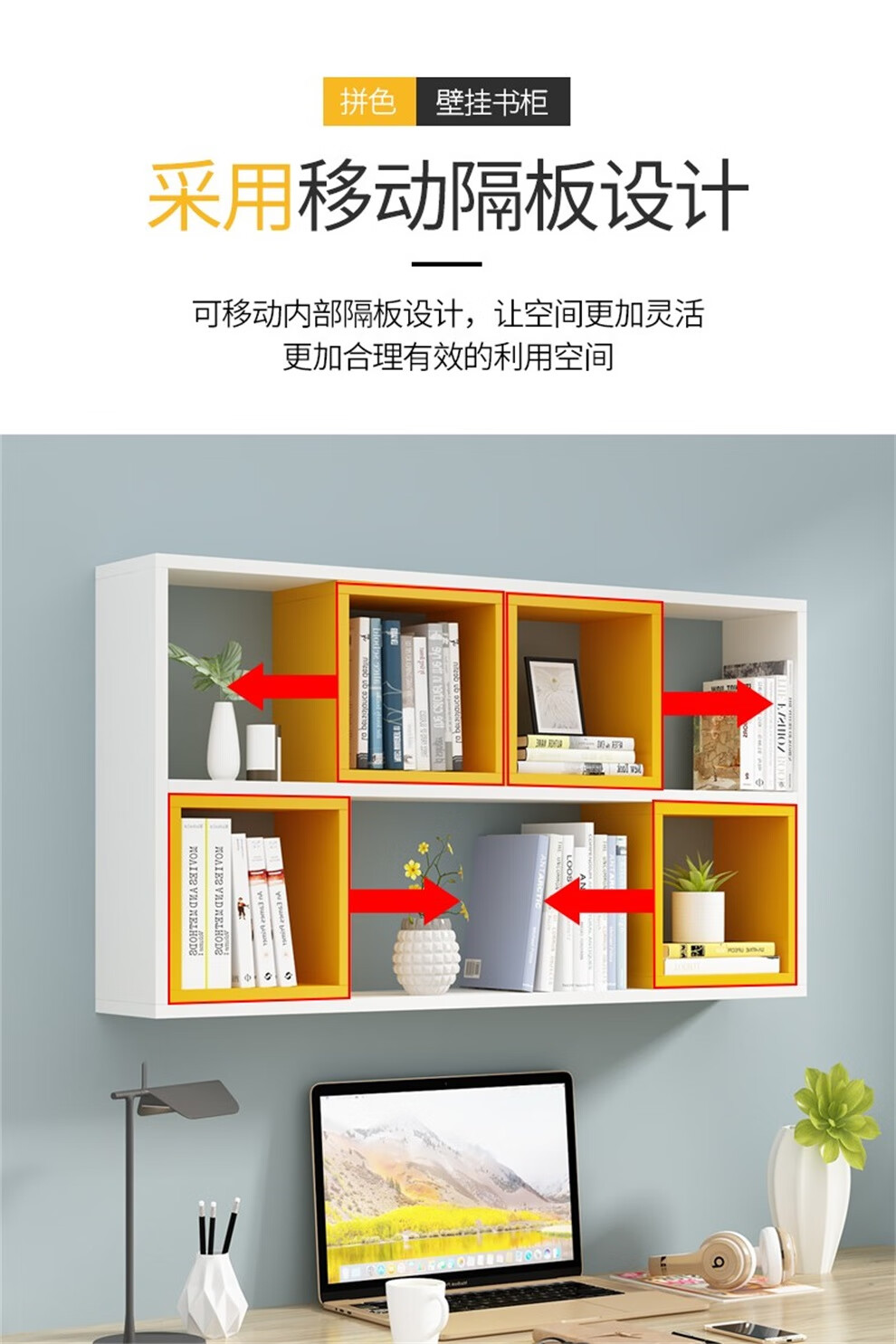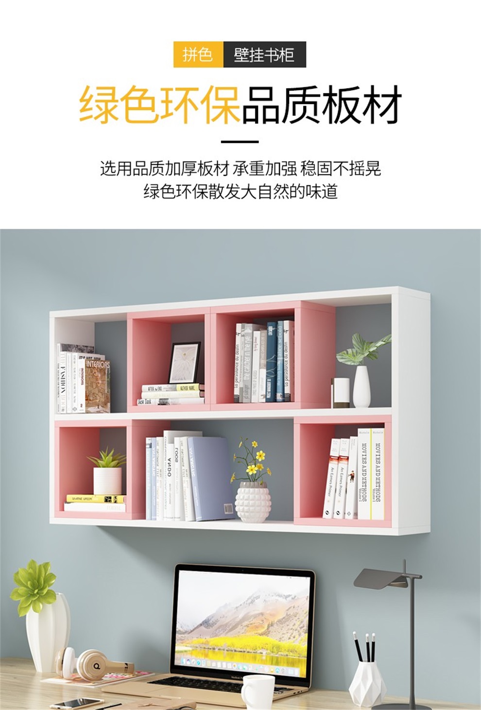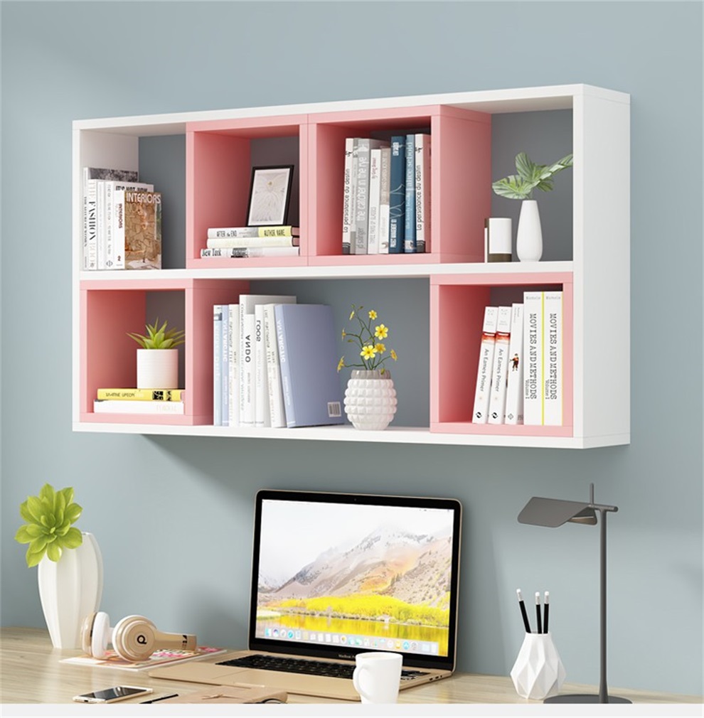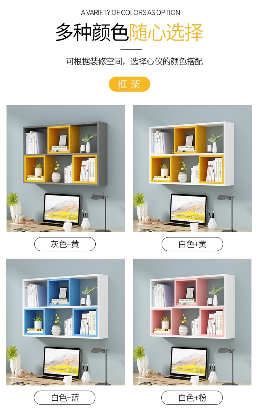 Yuzhan wall shelf wall hanging bookshelf new bedroom partition wall decoration living room TV background wall cabinet wall cabinet white frame pink color matching 120*20*65