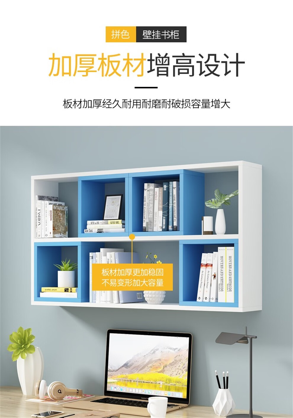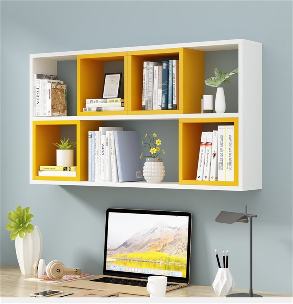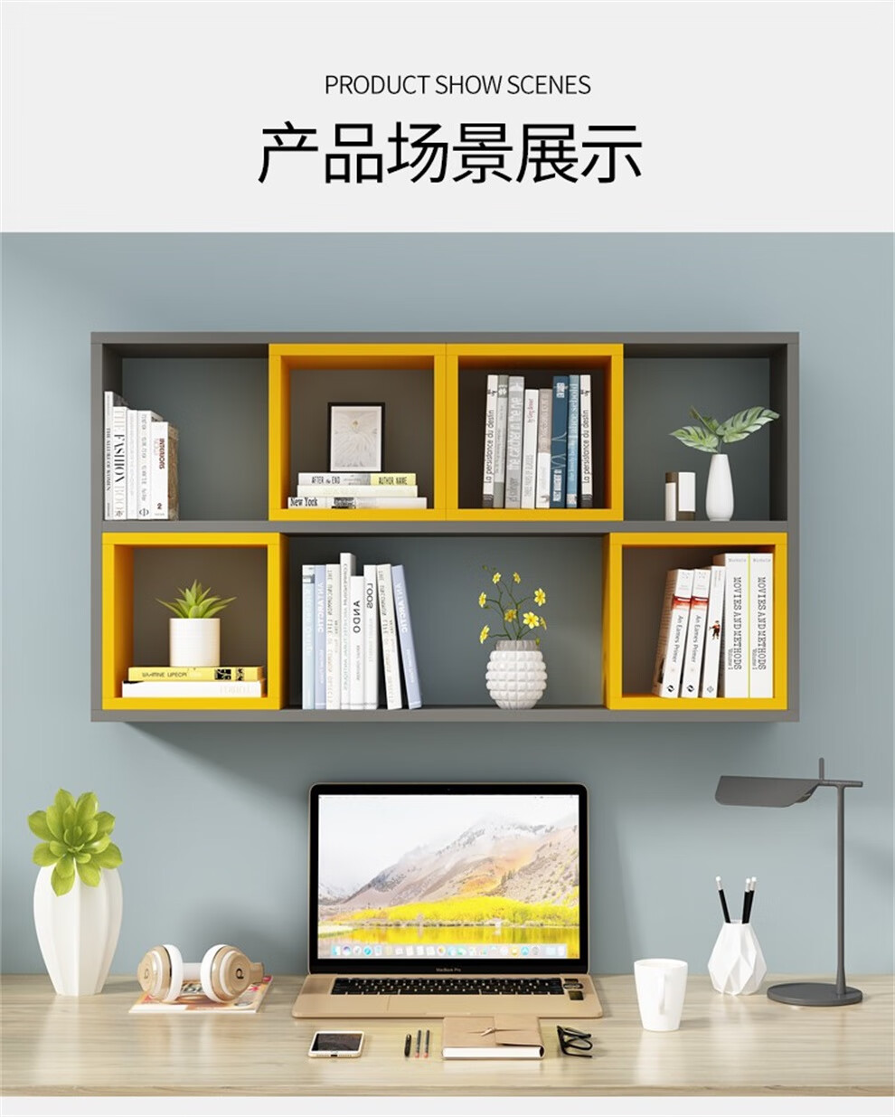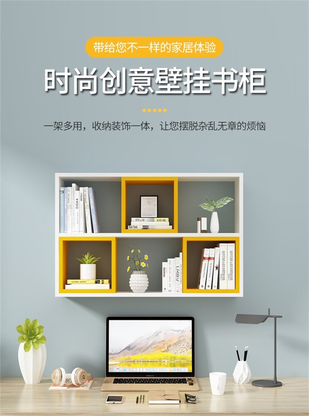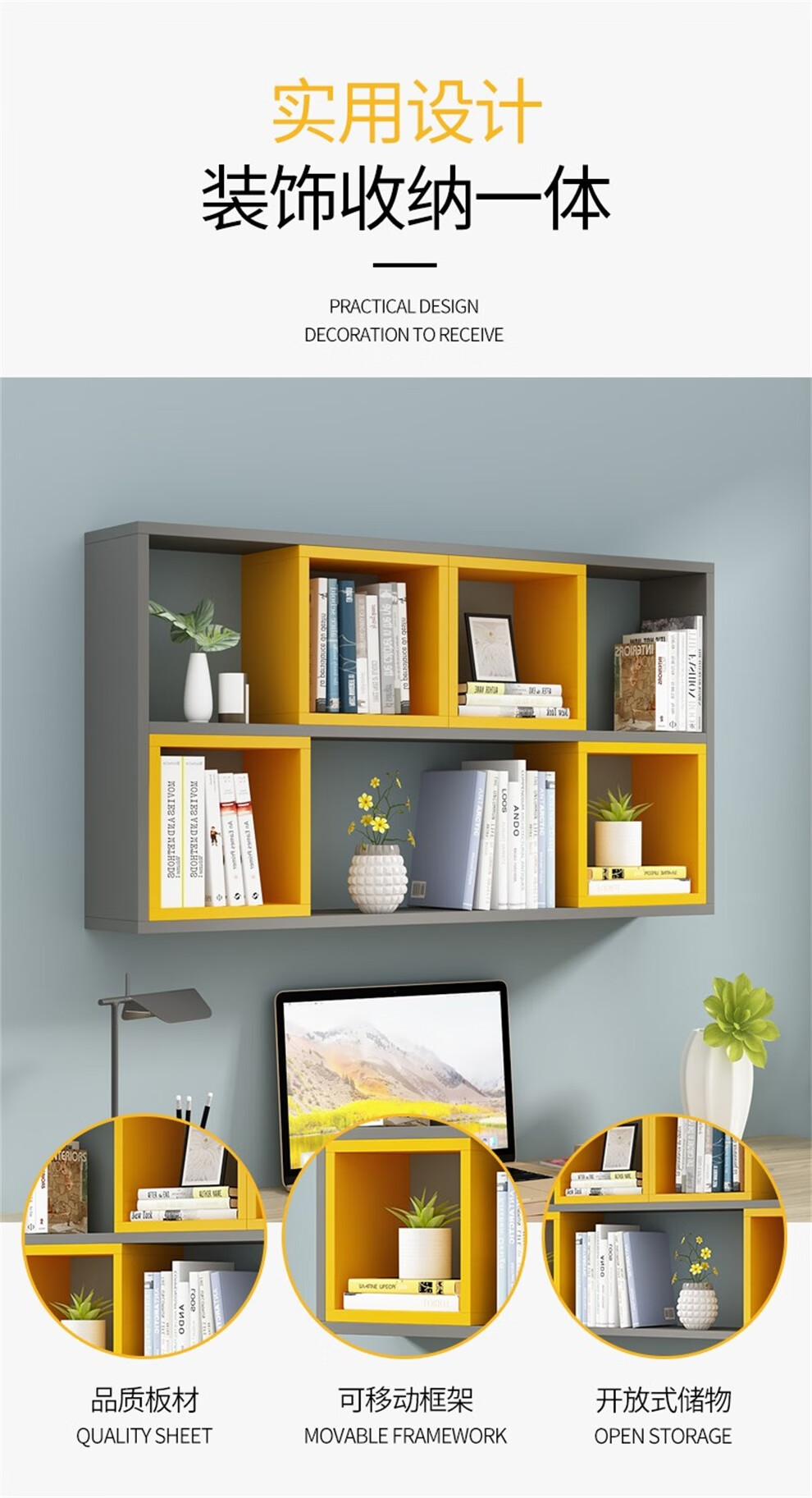 Yuzhan wall shelf wall hanging bookshelf new bedroom partition wall decoration living room TV background wall cabinet wall cabinet white frame pink color matching 120*20*65