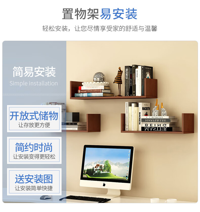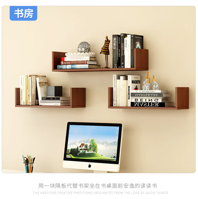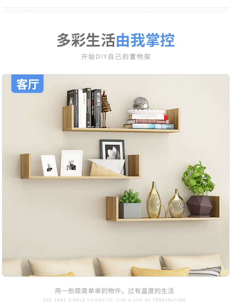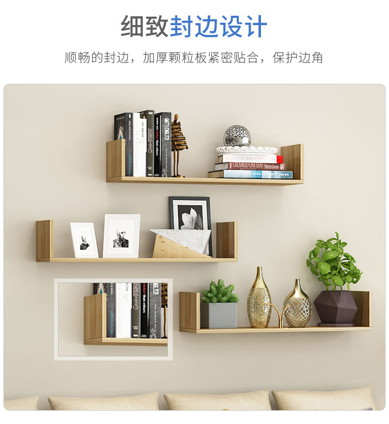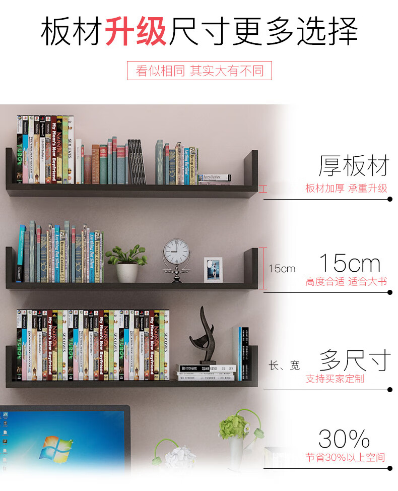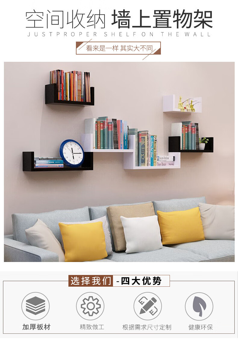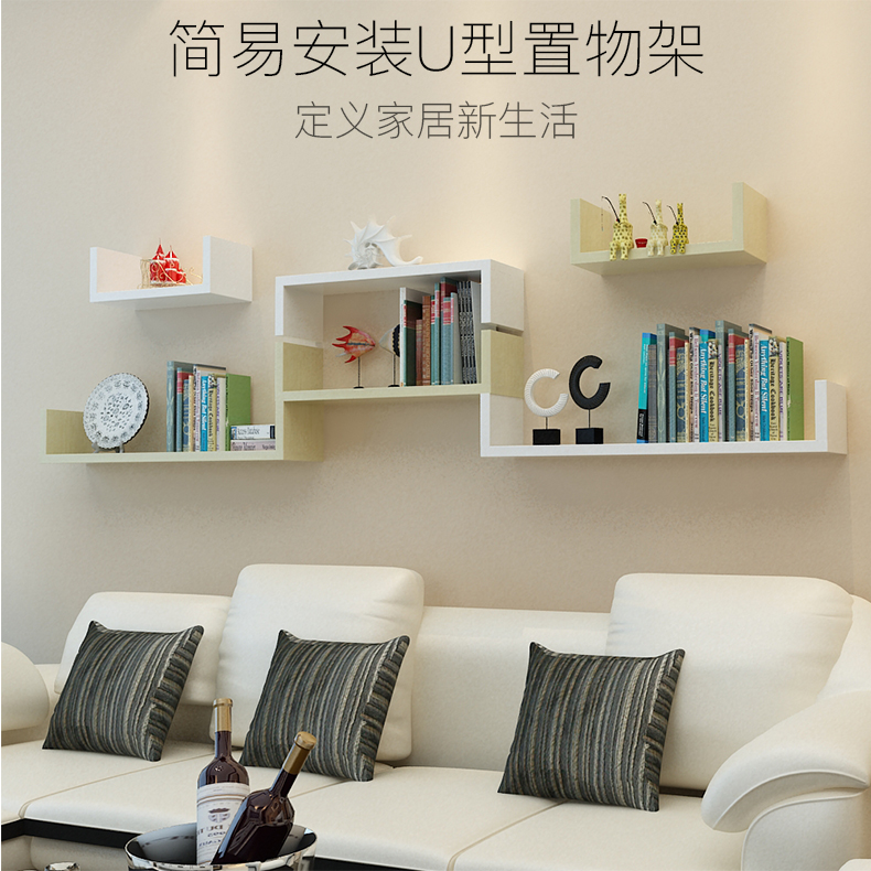 Yuanliang wall-mounted bookshelf upper wall bookshelf U-shaped bookshelf can be punched-free wall storage rack wall hanging wall living room 50 long * 20 wide * 15 high
