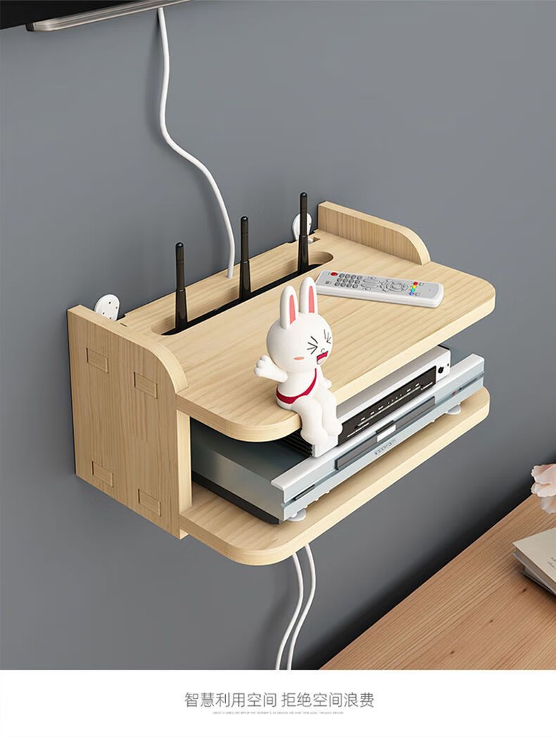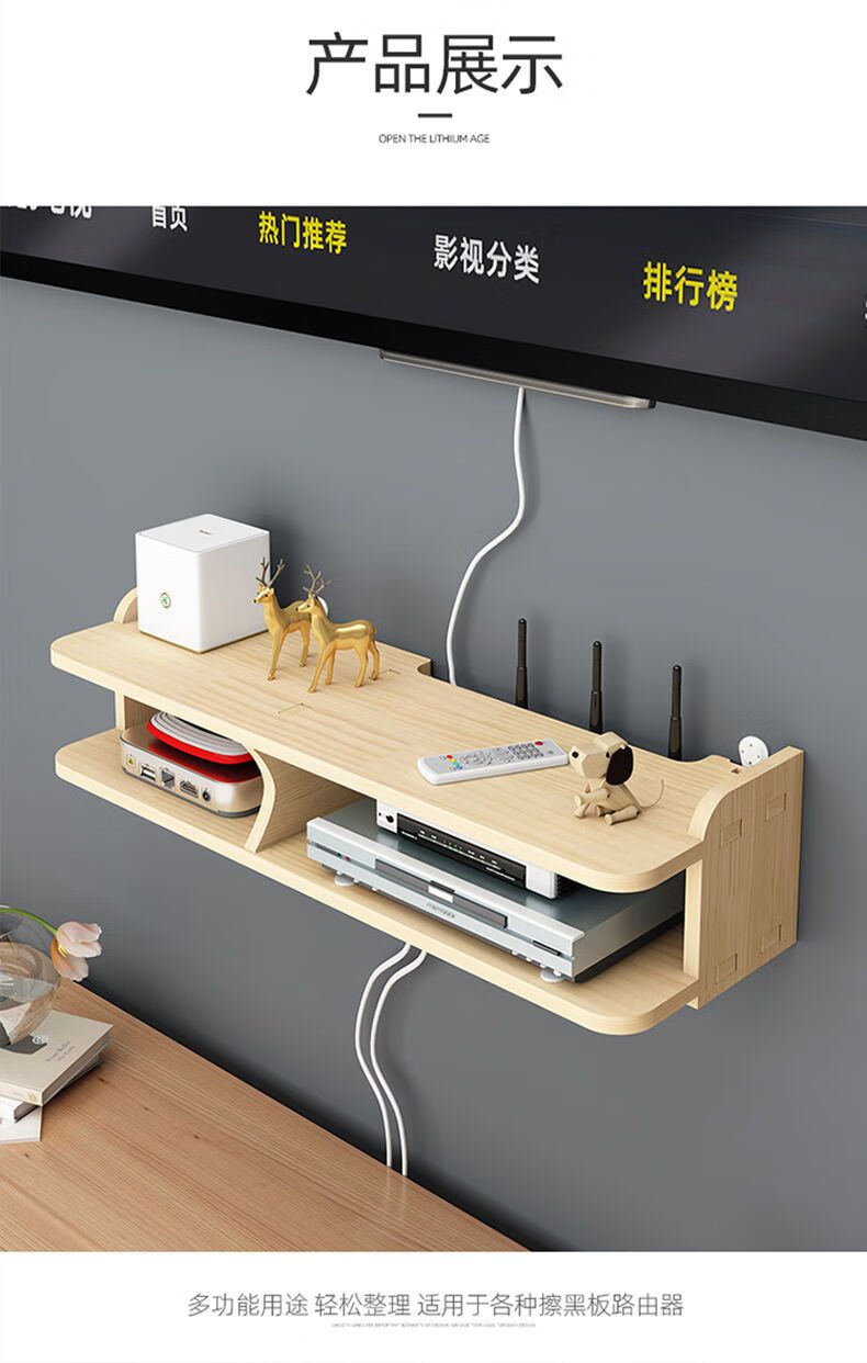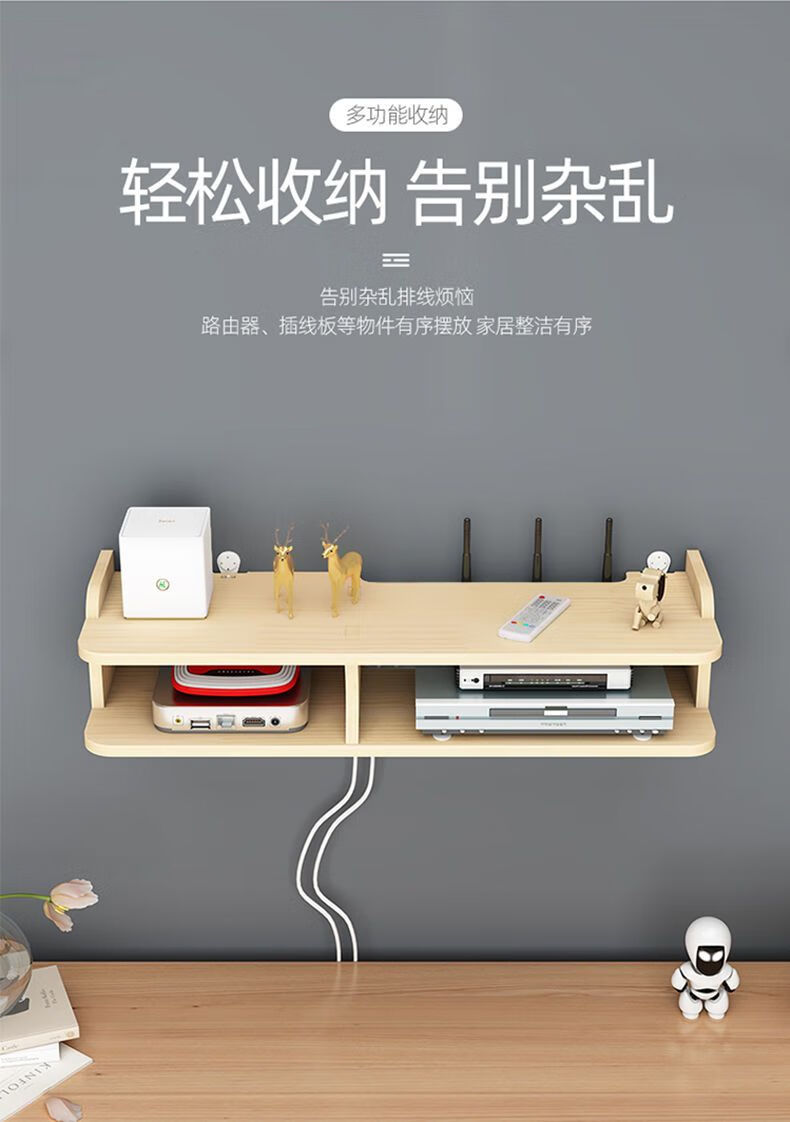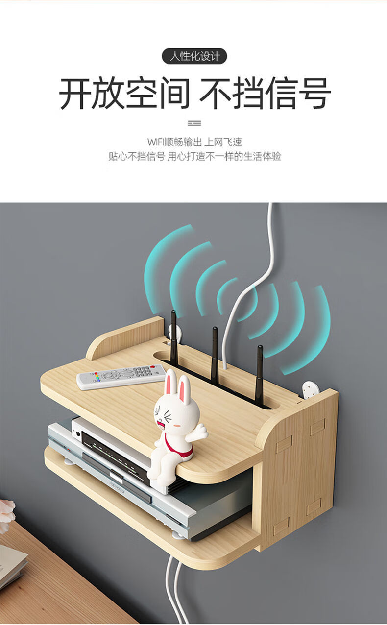 Epson storage rack solid wood punch-free router wireless wifi living room TV set-top box wall-mounted partition rack (pure solid wood) double-layer deepened large 80cm with accessories