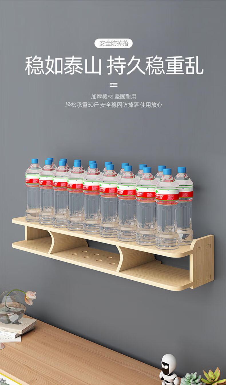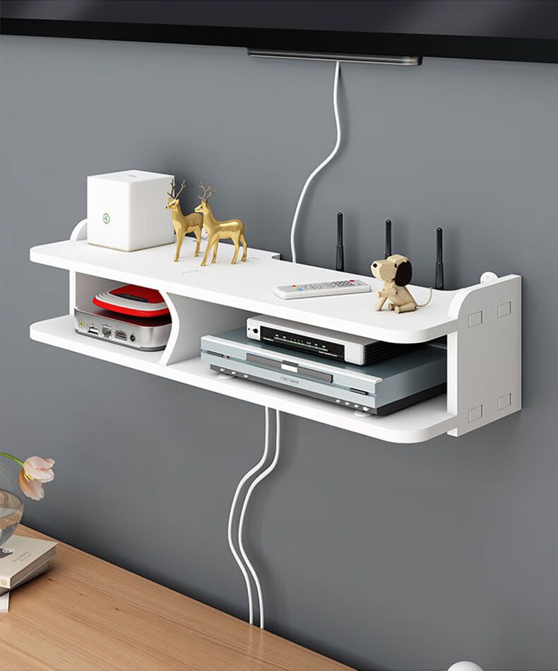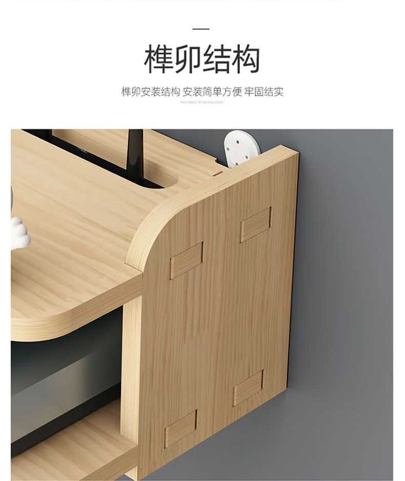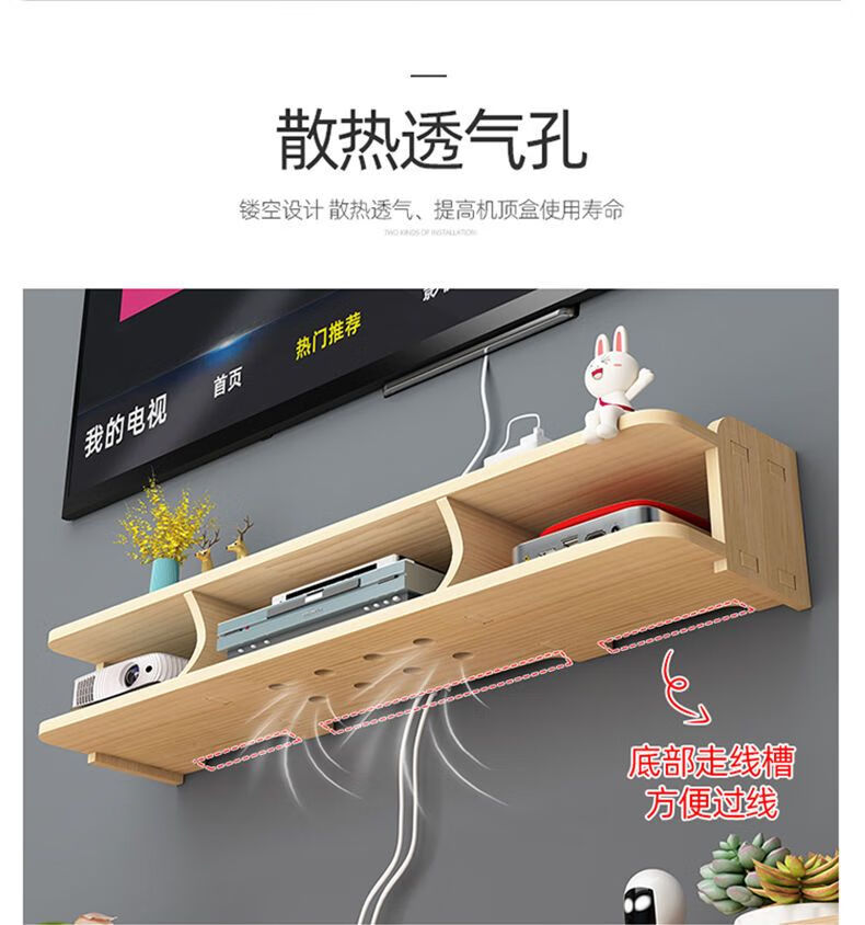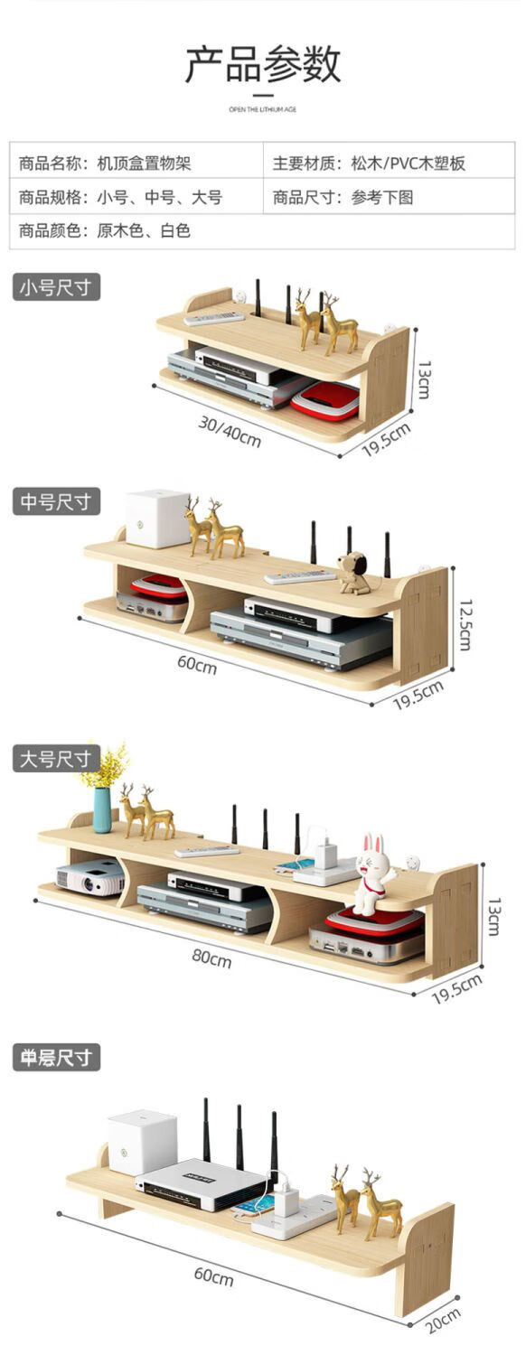 Epson storage rack solid wood punch-free router wireless wifi living room TV set-top box wall-mounted partition rack (pure solid wood) double-layer deepened large 80cm with accessories