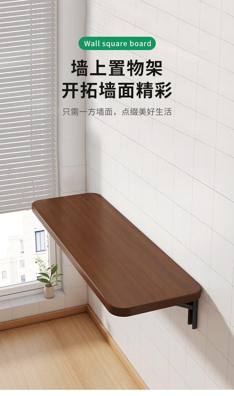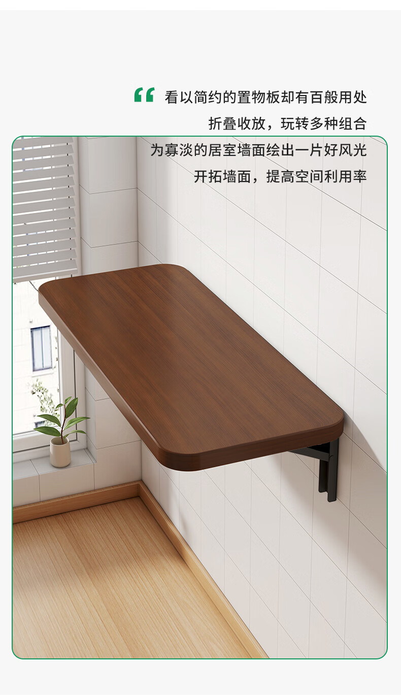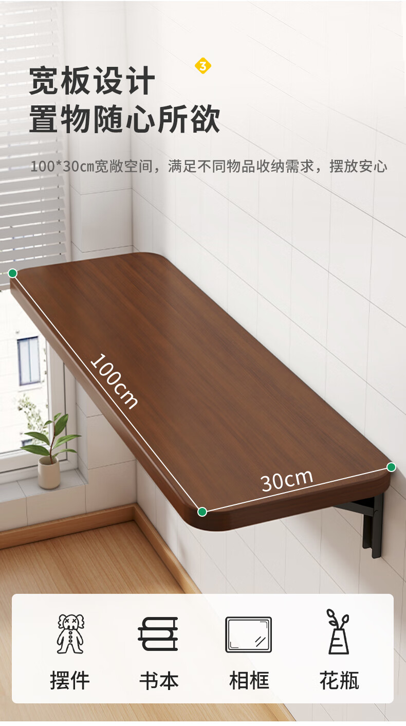 Jiyi Mufang one-word plate storage rack wall storage rack wall-mounted folding table no punching kitchen storage one-word plate dining table decoration walnut color 80X30CM (with 2 thickened anti-rust branches