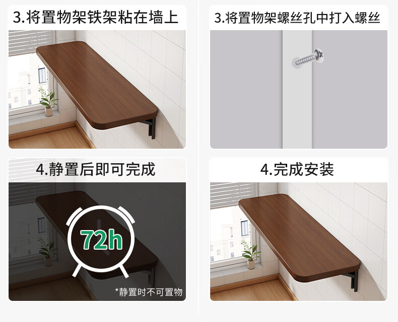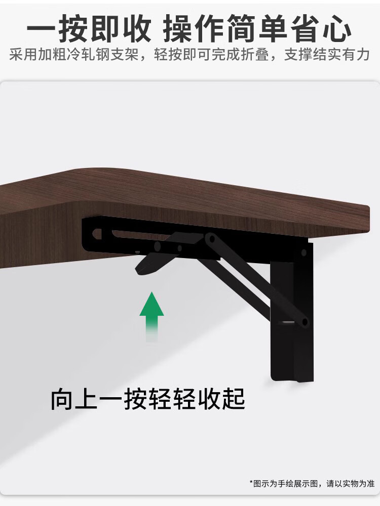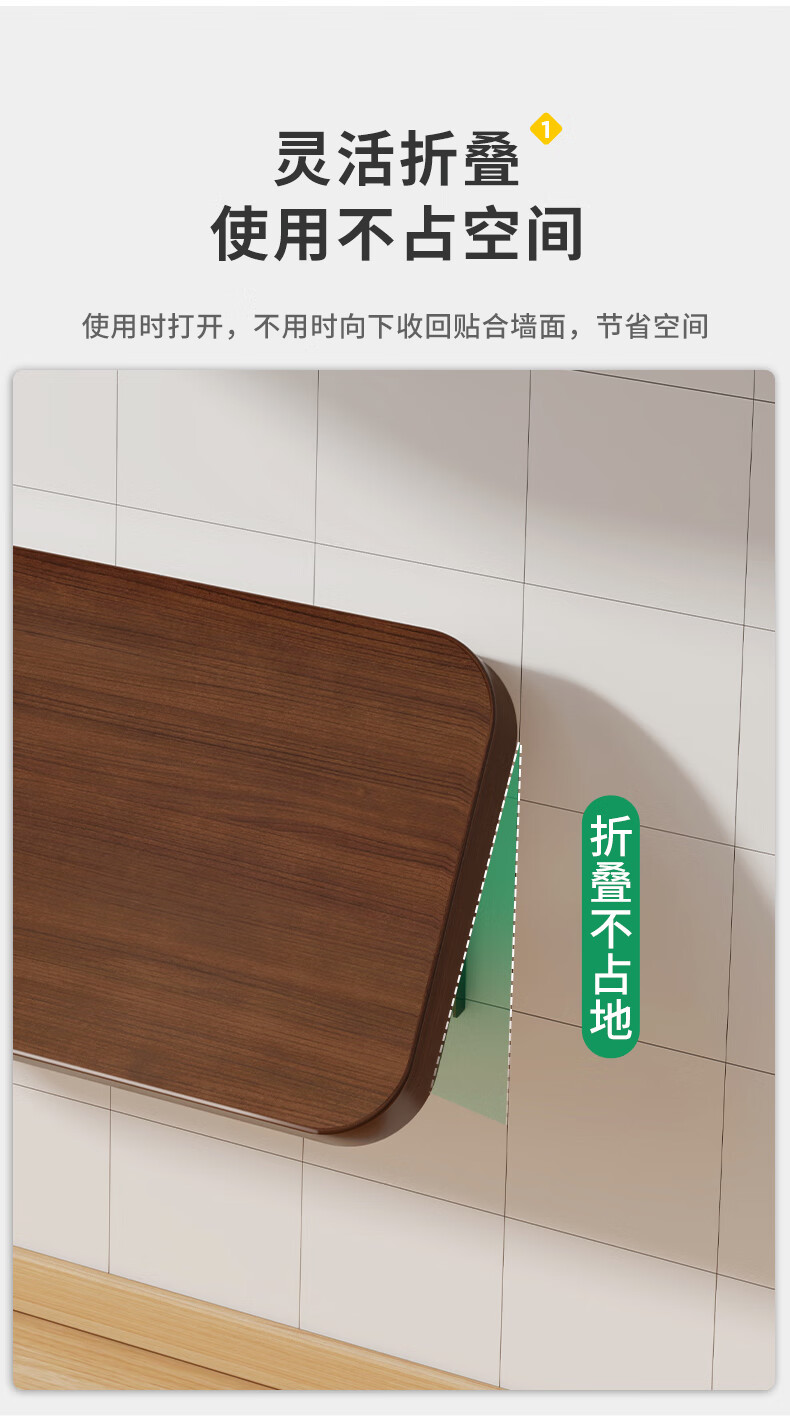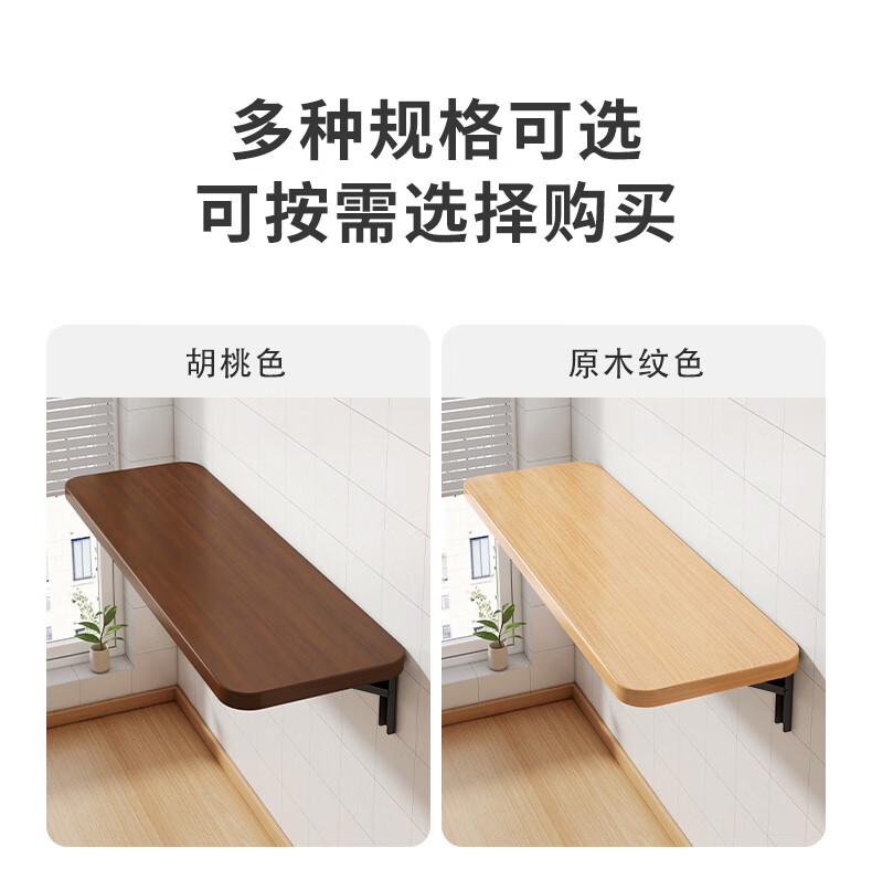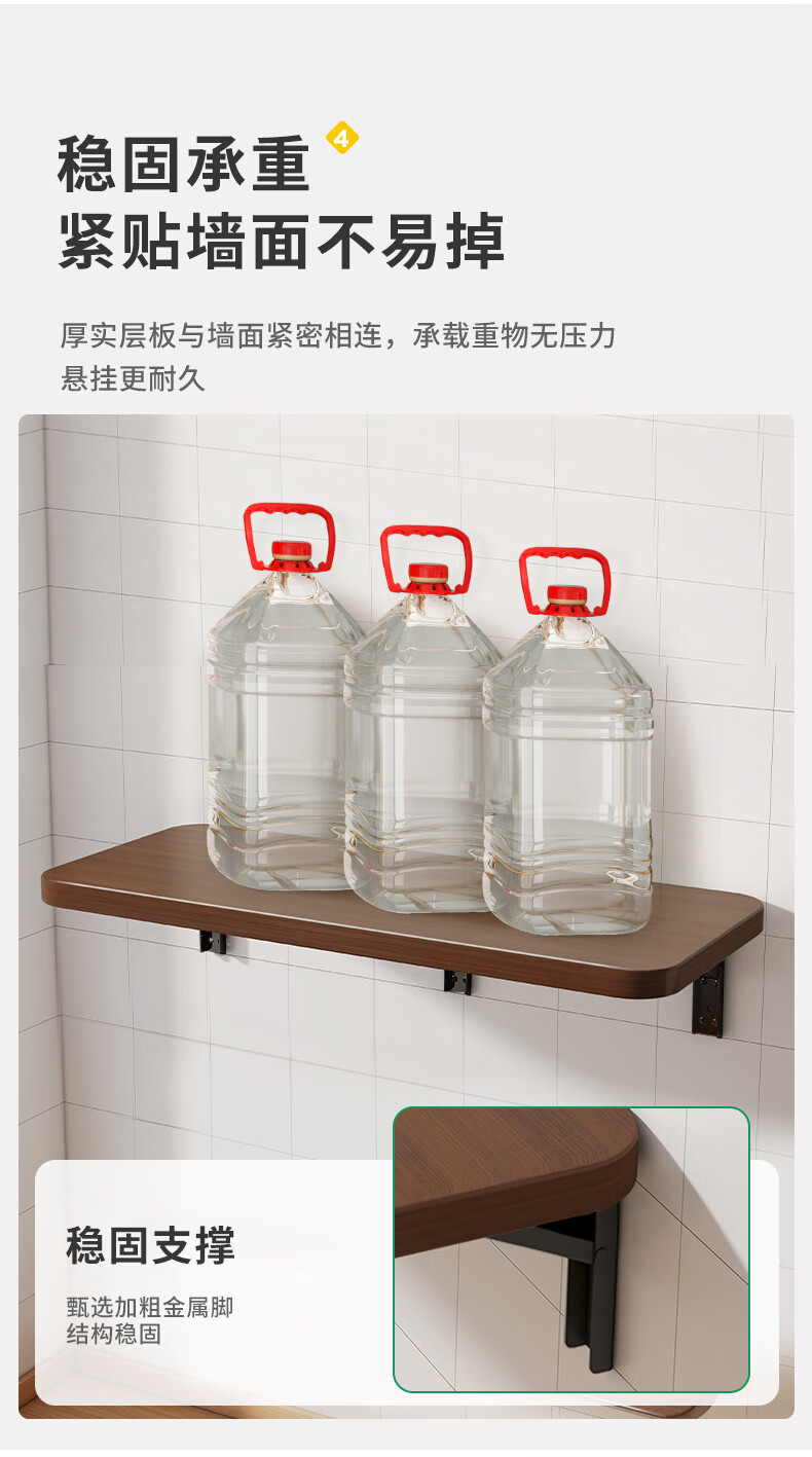 Jiyi Mufang one-word plate storage rack wall storage rack wall-mounted folding table no punching kitchen storage one-word plate dining table decoration walnut color 80X30CM (with 2 thickened anti-rust branches