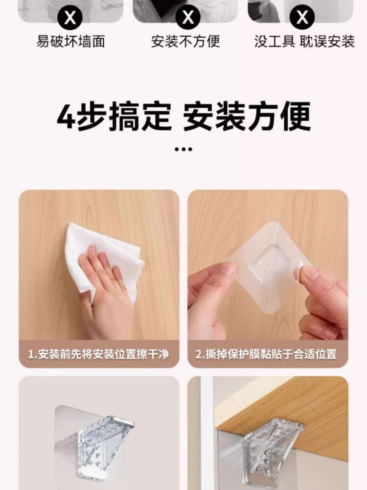 Jianzhou wardrobe partition custom punch-free storage rack cabinet bookshelf compartment shoe cabinet kitchen partition board paint-free ecological board large traceless sticker 4 pack