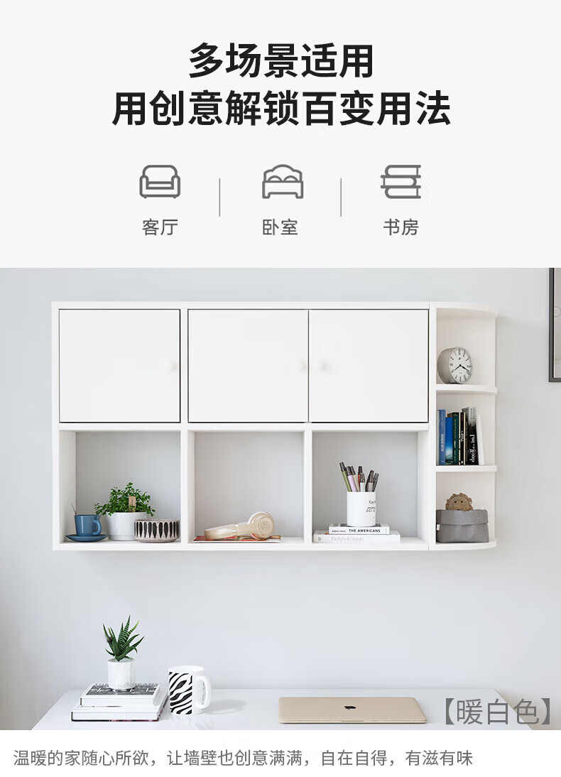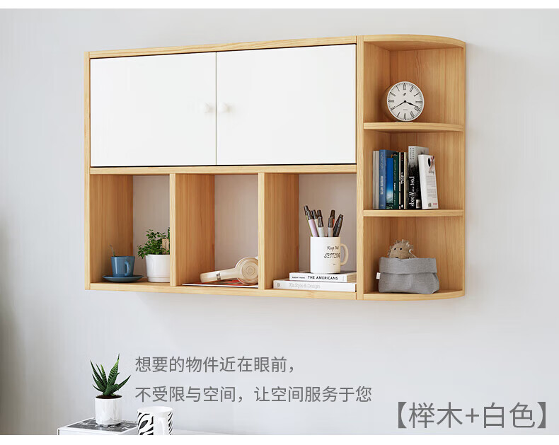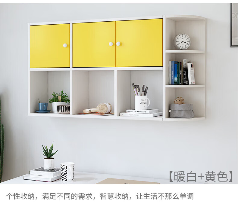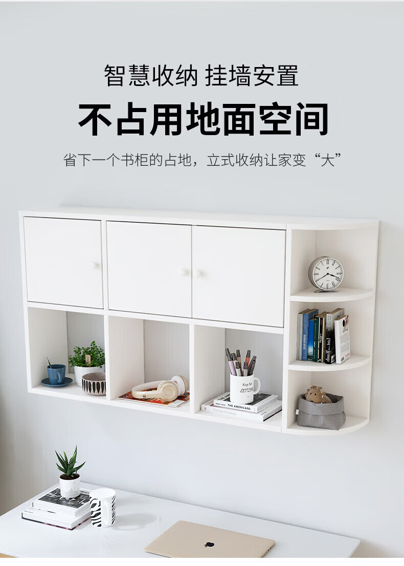 Wall bookshelf storage rack wall cabinet wall-mounted bookcase wall storage locker study living room wall 120 white 100 white non-marking nails level