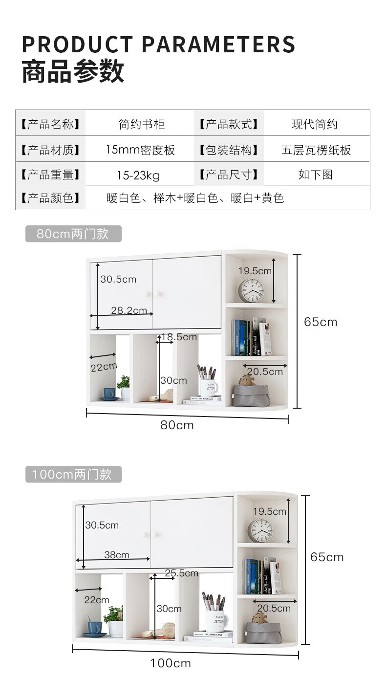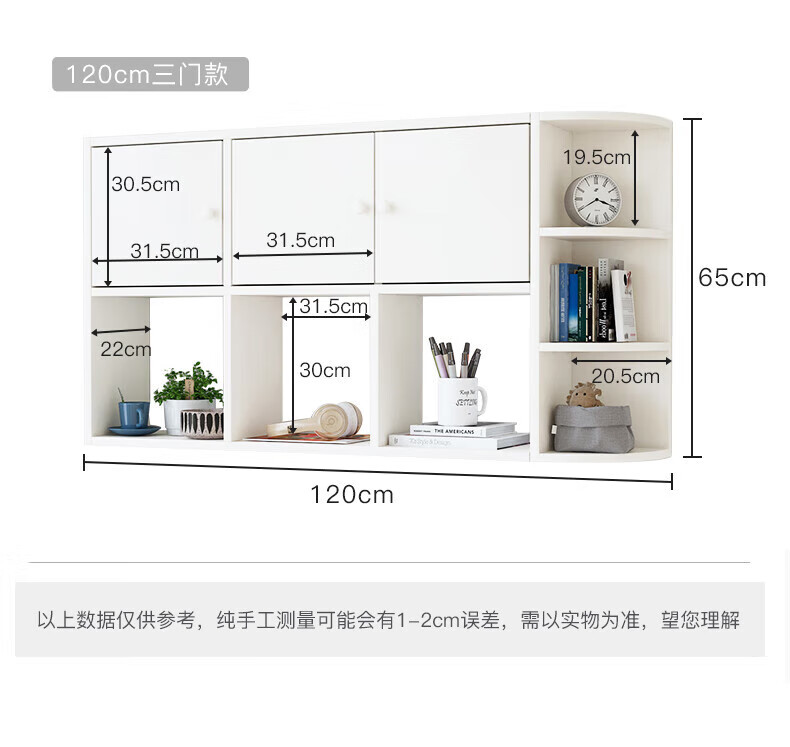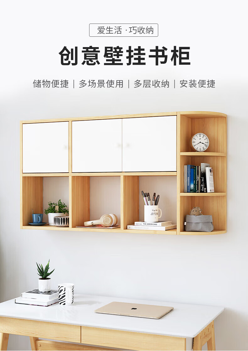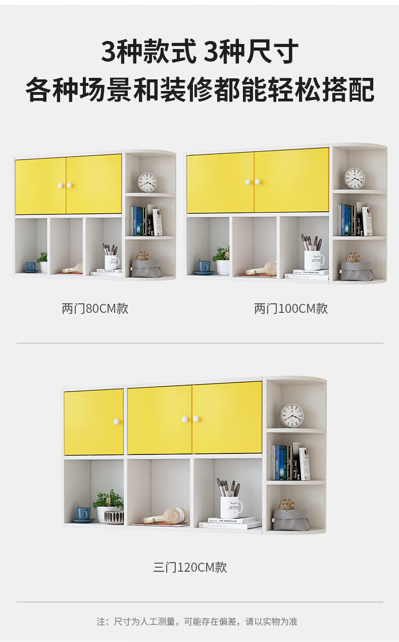 Wall bookshelf storage rack wall cabinet wall-mounted bookcase wall storage locker study living room wall 120 white 100 white non-marking nails level