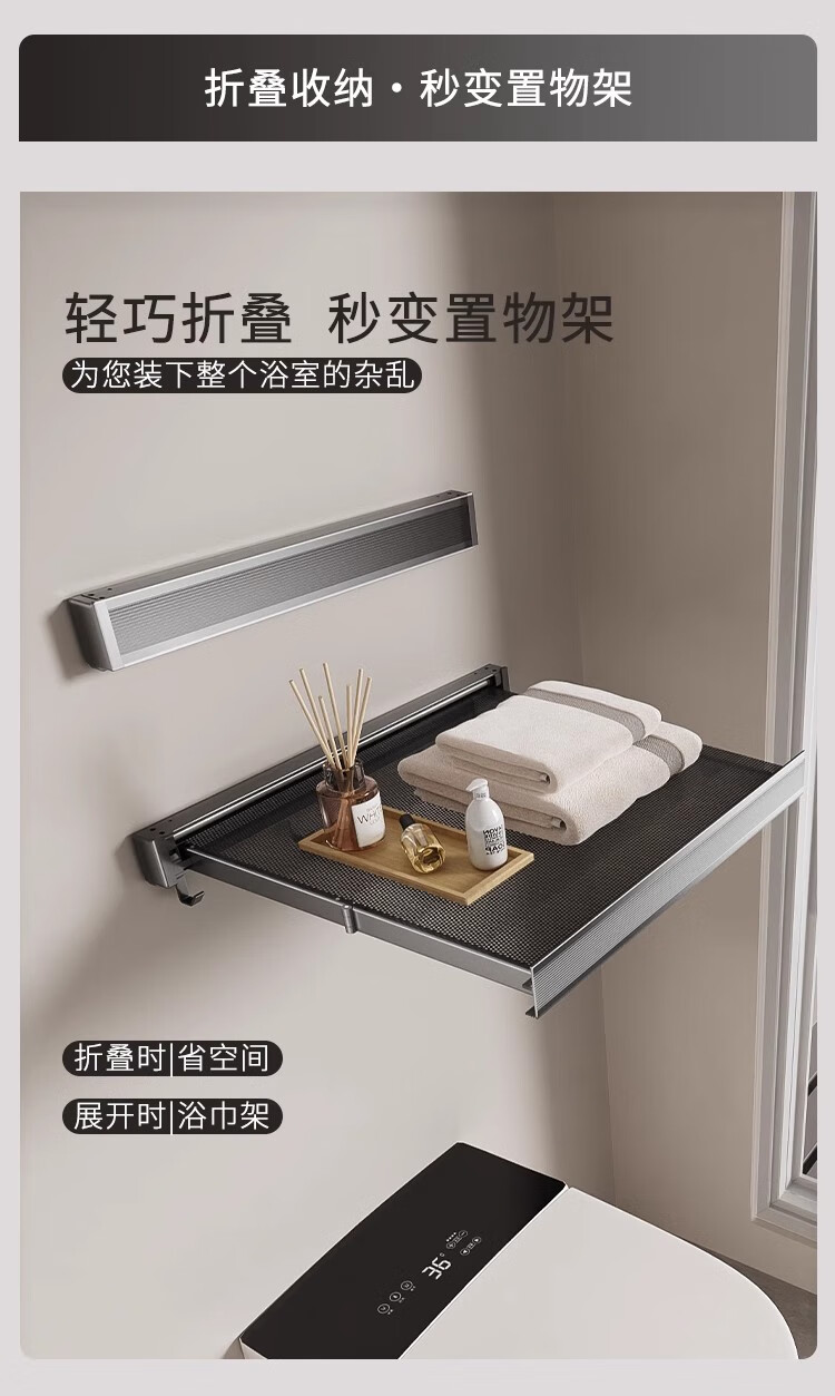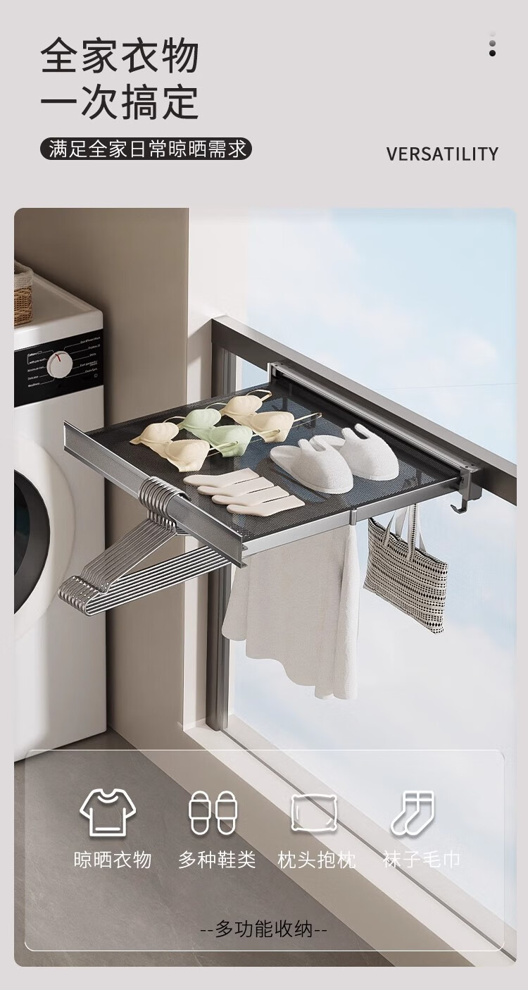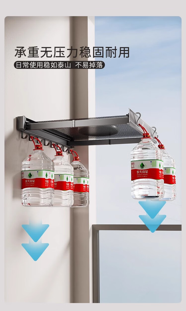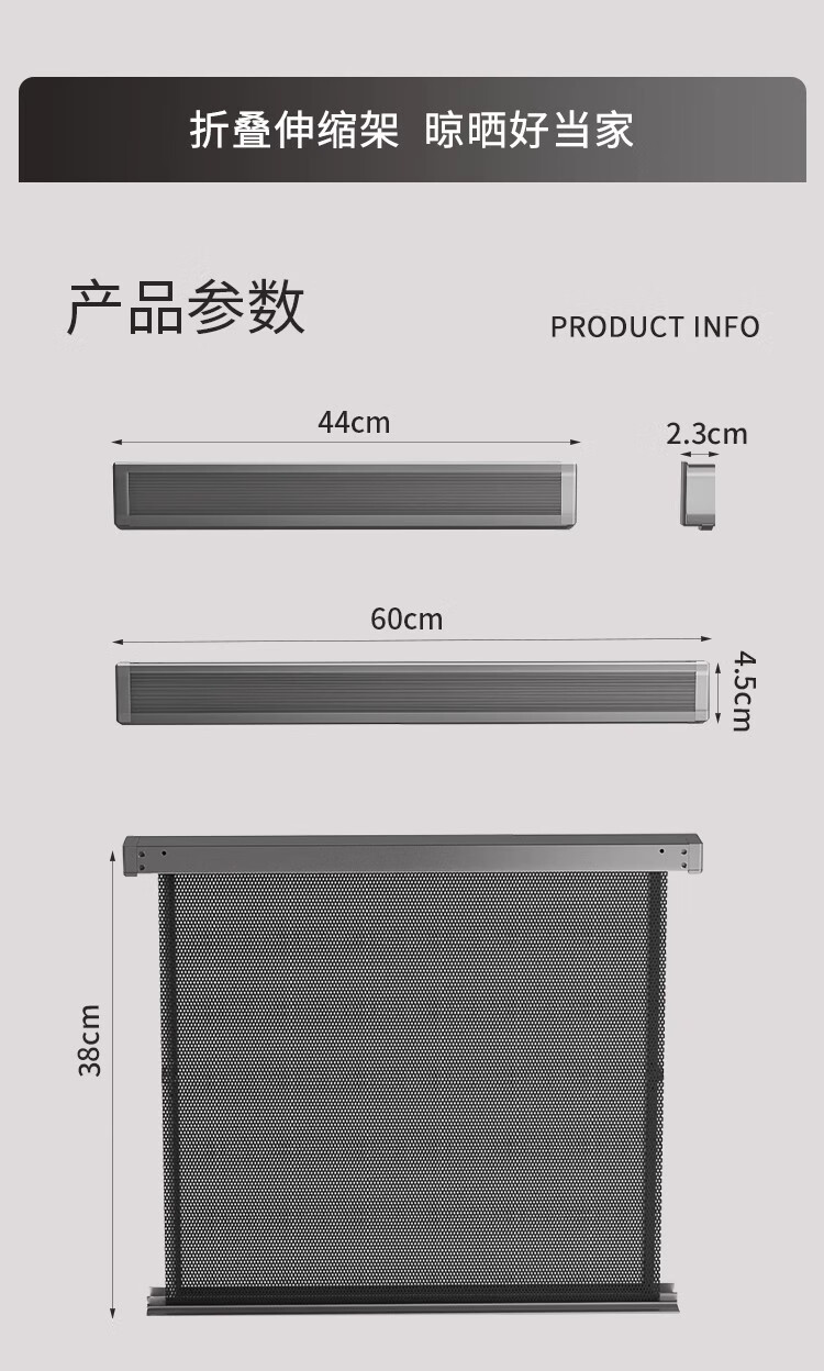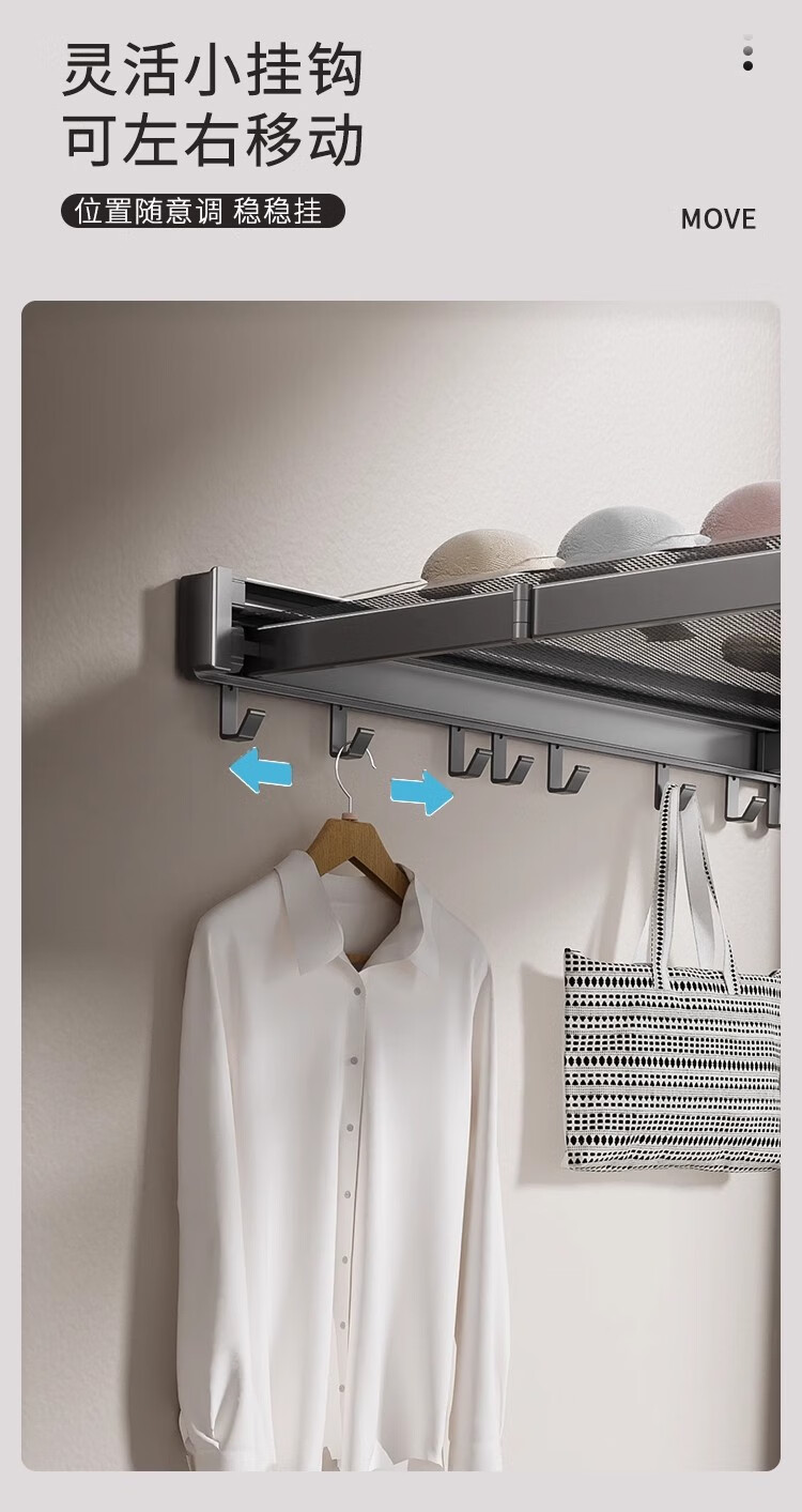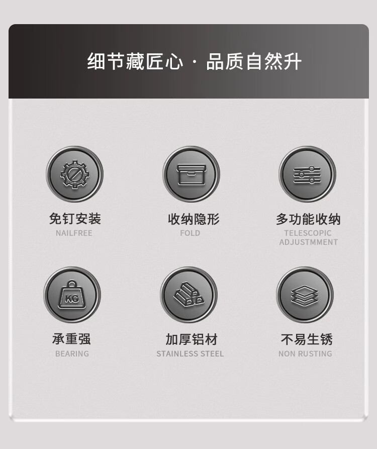 Good wife multifunctional home bathroom/balcony can store things and can be laid flat for drying. The wall rack can be retracted and stored with hooks. Large size 60cm can be retracted and stored with 8 hooks.
