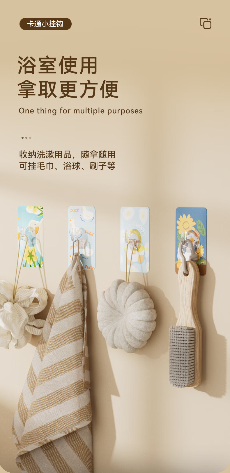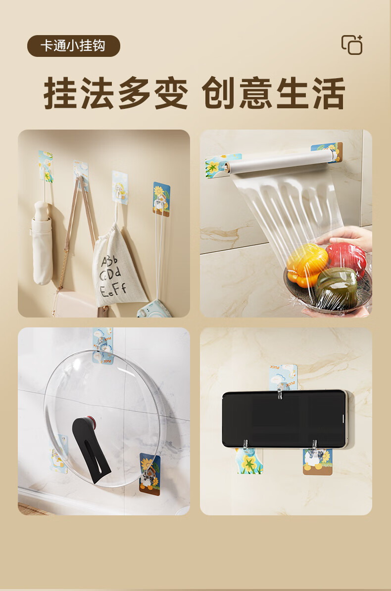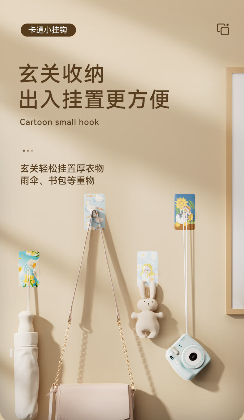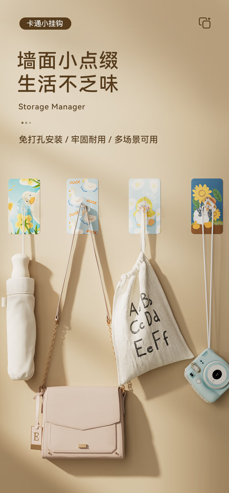 Wall shelf hook sticky hook strong load-bearing cartoon creative kitchen bathroom wall hanging door for home use 5 random pcs