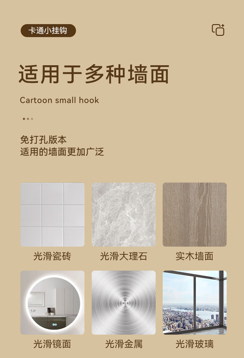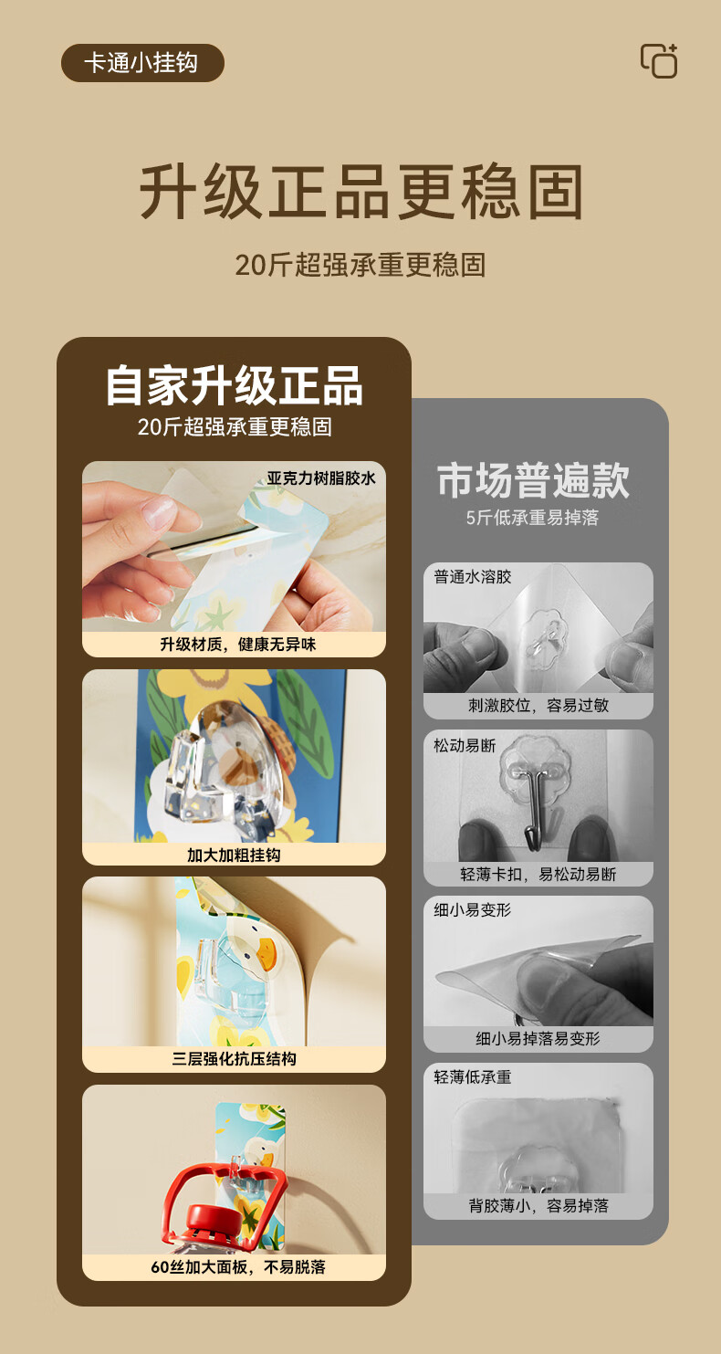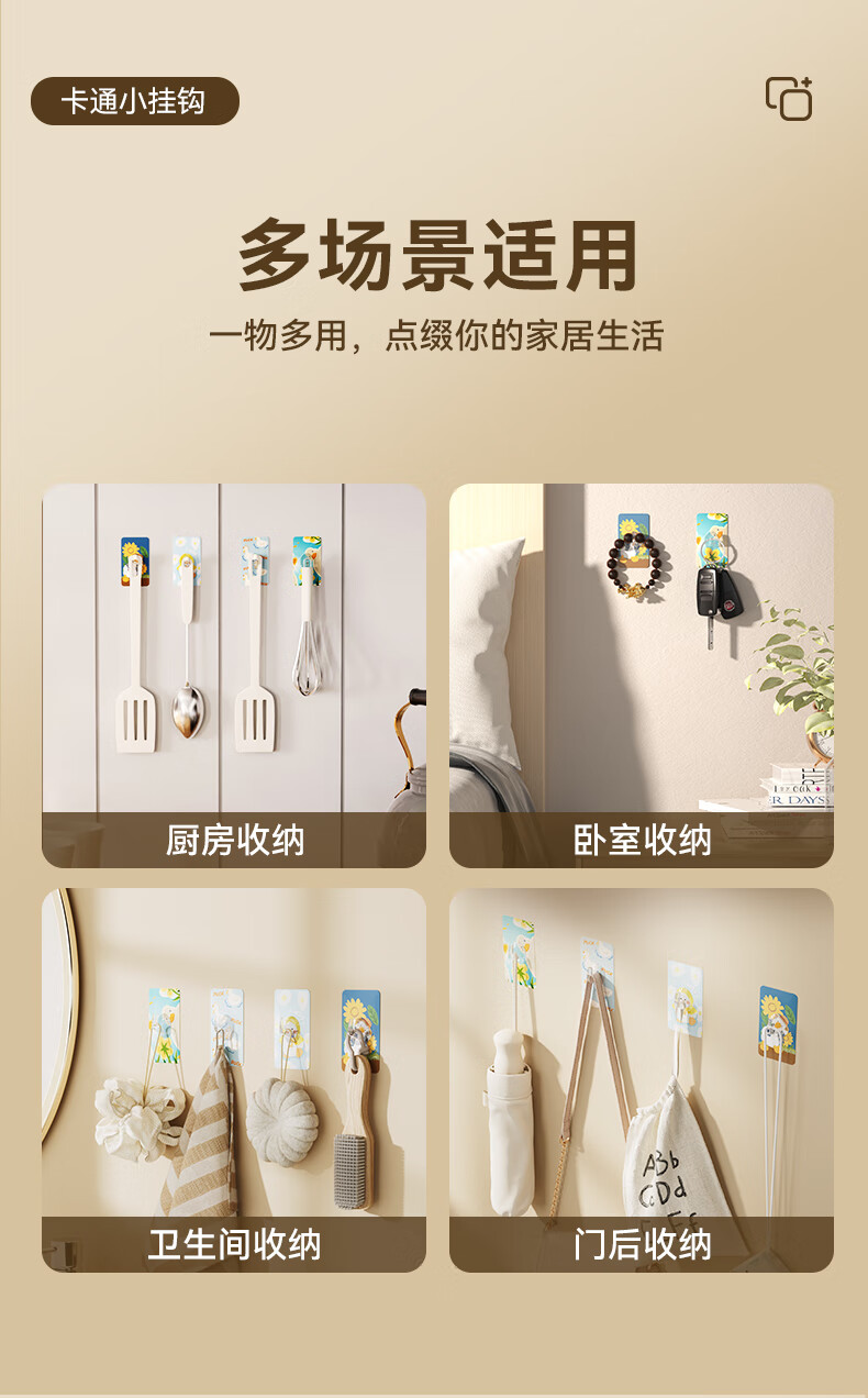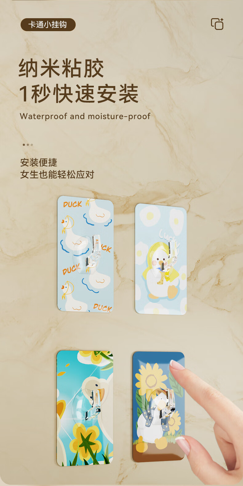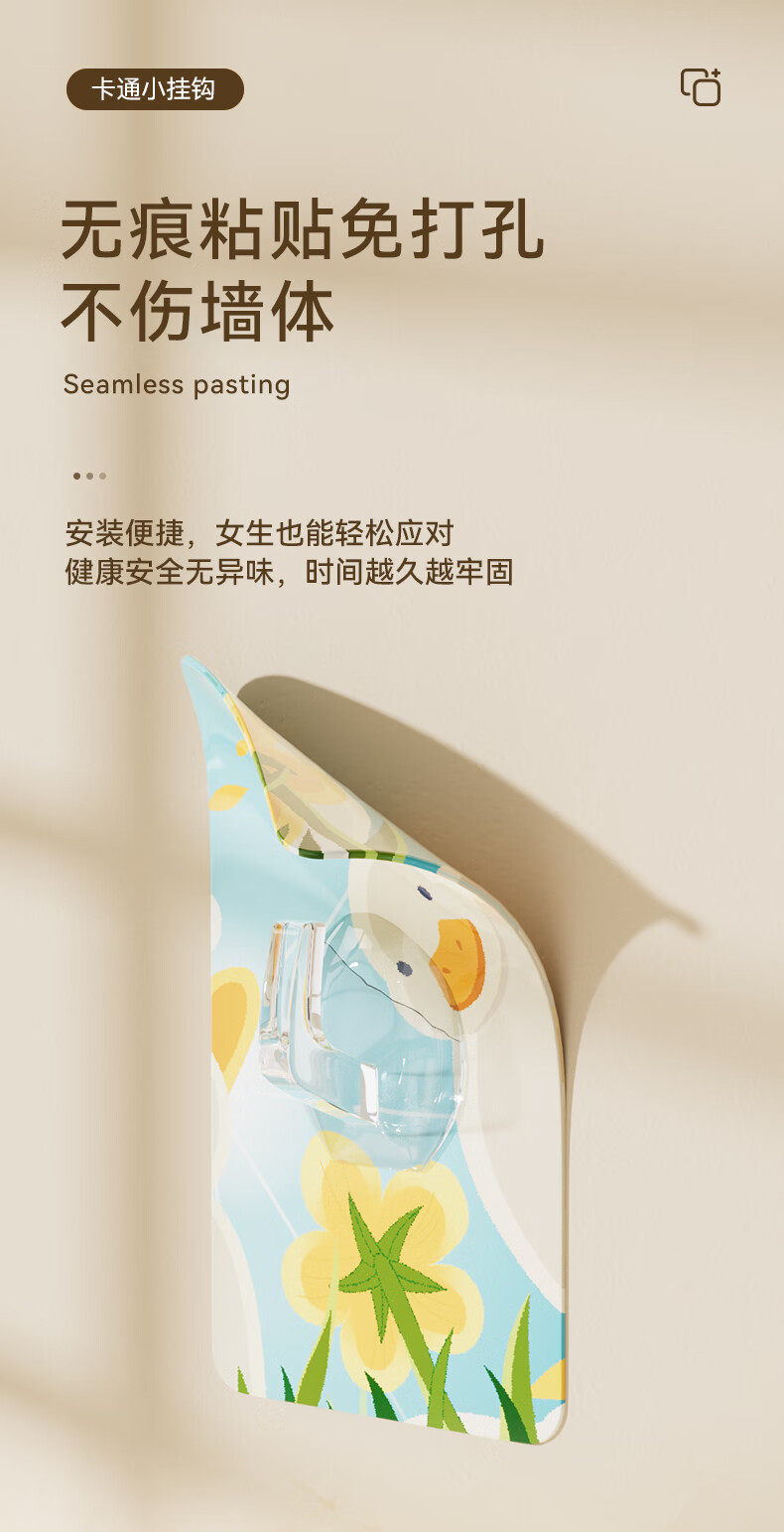Wall shelf hook sticky hook strong load-bearing cartoon creative kitchen bathroom wall hanging door for home use 5 random pcs