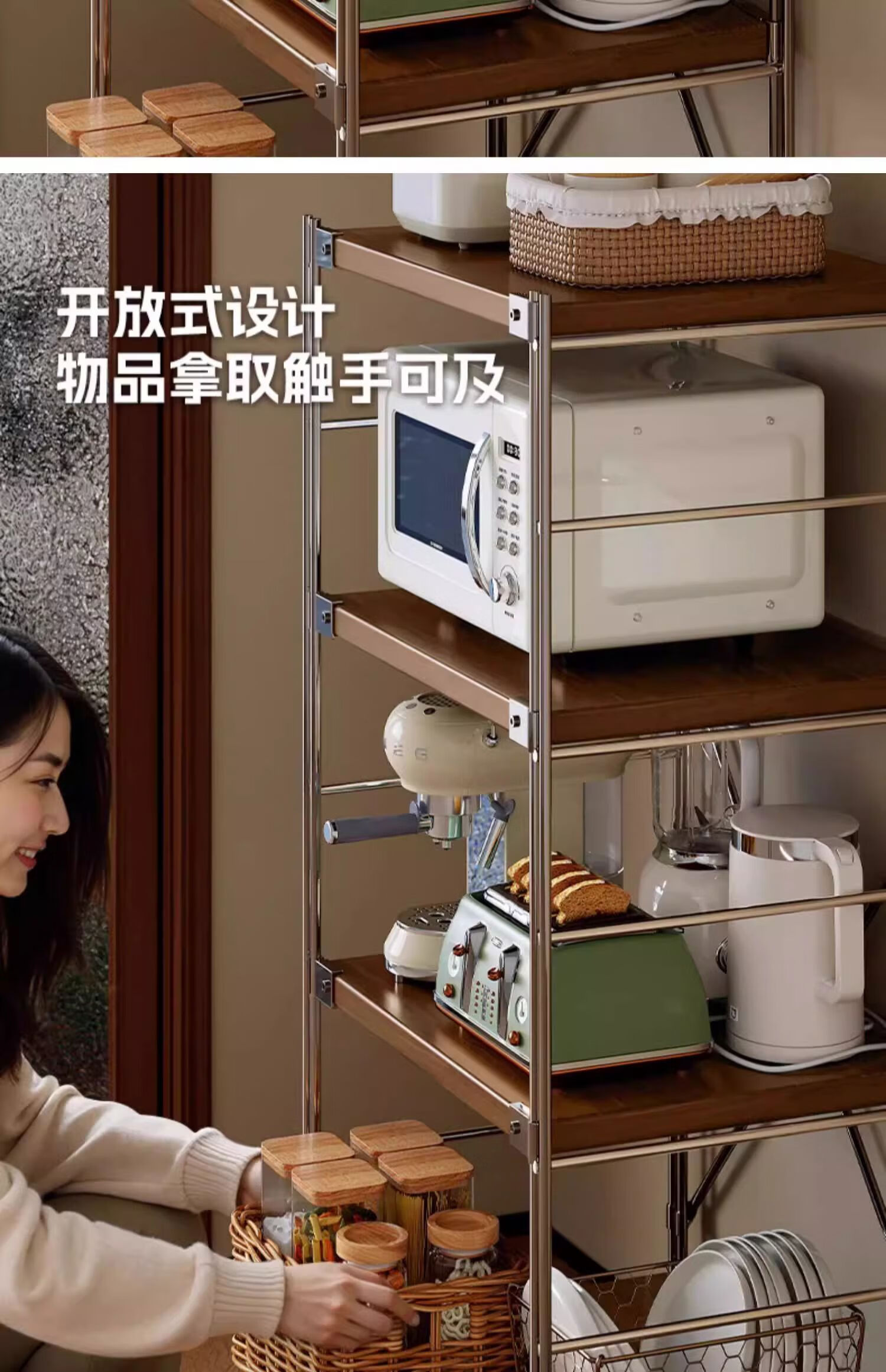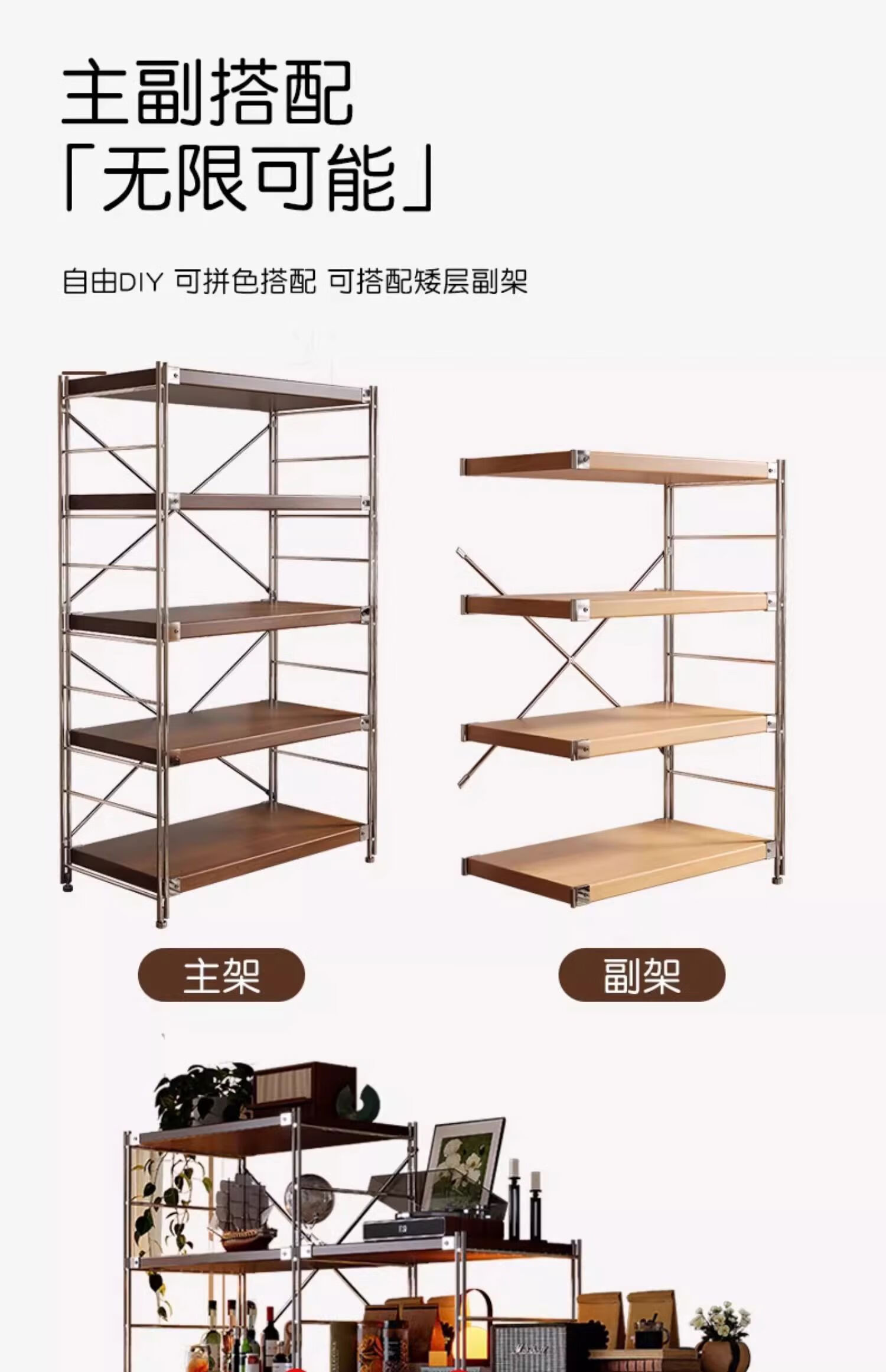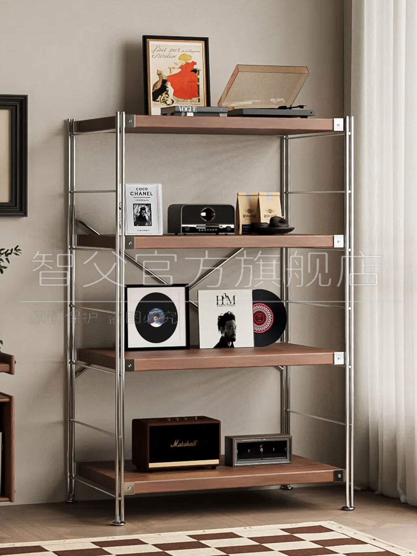 Fantasy Japanese-style storage rack floor-standing multi-layer medieval storage rack kitchen balcony storage room small shelf living room display 6-layer walnut color 90x31x190