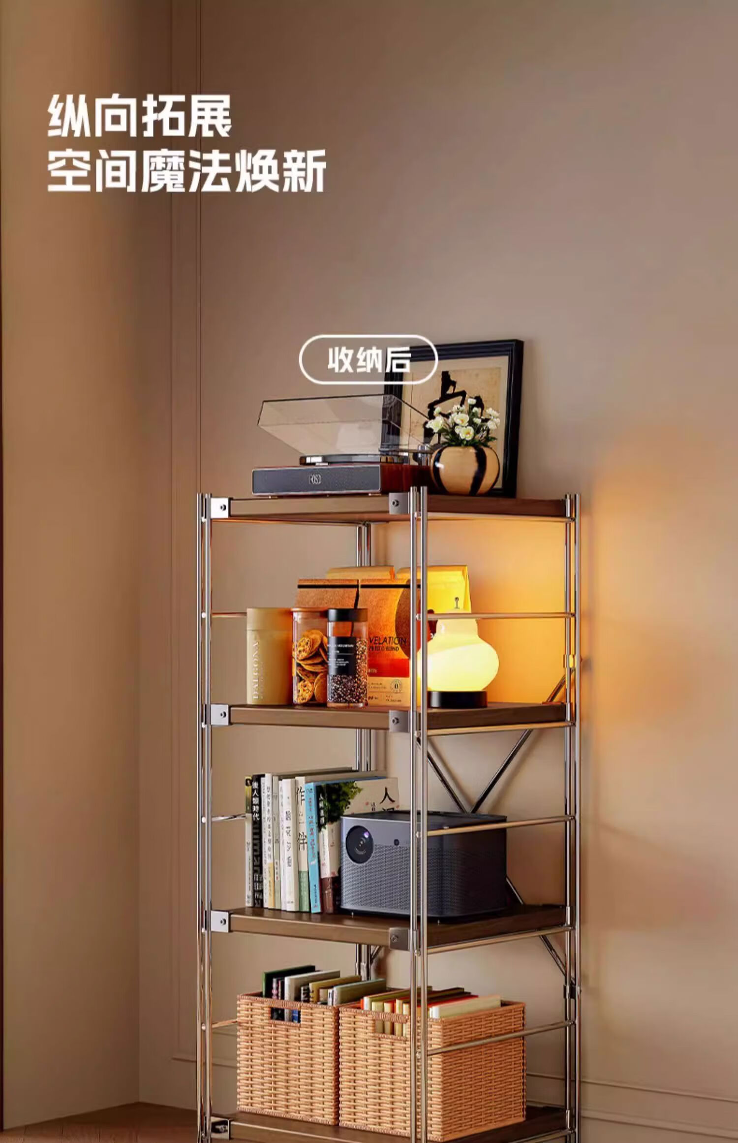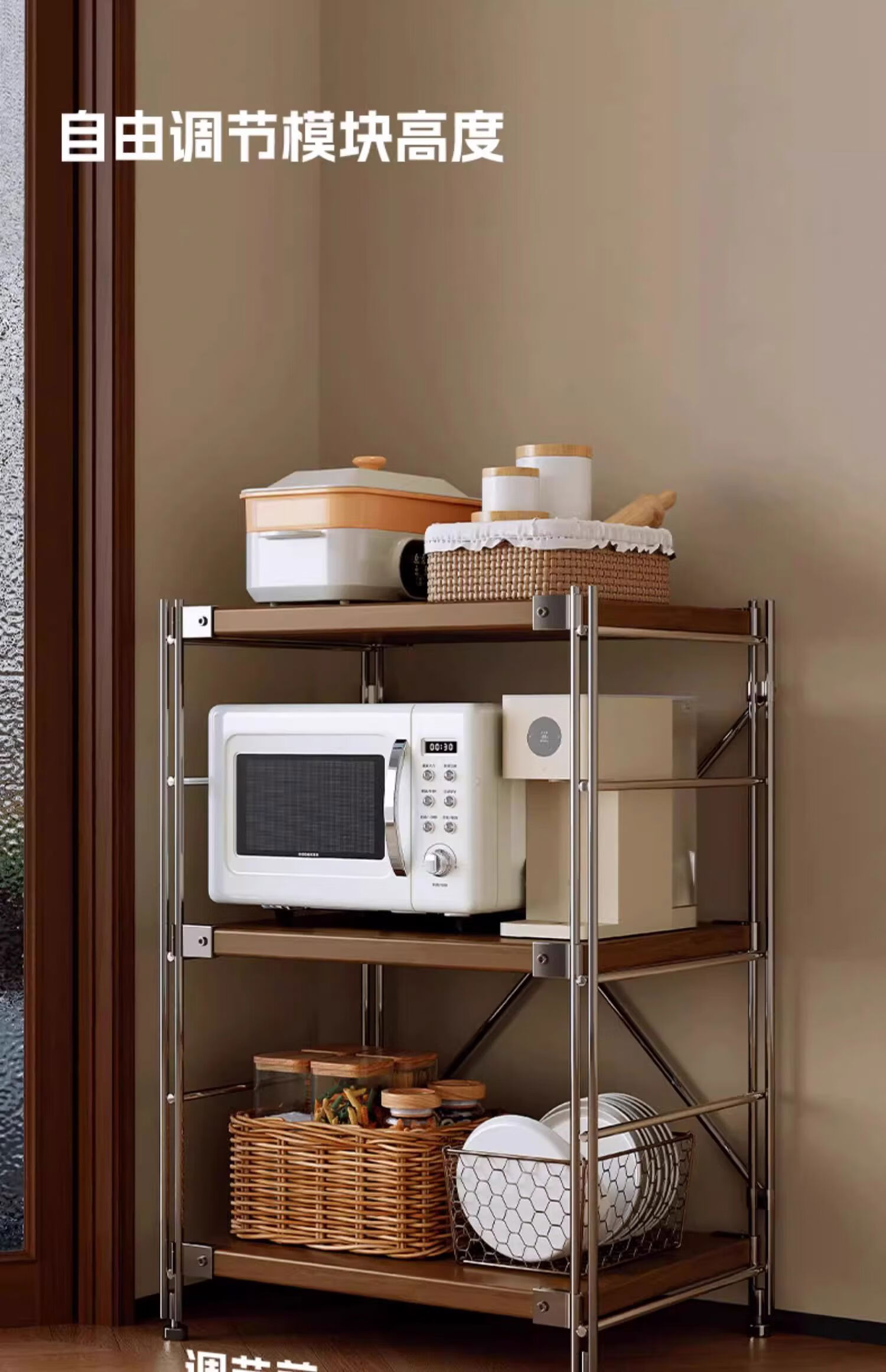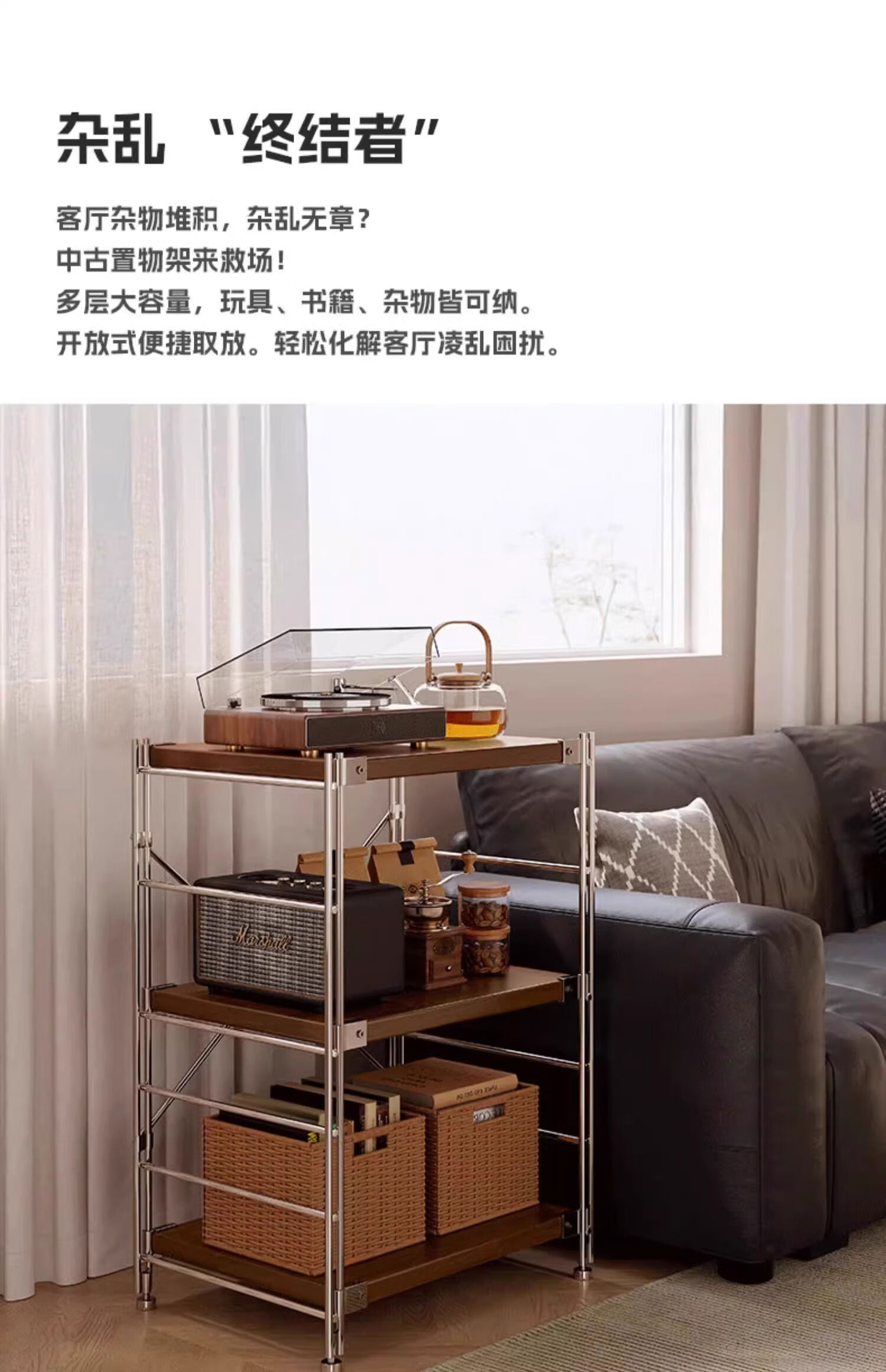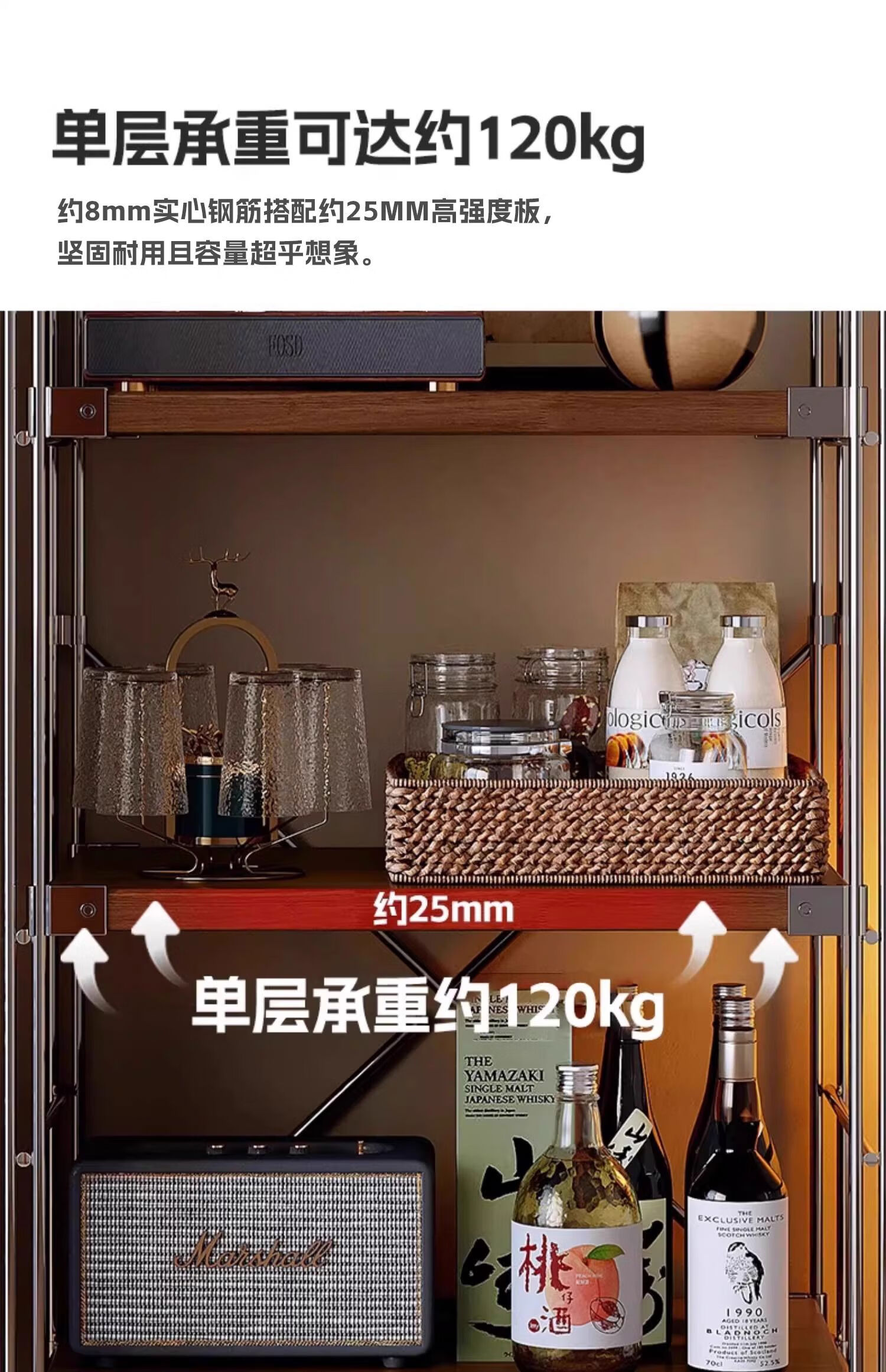 Fantasy Japanese-style storage rack floor-standing multi-layer medieval storage rack kitchen balcony storage room small shelf living room display 6-layer walnut color 90x31x190