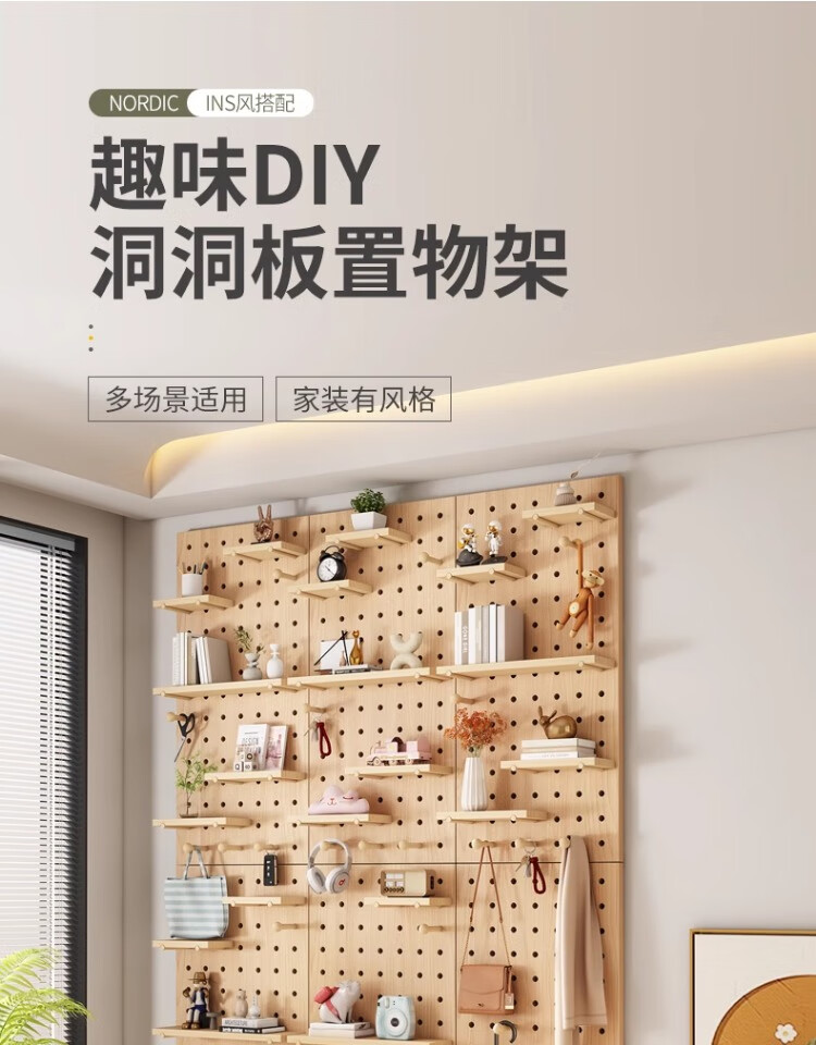 Yusenyi customized solid wood hole board hanging board wall decoration partition shelf desk background wall display rack collection cream white cloud + small cloud package 100x220cm