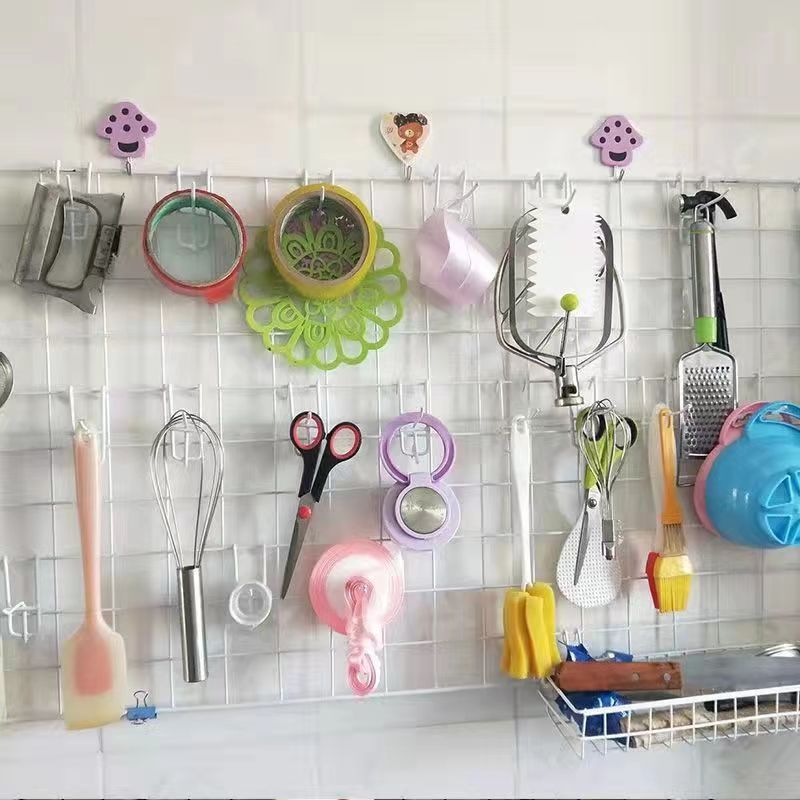 Mesh hook mesh hook wall hanging grid shelf white wire mesh jewelry rack snack rack supermarket shelf hook display rack background photo photo wall shelf exhibition hanging net Kangpeng mesh hook 10CM 10 pcs
