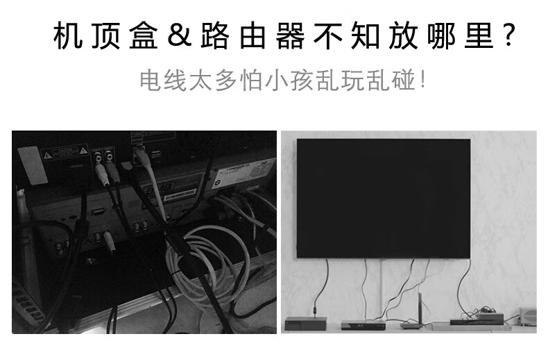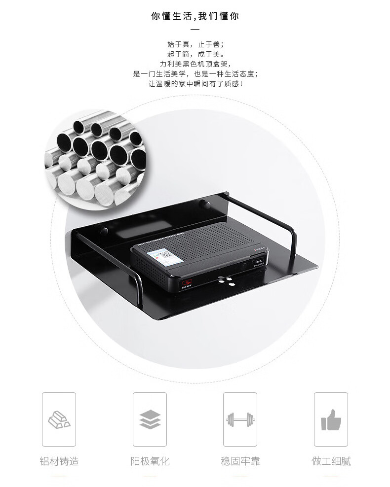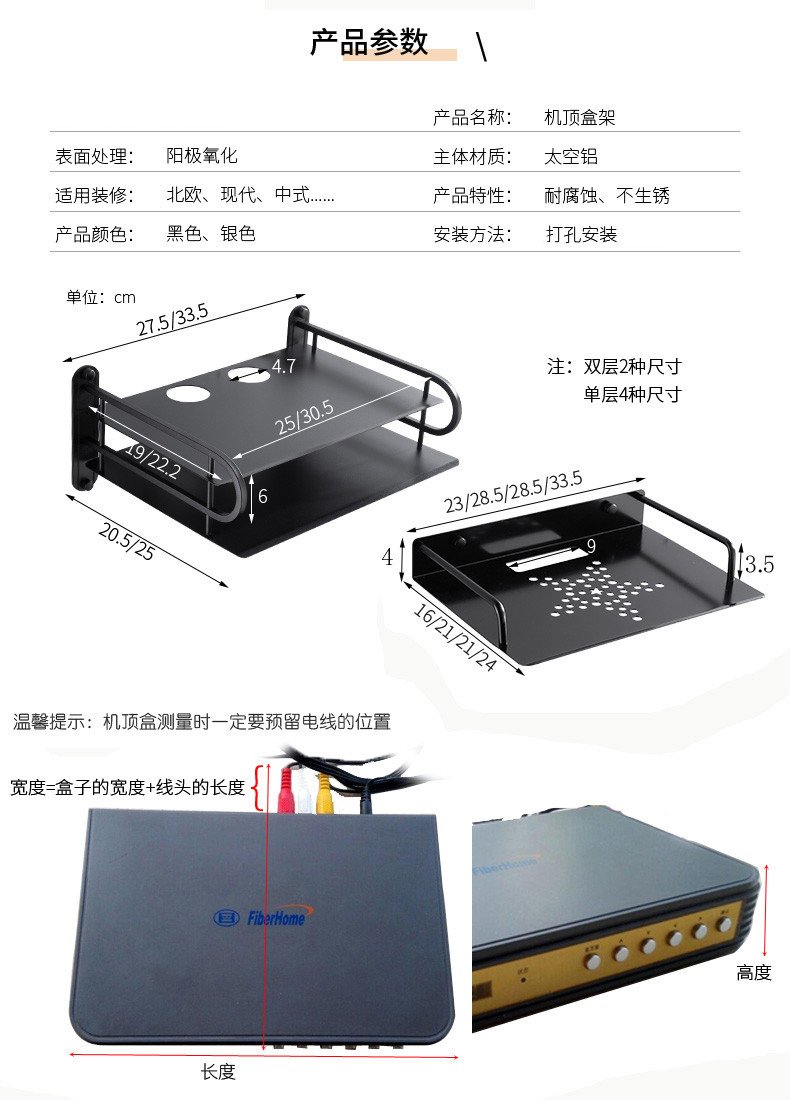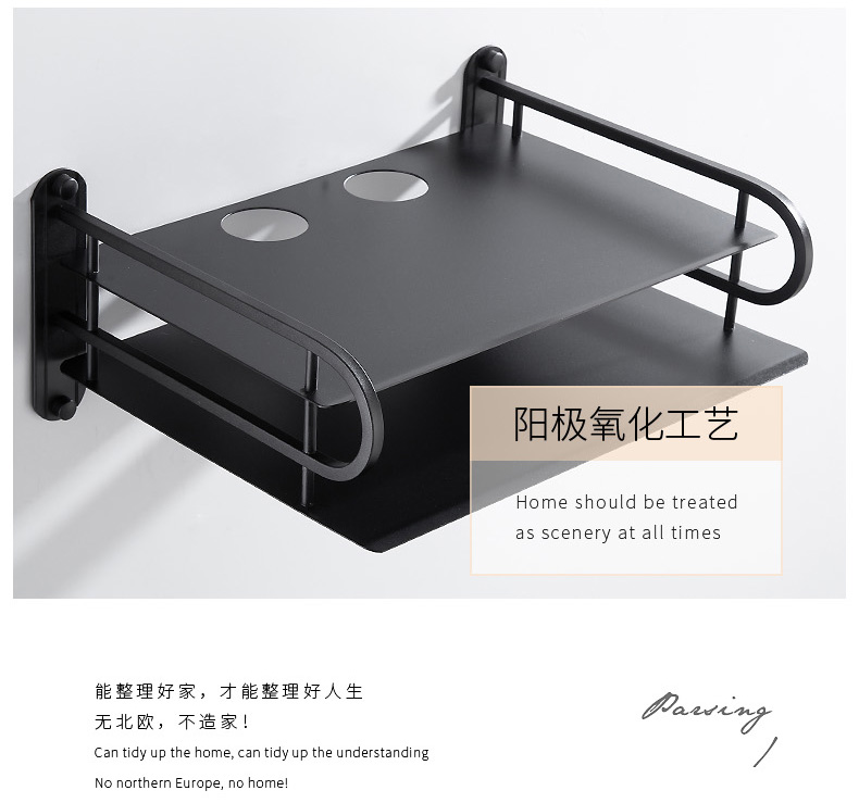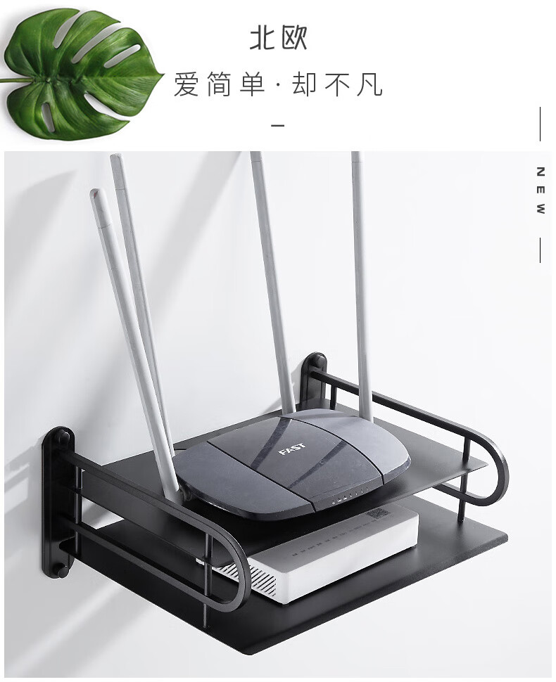 Wall shelf for set-top boxes and routers. Black TV set-top box shelf. Wall-mounted rack. Tray storage rack. Router bracket storage box. No punching. Punch-20*15cm mini black style.