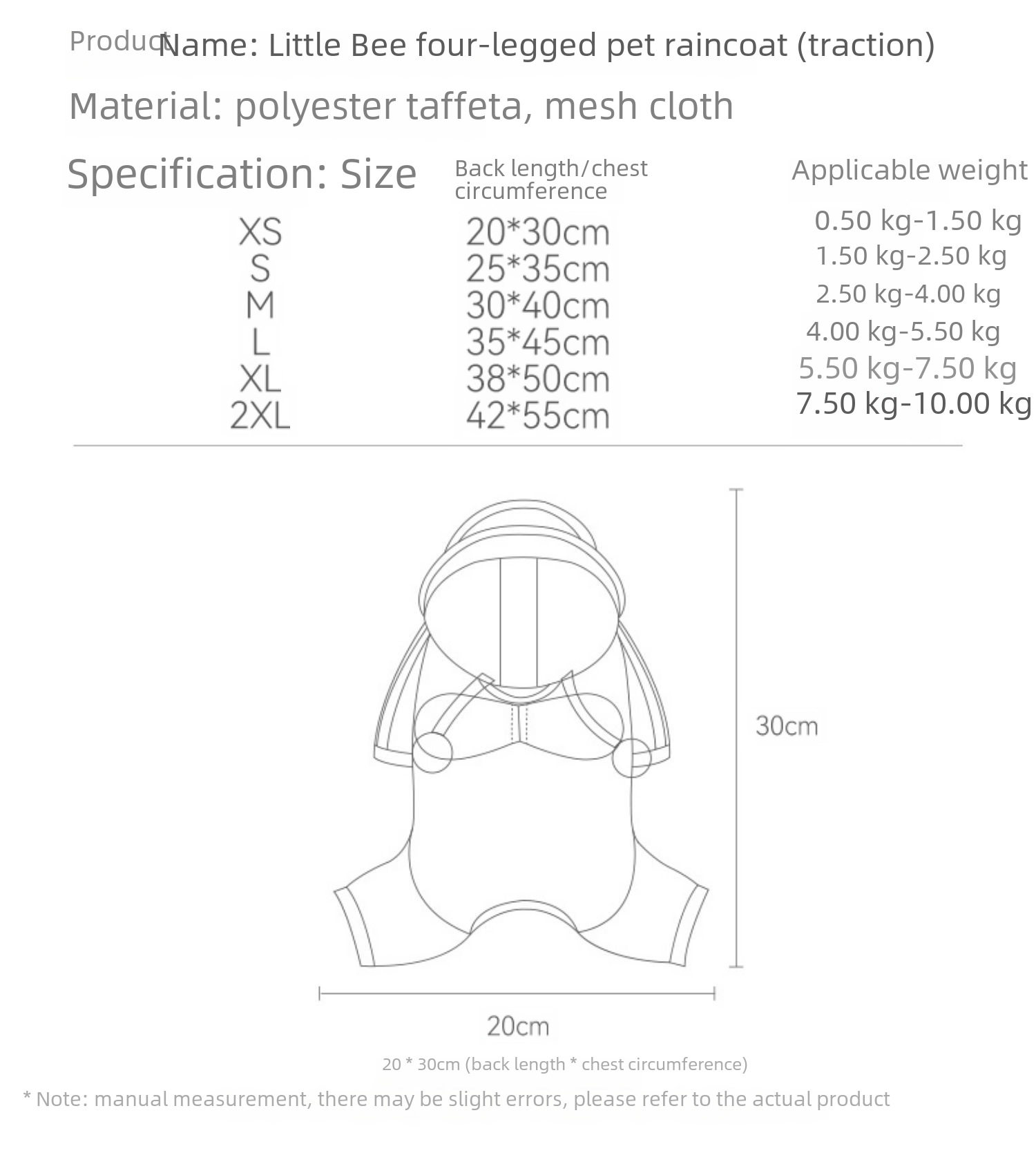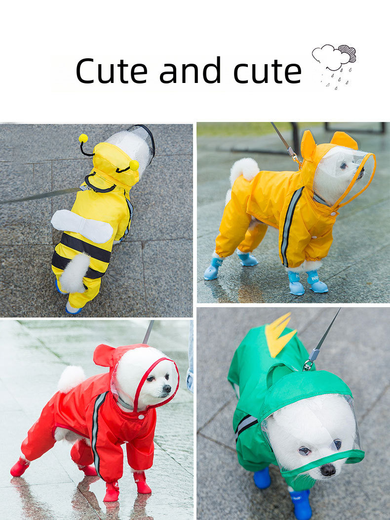 Puppy raincoat four-legged waterproof all-inclusive Teddy poncho pet rainy day clothes Small Medium dog Bixiong Bomei