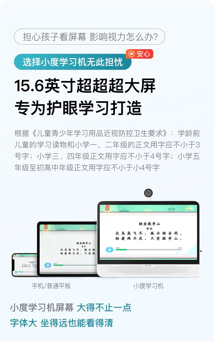 Xiaodu Large-Screen Eye Protection Learning Machine P20Plus 15.6inch Large-Screen Intelligent Kidsren's Tutoring Online Learning Machine