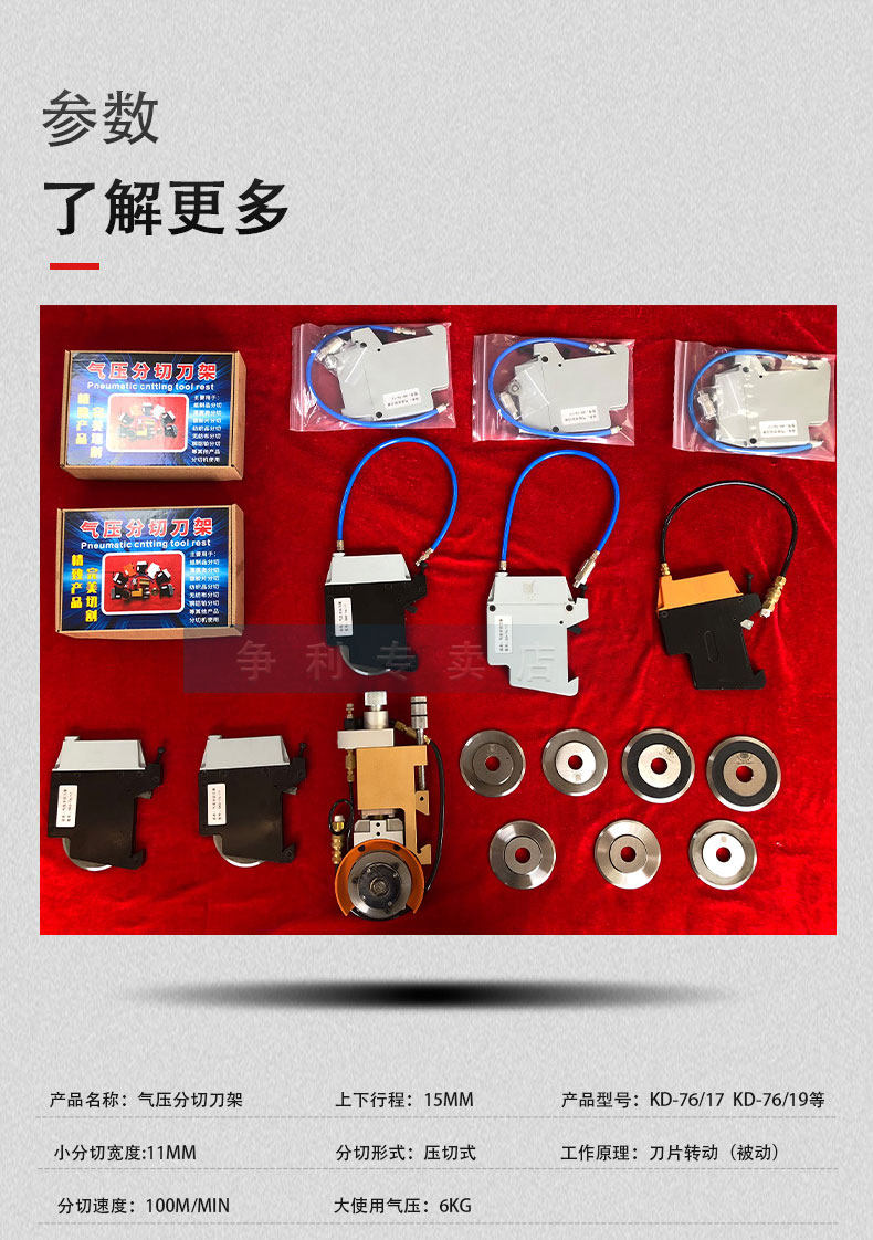 Specification model Pneumatic knife holder promotional model (including blades) *others*others*not coated*others*others,Zinc alloy pneumatic knife holder (including blade)*others*others*not coated*others*others,Aluminum alloy pneumatic knife holder (including blade)*others*others*uncoated*others*others,Steel plate pneumatic knife holder (including blade)*others*others*not coated*others*others,76*17*2/5 (tool steel)*others*others*not coated*others*others,76*19*2/5 (tool steel)*others*others*not coated*others*others,76*17*2/5(SKD-11)*others*others*uncoated*others*others,76*19*2/5(SKD-11)*others*others*uncoated*others*others,76*17*2/5(high speed steel)*others*others*uncoated*others*others,76*19*2/5(high speed steel)*others*others*uncoated*others*others,76*22*3/6 (9CrSi)*others*others*uncoated*others*others,76*22*3/6(SKD-11)*others*others*uncoated*others*others,Dovetail trough 1m *others*others*not coated*others*others,90*60*1.25(SKD-11)*others*others*uncoated*others*others,Bearing axis*others*others*not coated*others*others,Tracheal joints*others*others*uncoated*others*others,Air pressure knife holder (yellow gray) *others*others*not coated*others*others,Air pressure knife holder (black color steel shell) *others*others*not coated*others*others,Air pressure knife holder (black color) *others*others*not coated*others*others,Air pressure knife holder (yellow color) *others*others*not coated*others*others,Steel plate ultra-thin 9.5MM air pressure knife holder*others*others*uncoated*others*others,Steel plate strong 18MM air pressure knife holder *others*others*others*not coated*others*others,Round blade 76x22x3/6*others*others*uncoated*others*others,SKD-11 material round blade *others*others*uncoated*others*others,Diameter 10mm small shaft + bearing *others*others*uncoated*others*others,1 point female connector*others*others*non-coated*others*others
