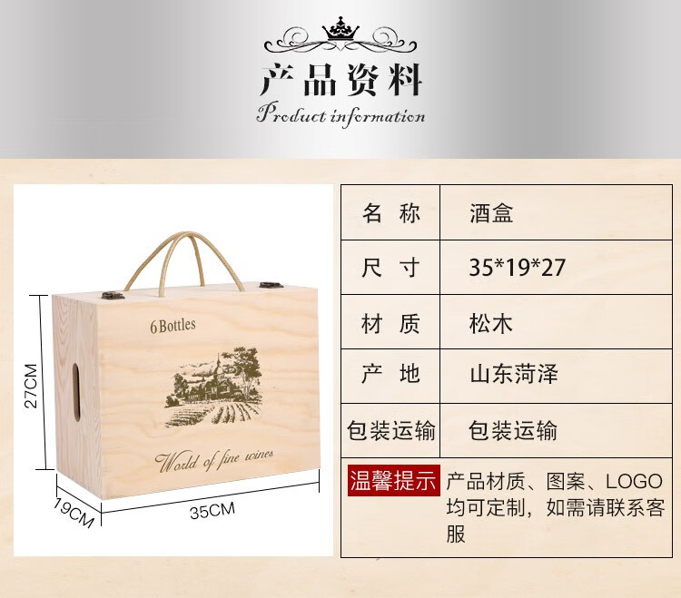 Red wine box six-piece red wine wooden box red wine box six-piece packaging gift box wine box wine red wine wooden box customization six-pack corners
