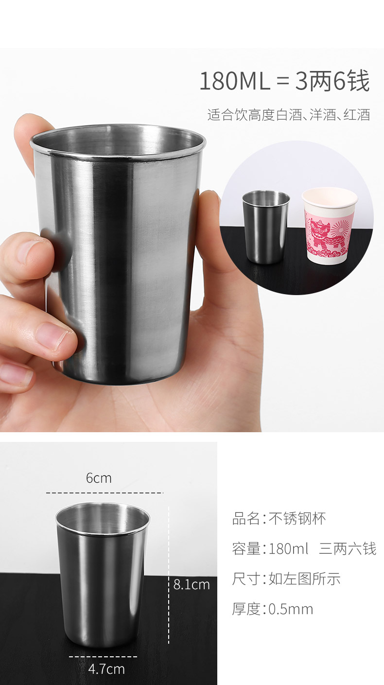 Drinking glass stainless steel white wine glass water cup household small wine cup wine glass wine set small drinking cup industrial cup A three-two-six-dollar cup/180ml