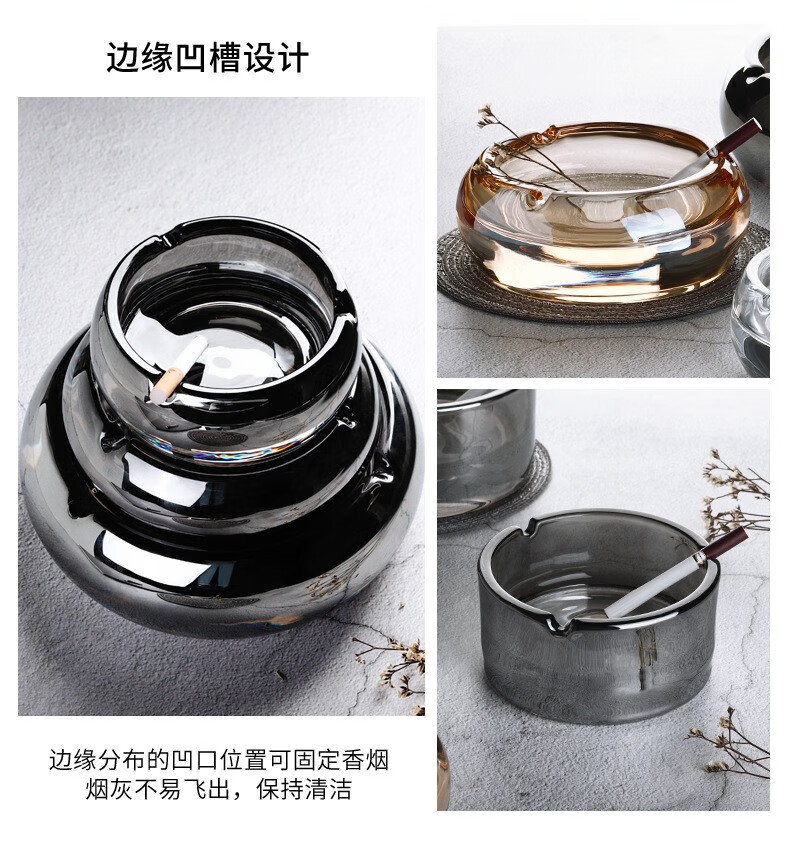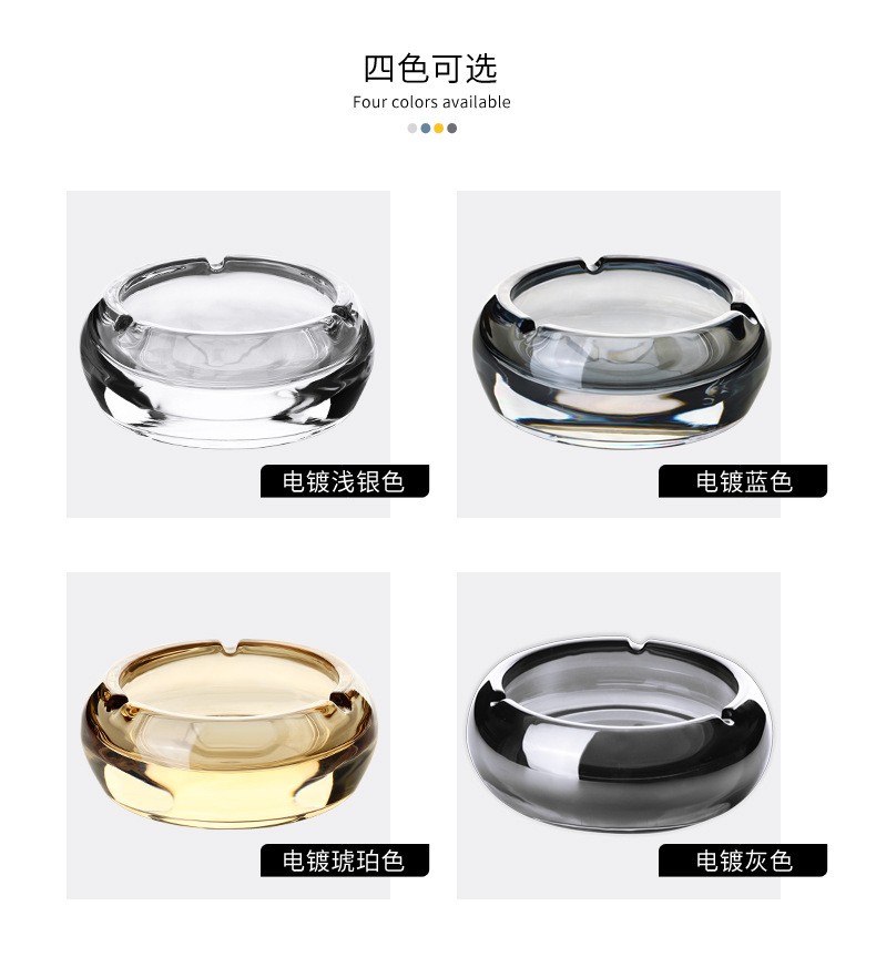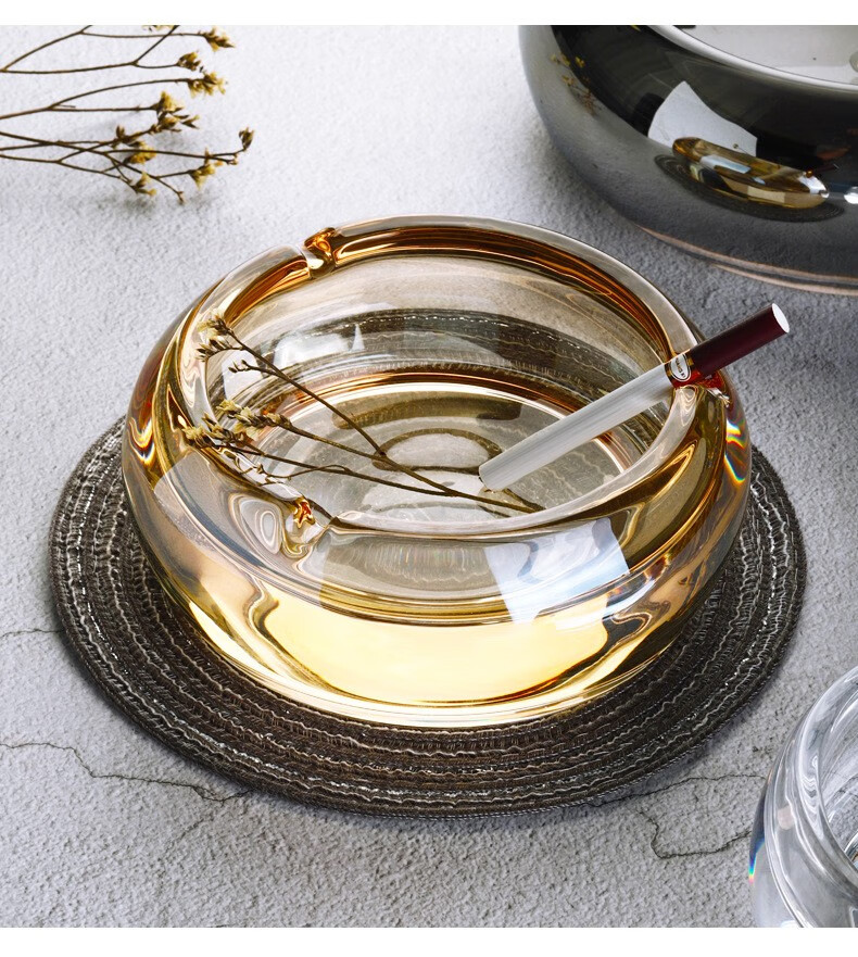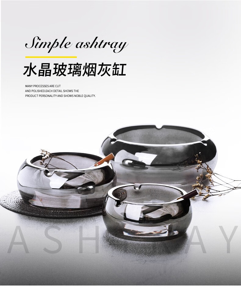 Molson European crystal ashtray glass household cigarette dish trendy living room men's office ashtray round ashtray round black 20cm