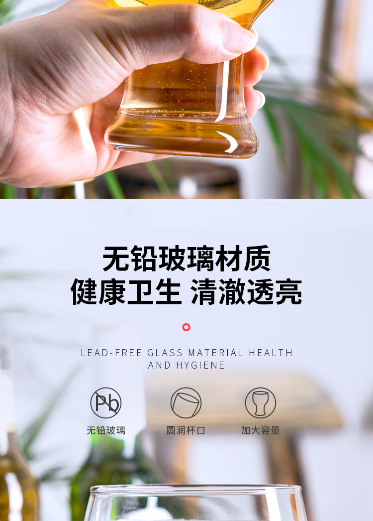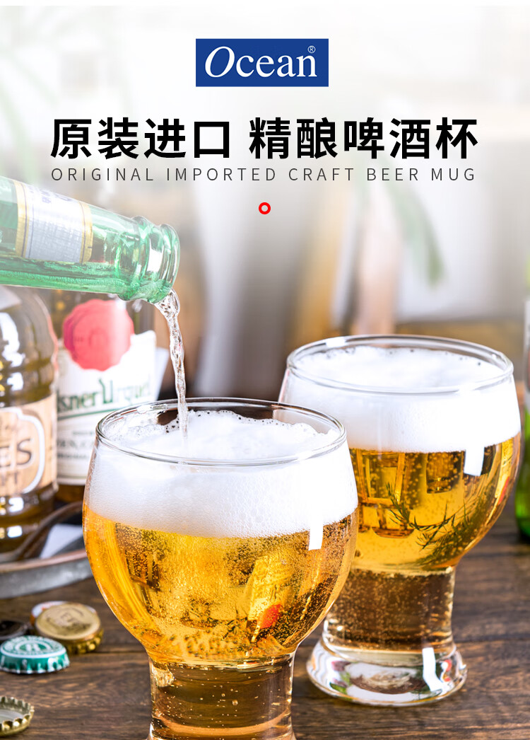 Ocean original imported beer mug, glass water cup, creative wine glass, large-capacity household glass short cup, 475ml, six-pack