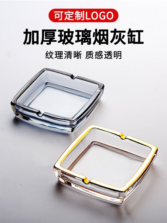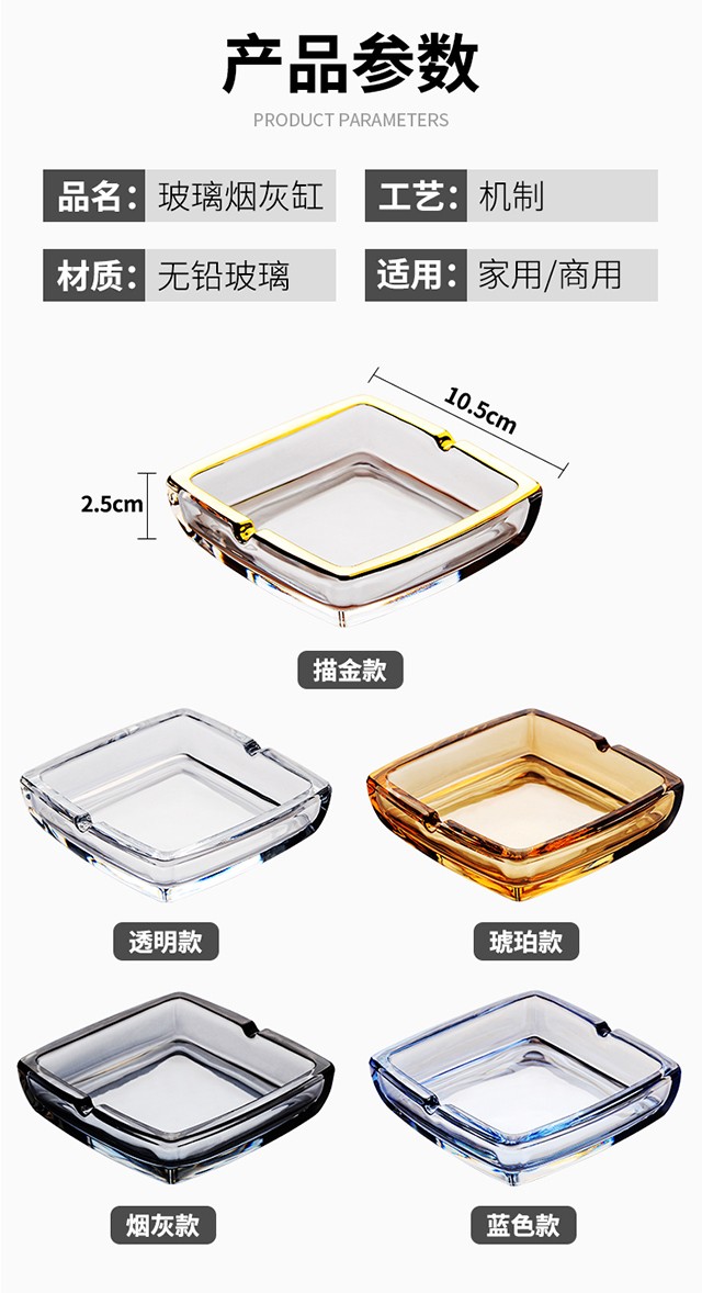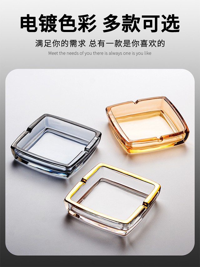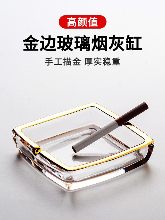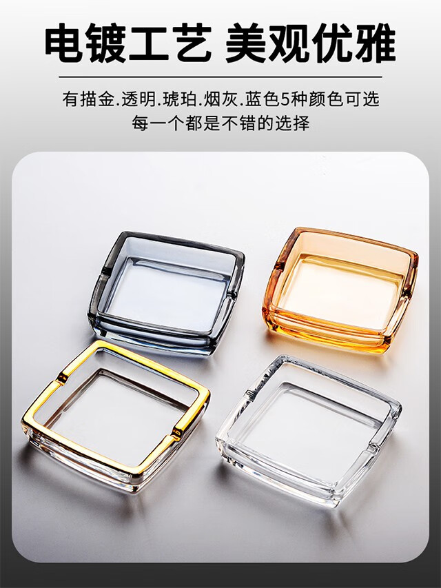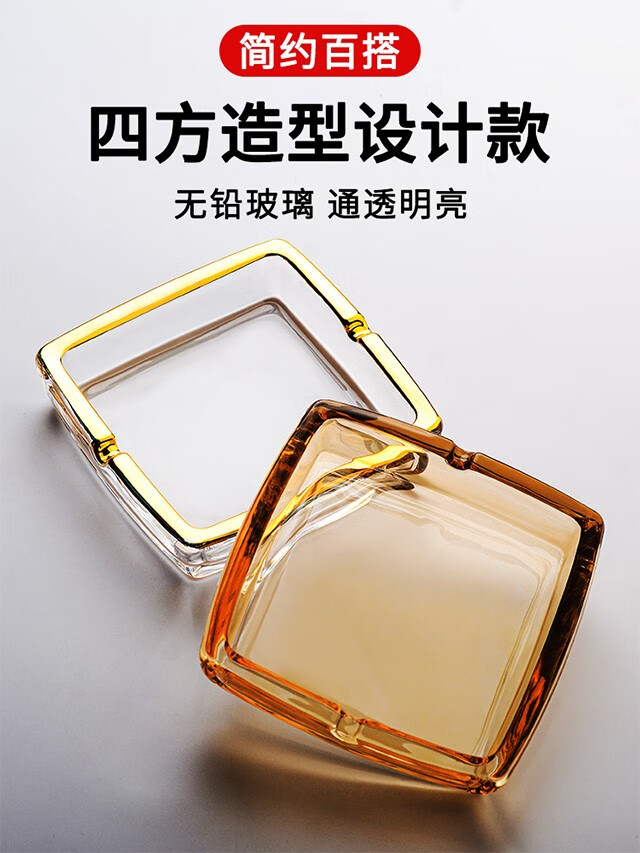 Manwei household windproof ashtray office business ashtray creative personality living room small simple glass ashtray bedroom anti-fly ash amber + transparent