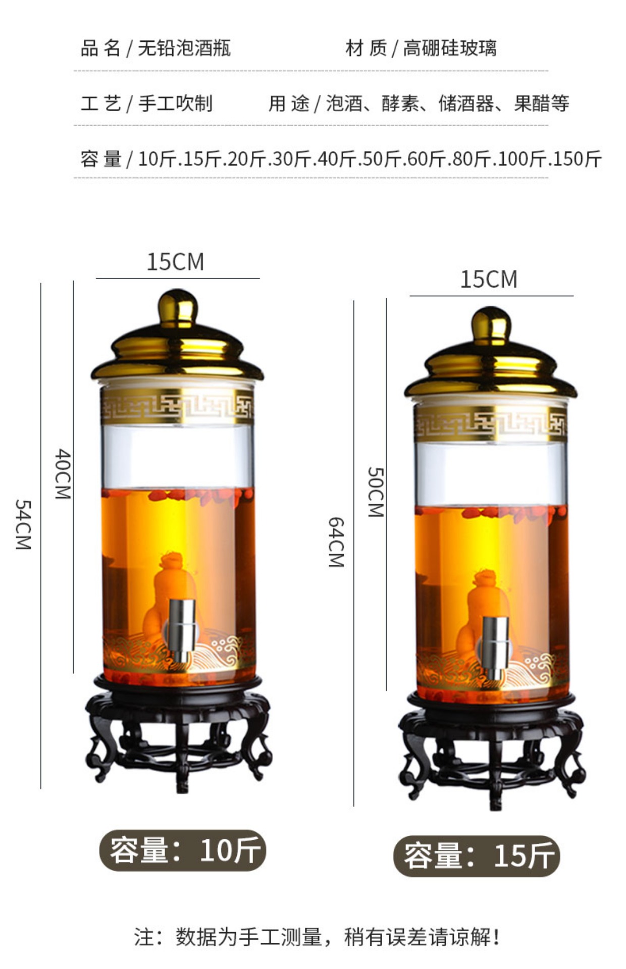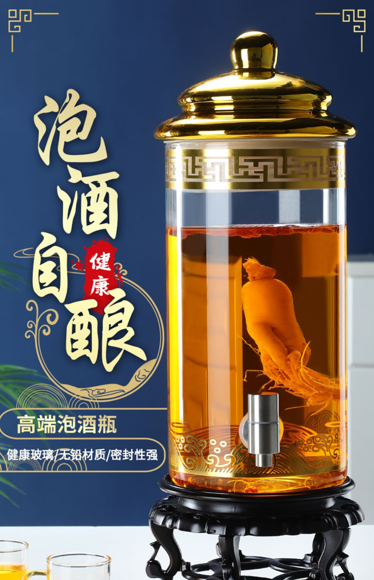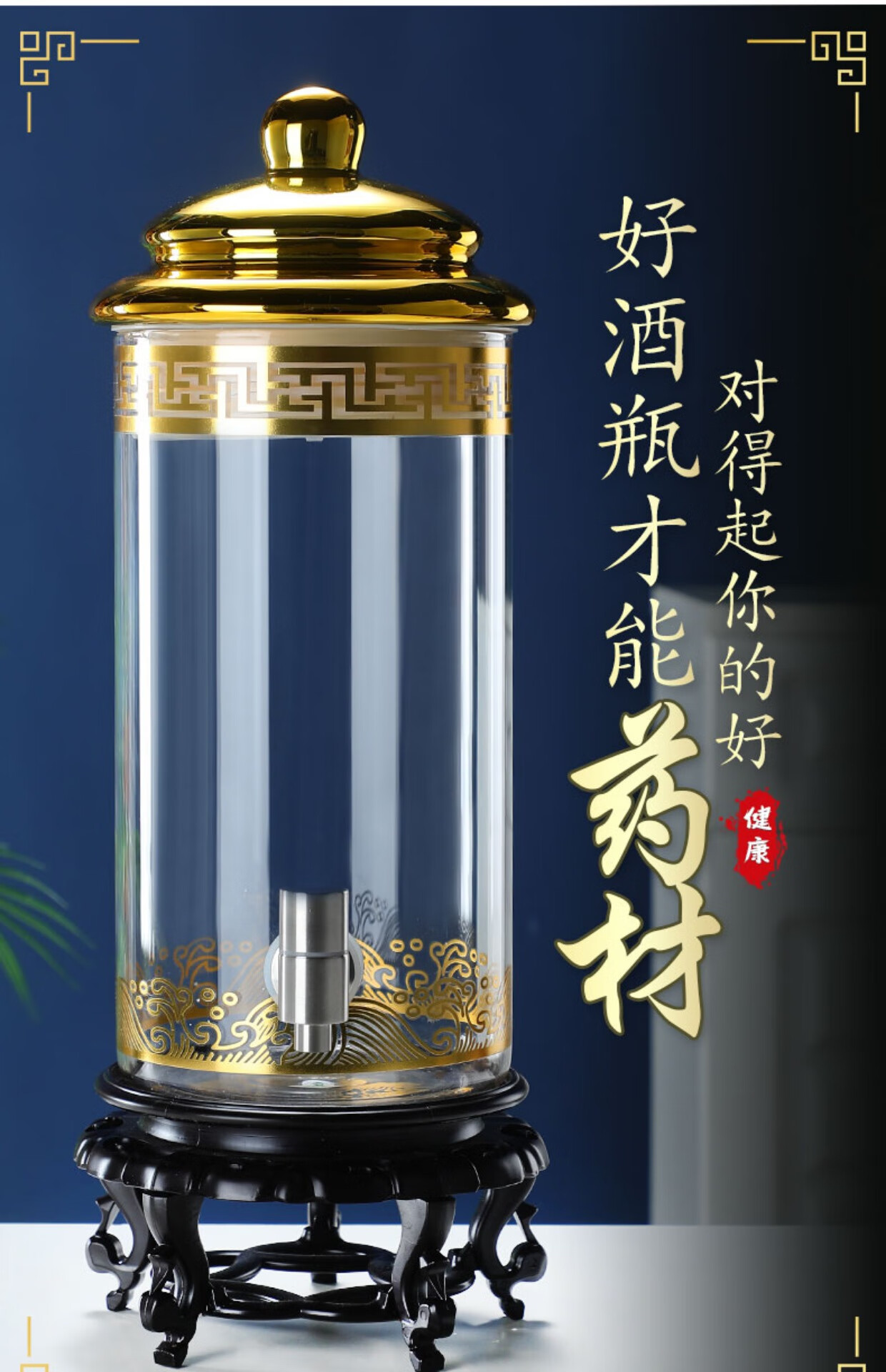 Enyi large diameter wine bottle with faucet thickened sealed glass wine jar medicinal wine jar 100Jin Jin equals 0.5kg + base