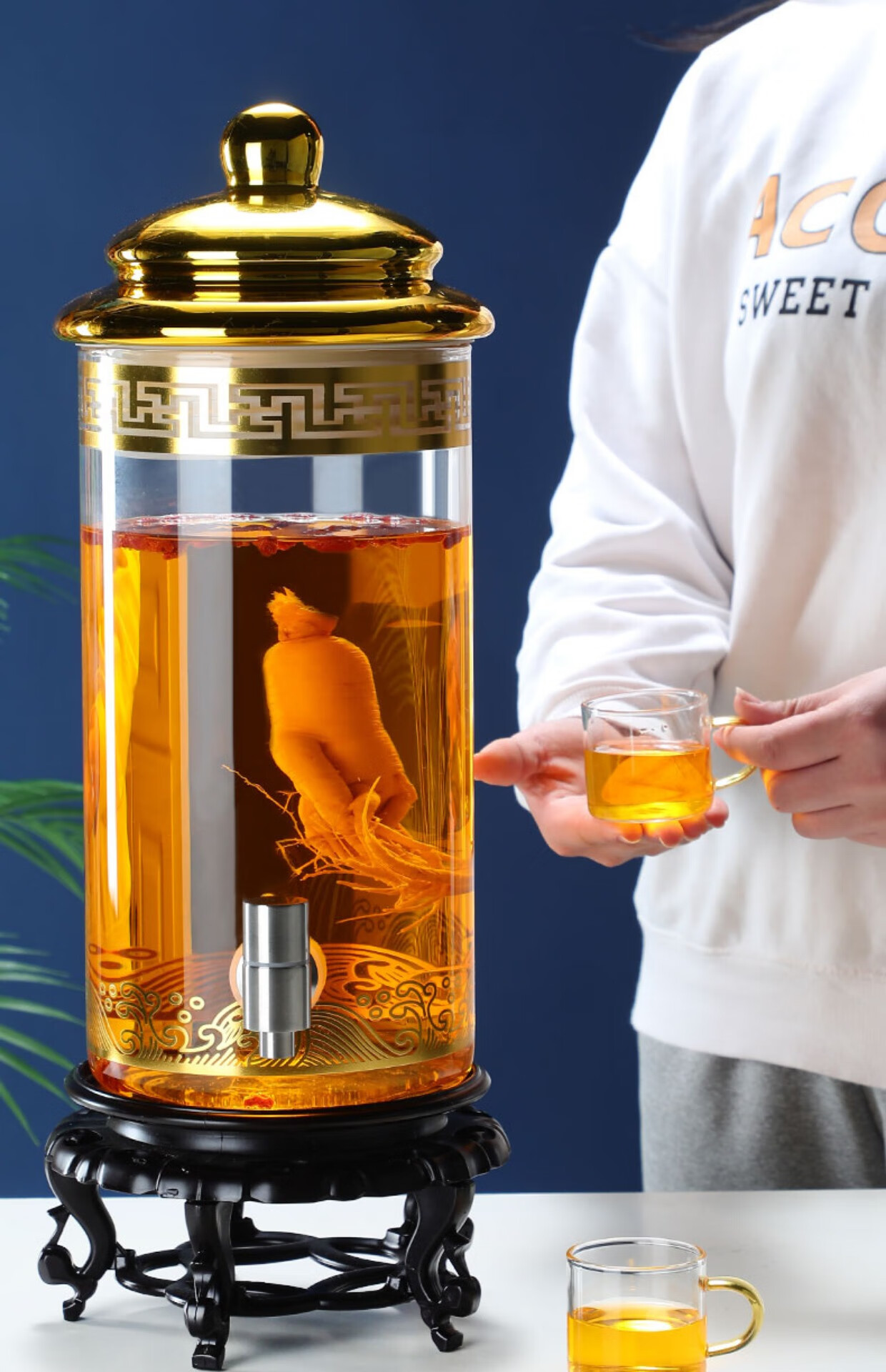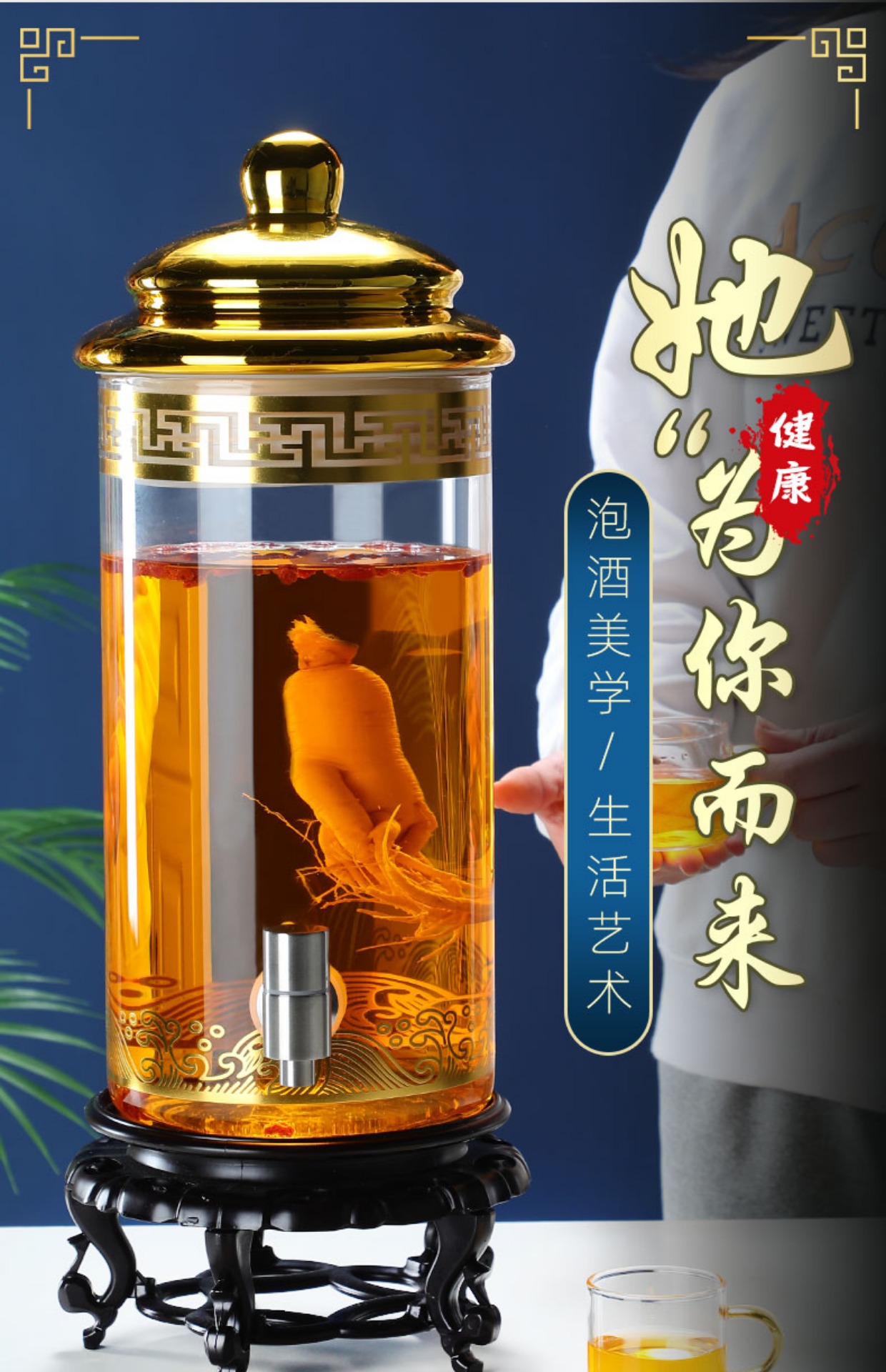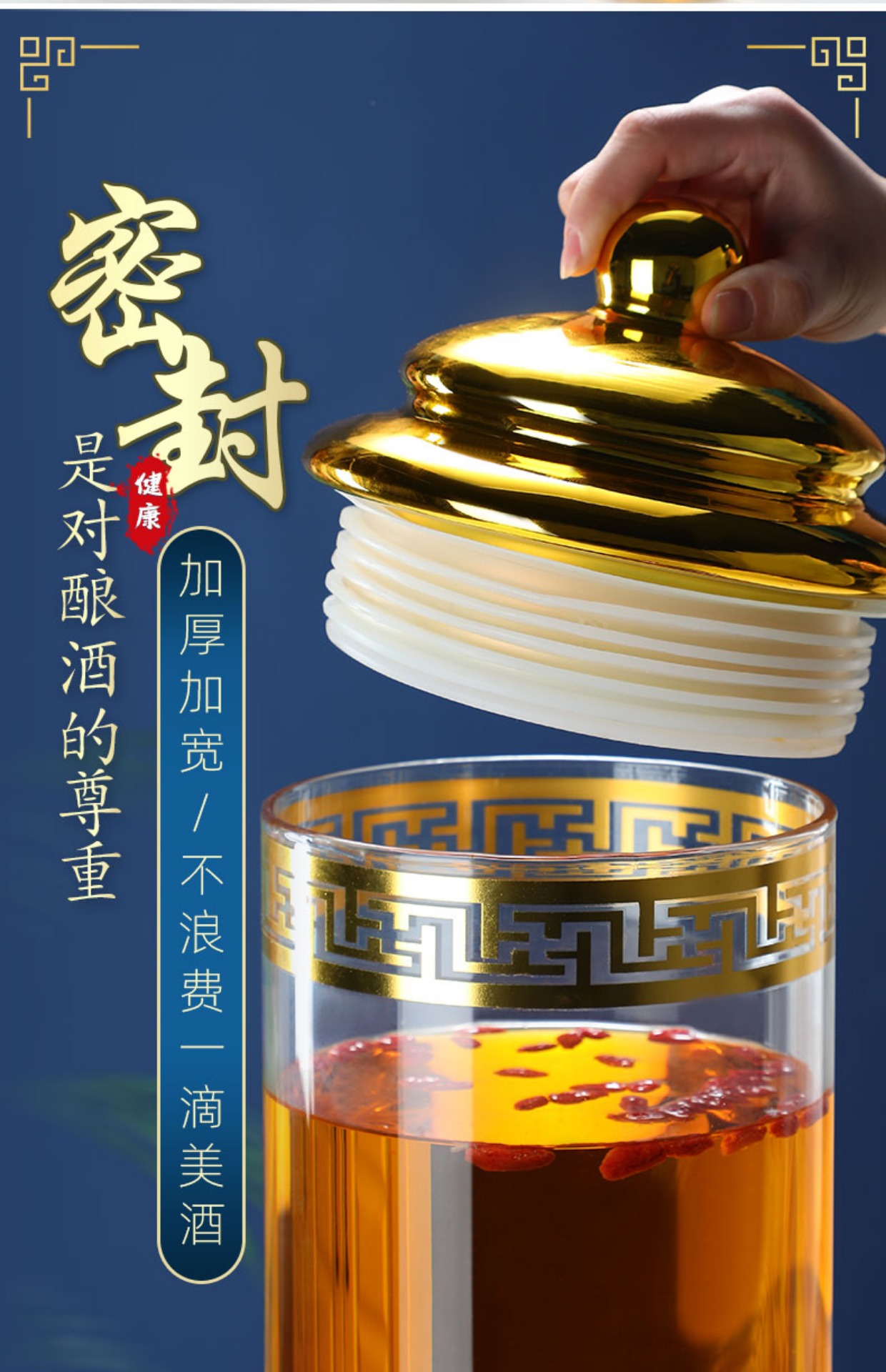 Enyi large diameter wine bottle with faucet thickened sealed glass wine jar medicinal wine jar 100Jin Jin equals 0.5kg + base