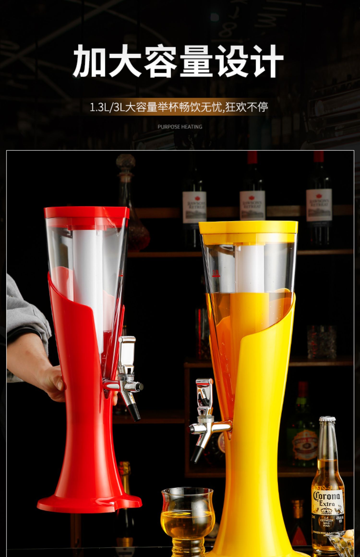 Wine cannon bar KTV beer cannon luminous commercial ice wine bubble barrel beer barrel wine dispenser with icicles 3L D198-1.5 liter red + colorful lights + icicles
