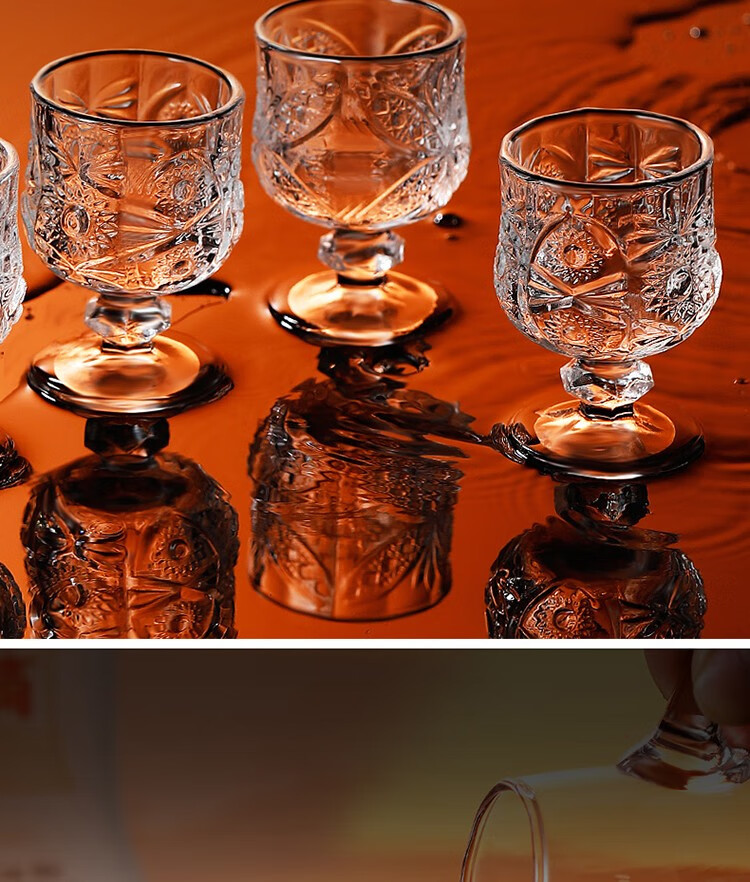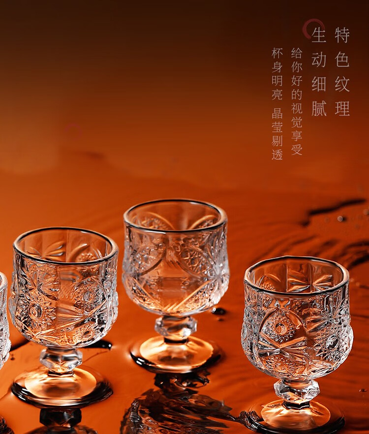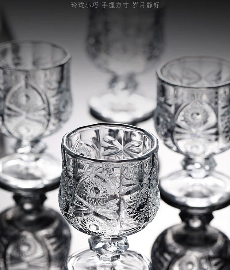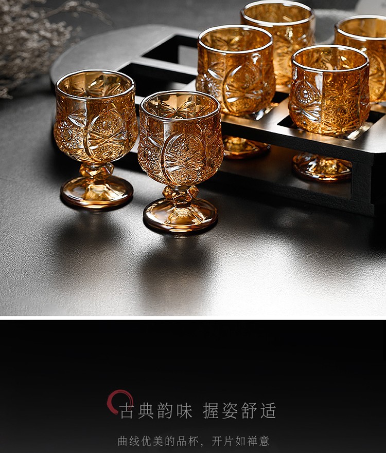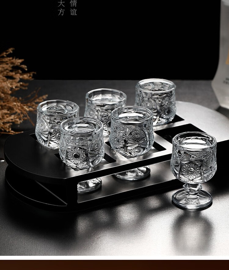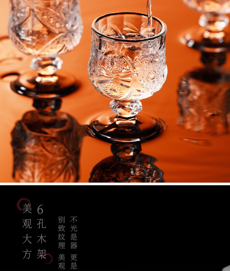 Heisou white wine glass set spirit glass home glass small foreign wine glass wine set 50ml gold 6 pieces + 6 hole wooden frame