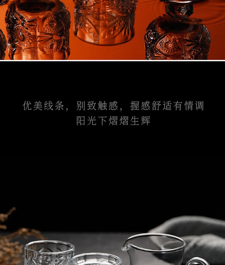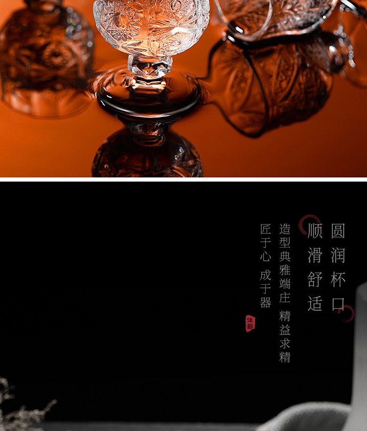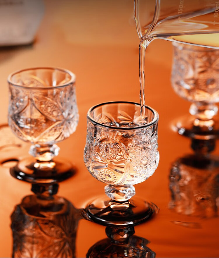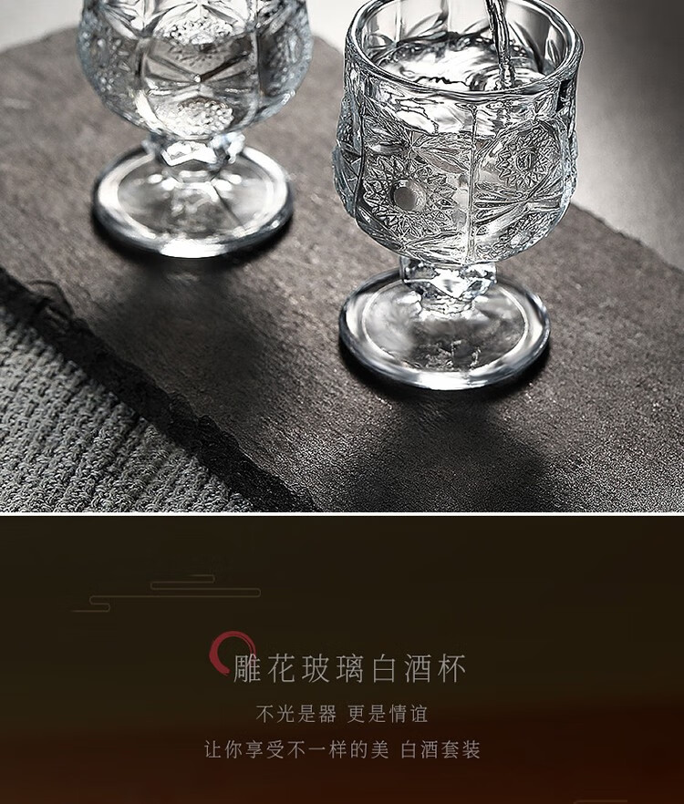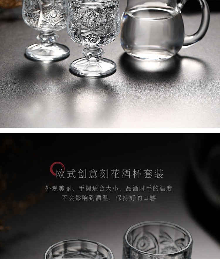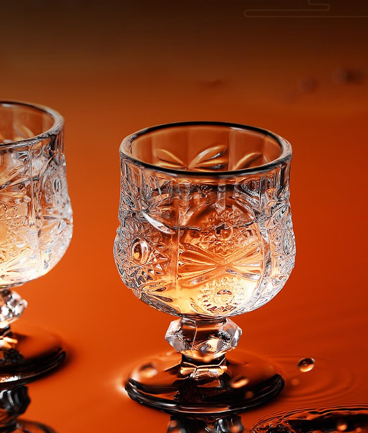 Heisou white wine glass set spirit glass home glass small foreign wine glass wine set 50ml gold 6 pieces + 6 hole wooden frame