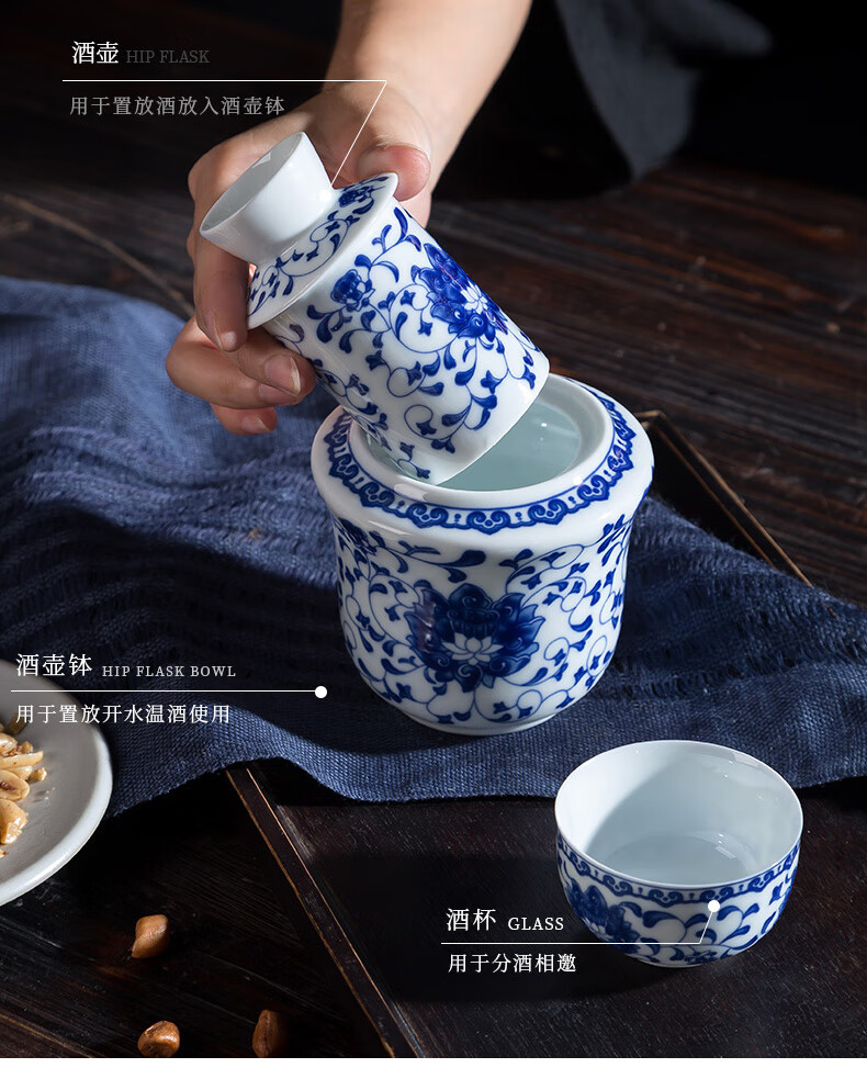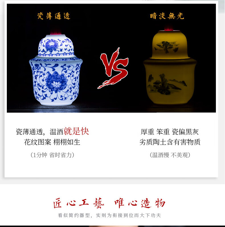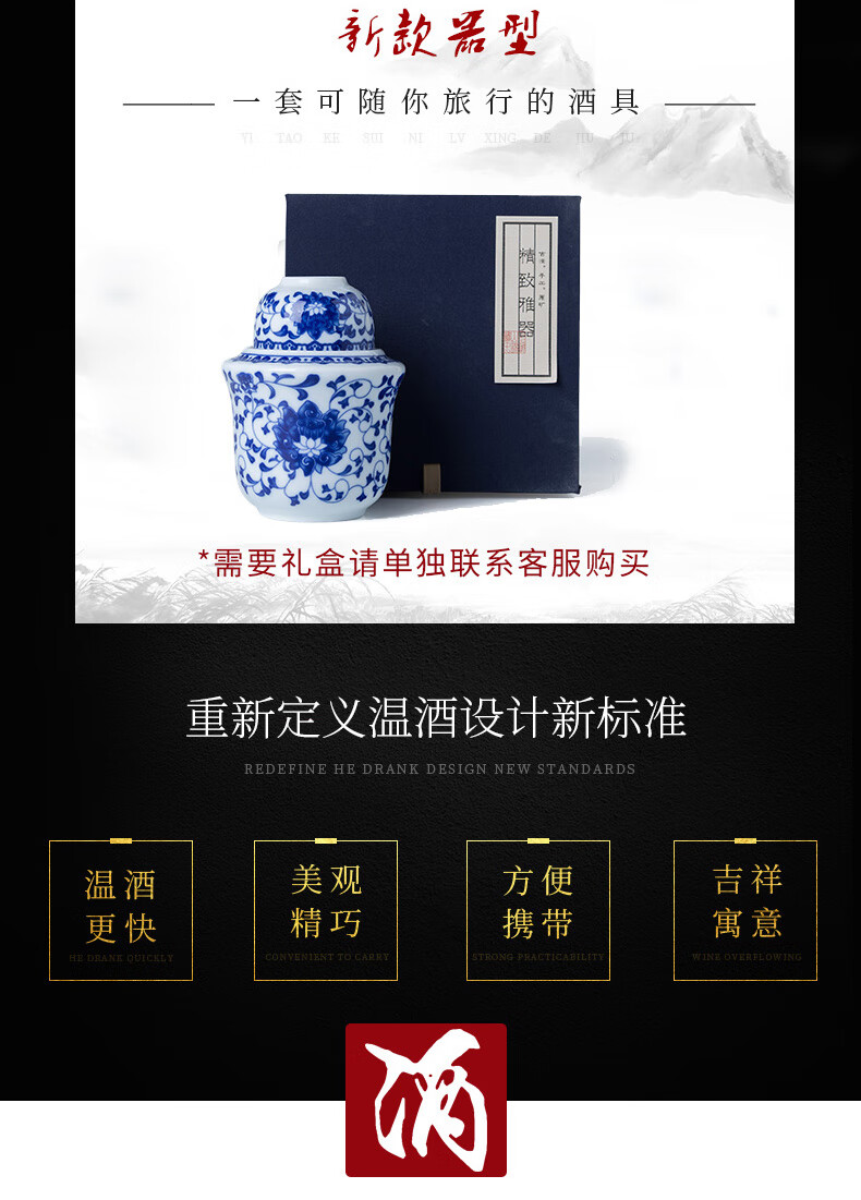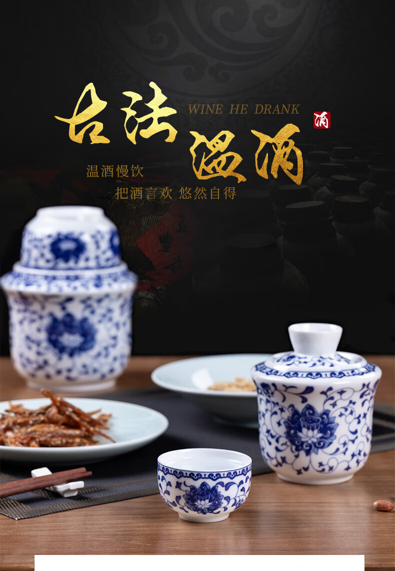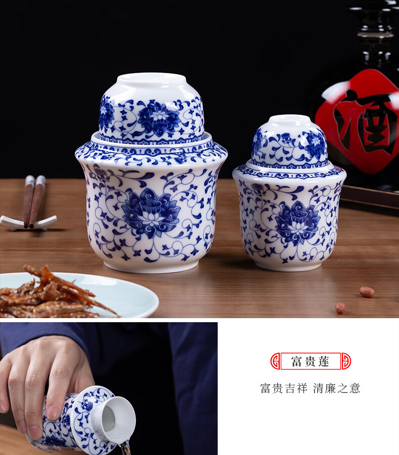 Yufan Jingdezhen ceramic wine warmer hot pot wine cup one or two Chinese Kung Fu tea set single cup rice wine white wine cup Fuguilian 50ml wine cup
