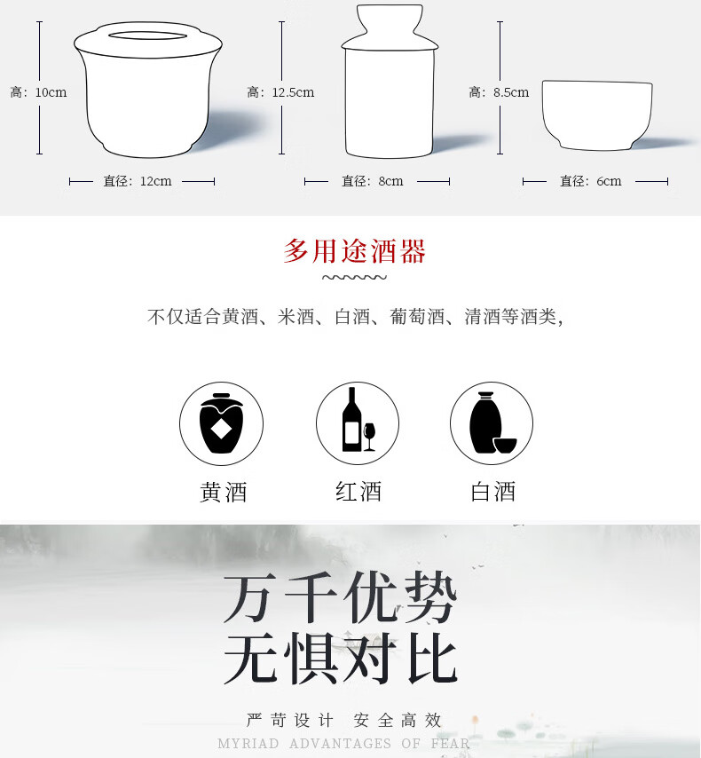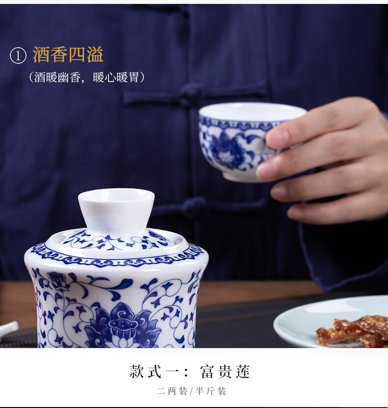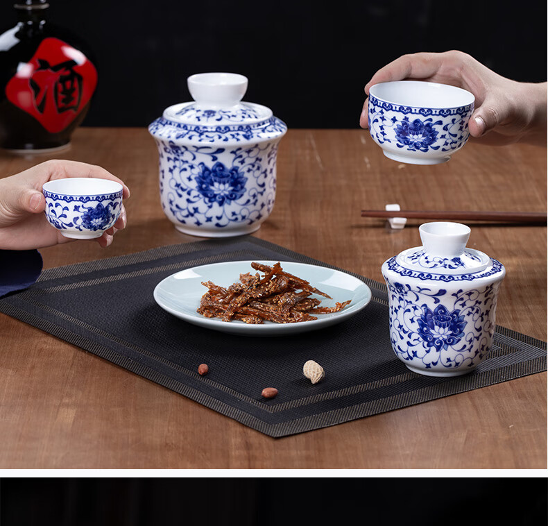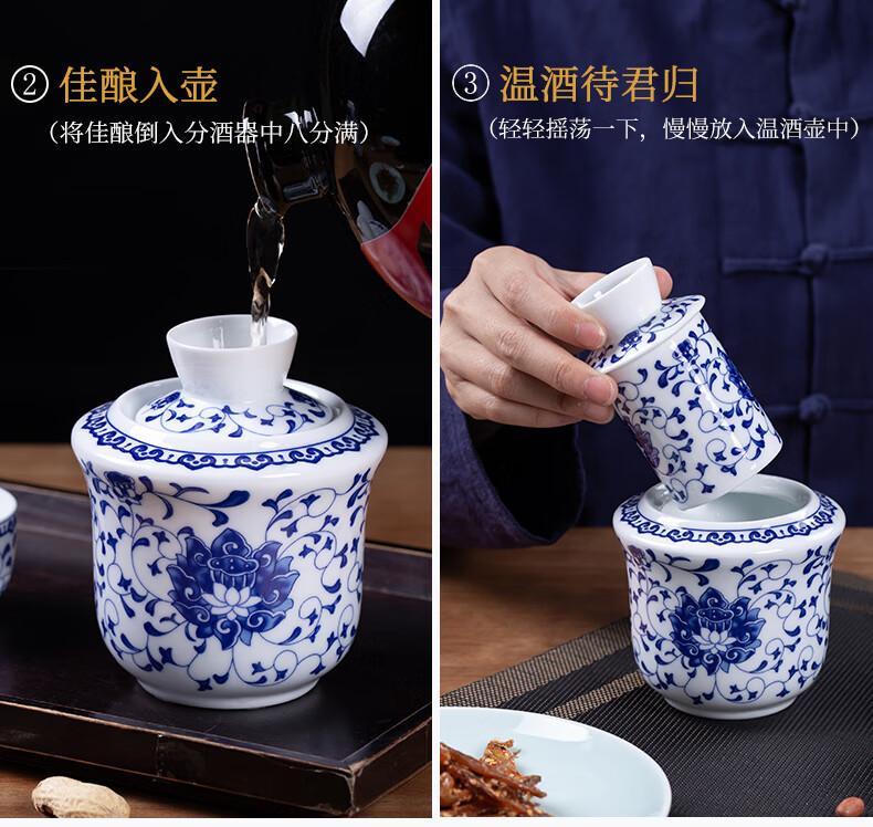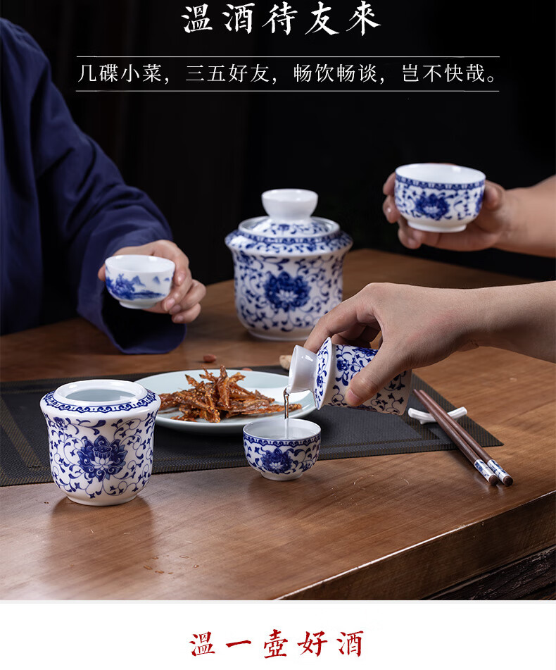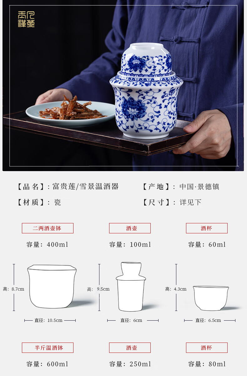 Yufan Jingdezhen ceramic wine warmer hot pot wine cup one or two Chinese Kung Fu tea set single cup rice wine white wine cup Fuguilian 50ml wine cup