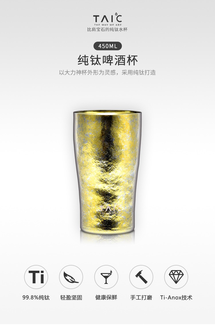 TAIC Titanium pure titanium beer cup double-layer vacuum water cup titanium cup juice cup milk cup coffee cup Hercules cup ultra-light high-end gift cup Dream Purple