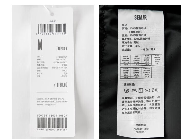 Semir Semir Down Jacket Women's 90% Goose Down Mid-Length Outdoor Protective Jacket 2024 Winter New Style 109724113031