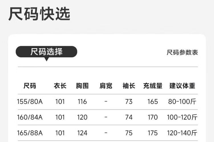 China (cm) 160-165/84-86 165-170 / 88-90 167-172 / 92-96 168-173 / 98-102 170-176 / 106-110