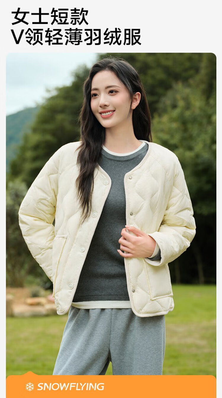 Snowflying (SNOWFLYING) short lightweight down jacket 2025 new fashion versatile simple jacket khaki L (165)