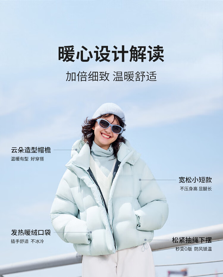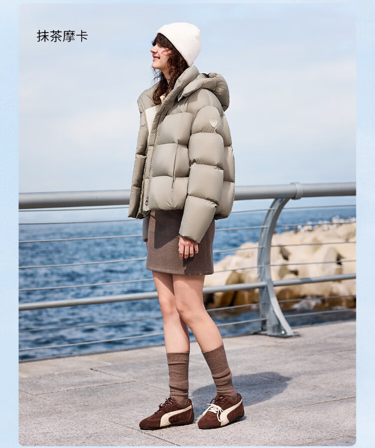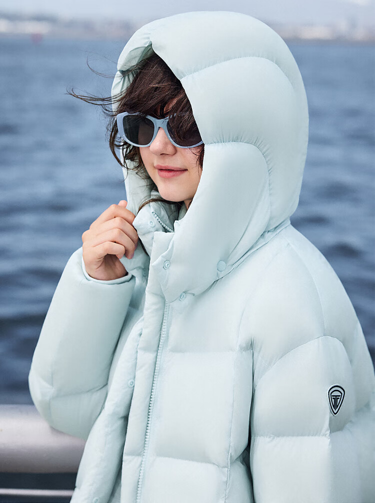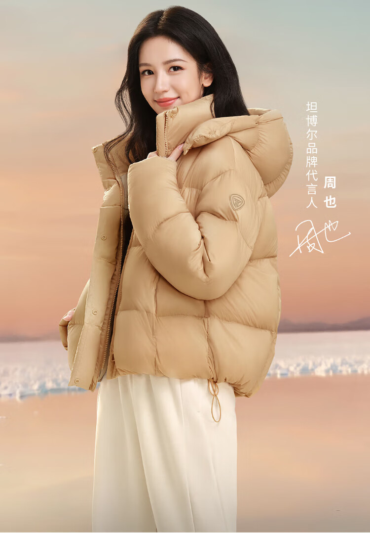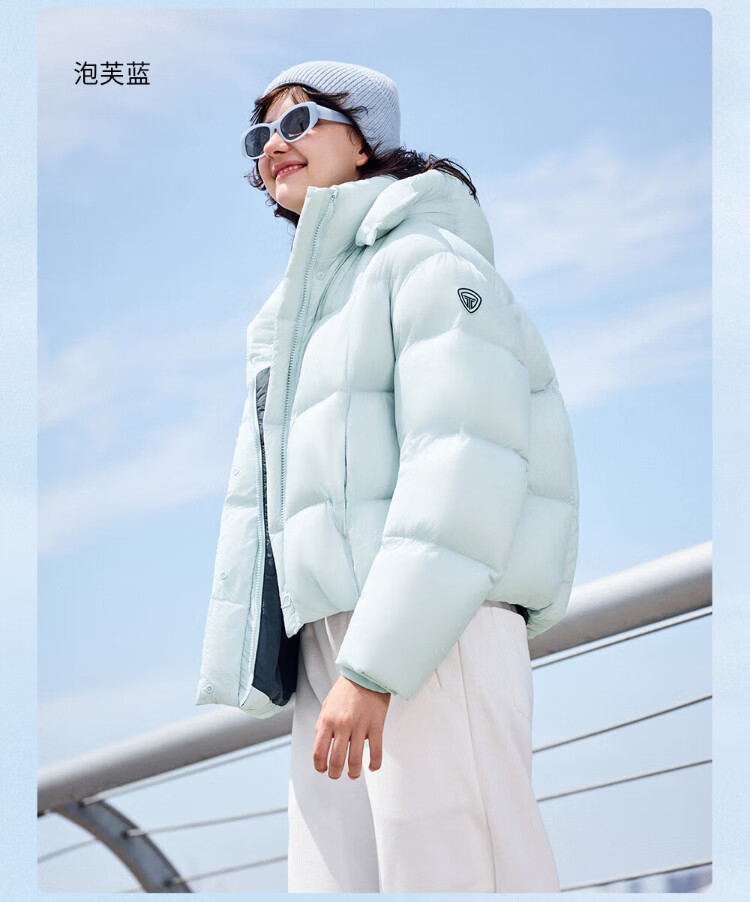 Tambor puff down jacket women's short removable hood autumn and winter warm jacket 25 years new 5530520D puff blue 165